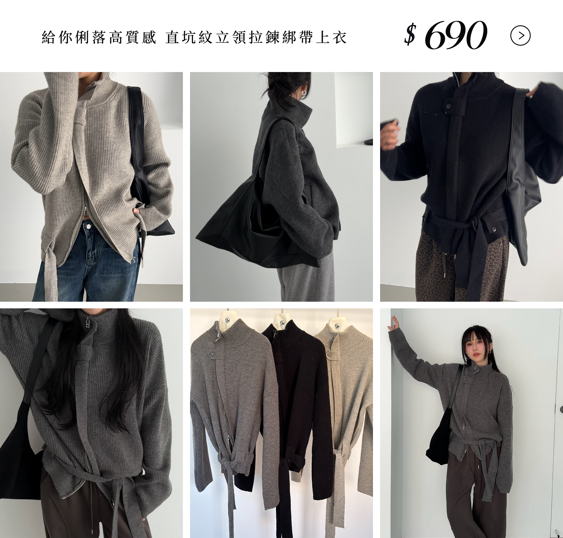 氣質拉滿 綁繩短版斜領毛衣 3colors