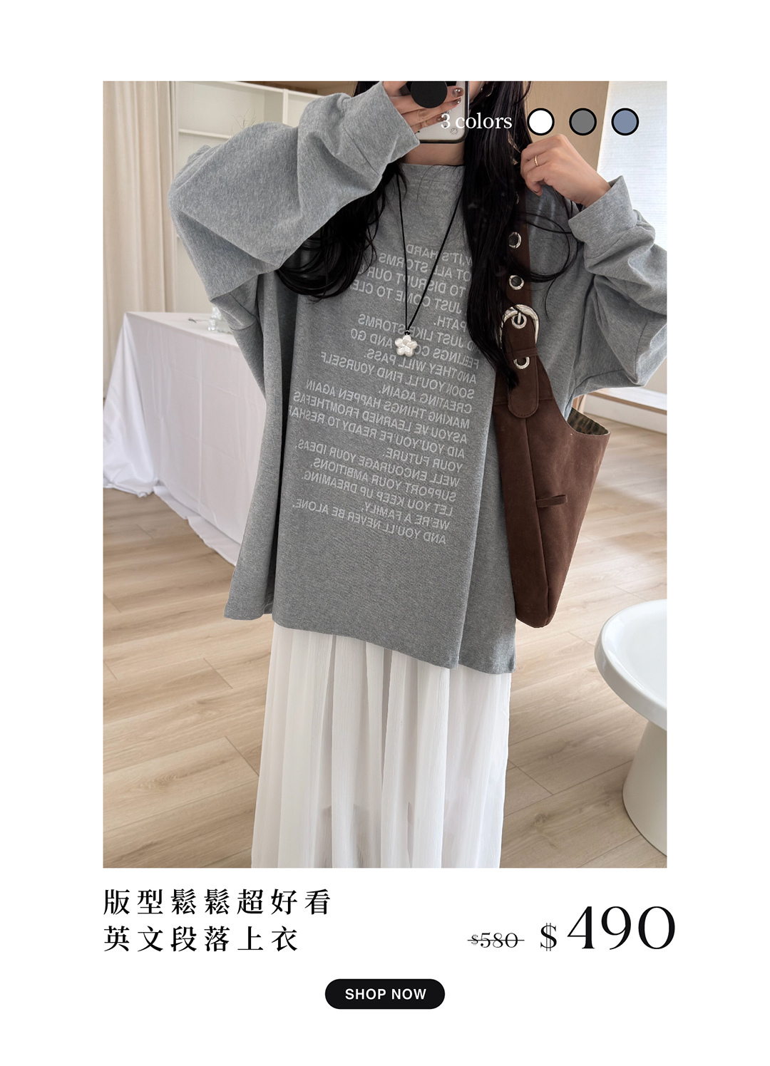 版型鬆鬆超好看 英文段落上衣 3colors