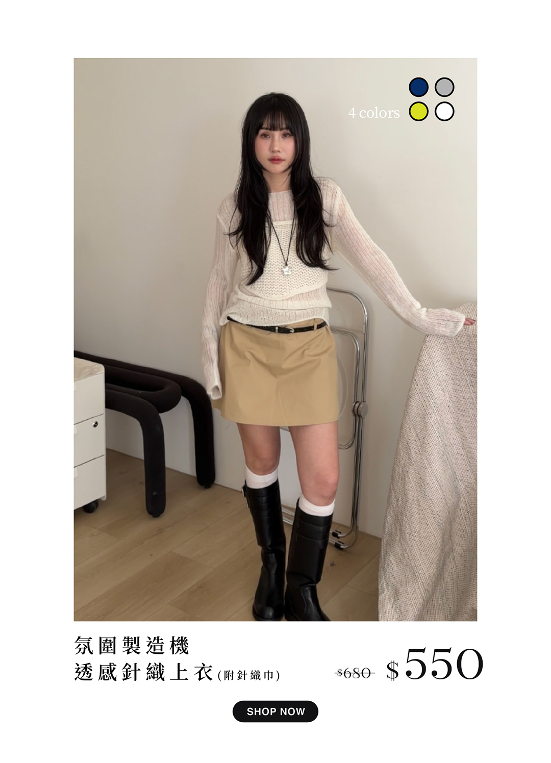 氛圍製造機 透感針織上衣(附針織巾) 4colors