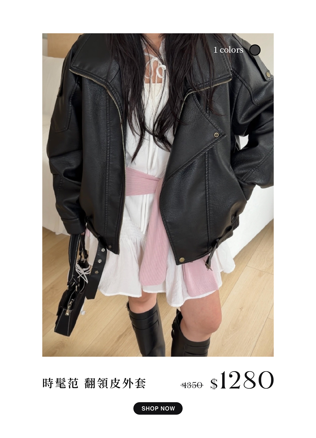 時髦范 翻領皮外套