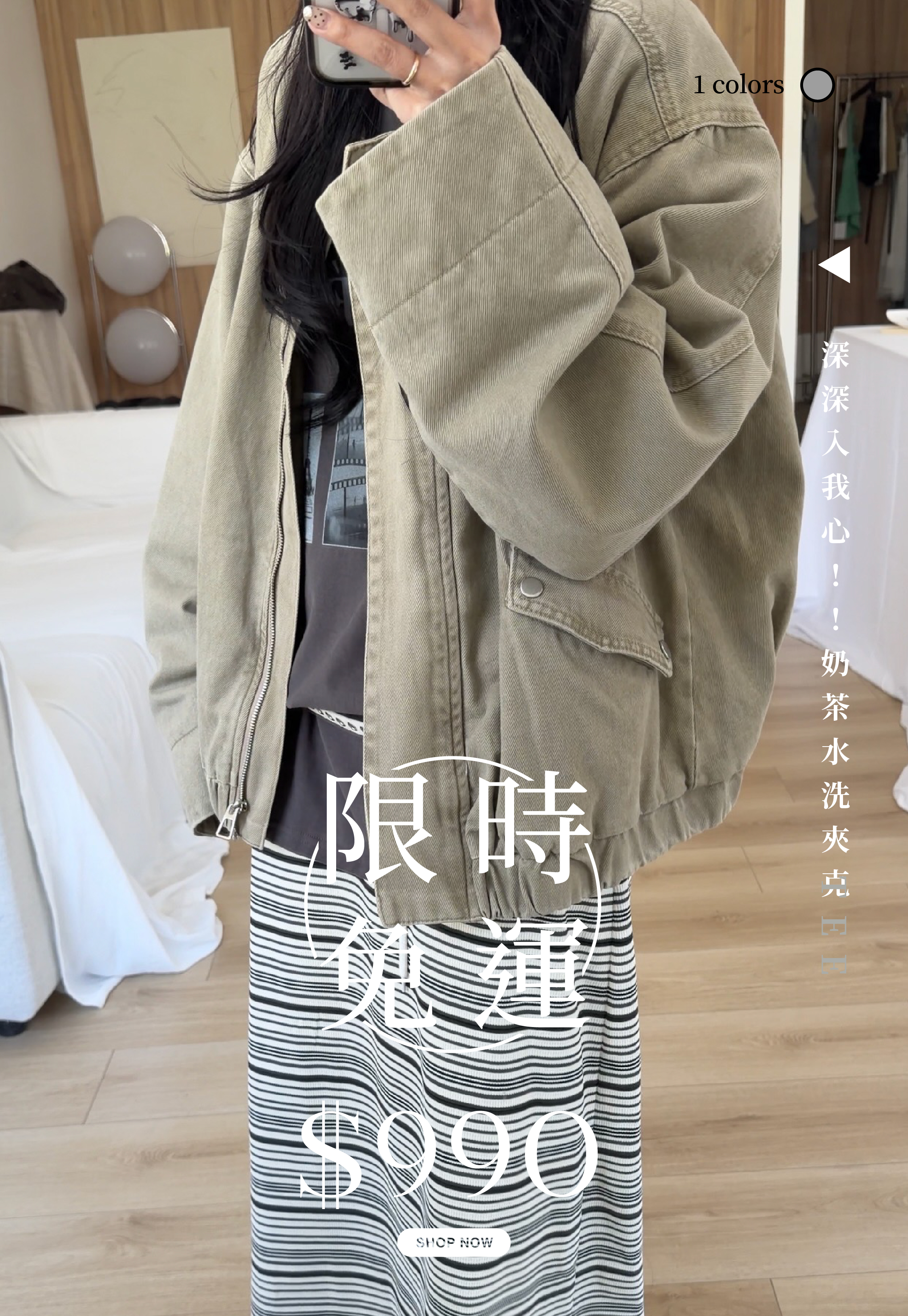 【限時一週直接免運】深深入我心!!奶茶水洗夾克