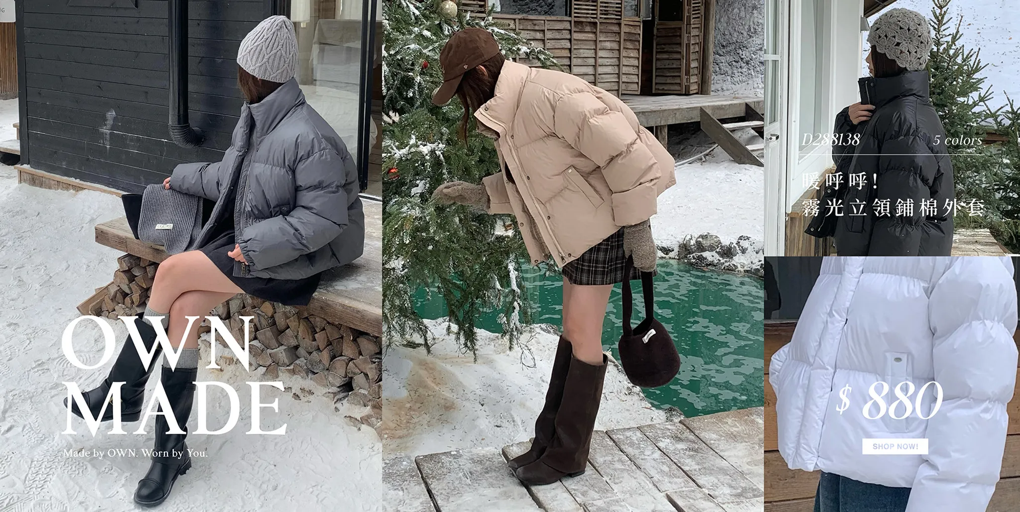 【OWN自訂款-限時優惠$999】簡約魅力 小立領縮口鋪棉外套 3colors