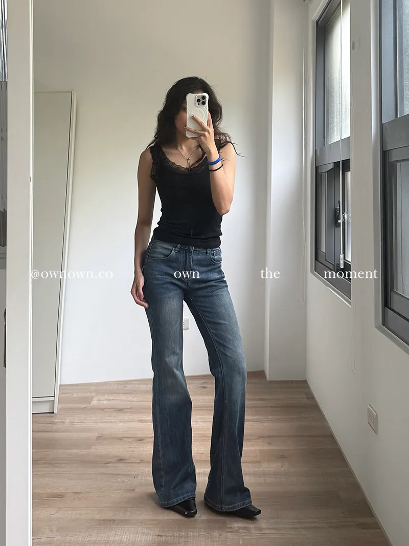 腿會被拉長 牛仔小喇叭褲 S/M/L