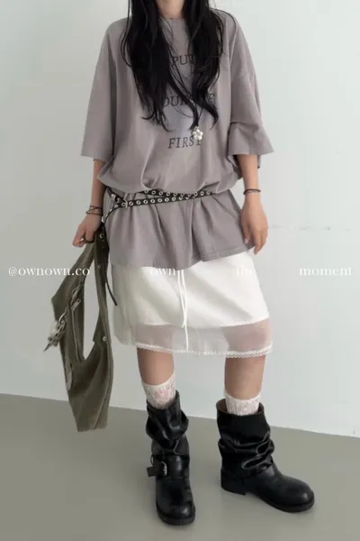 Mousse蕾絲鬆緊半裙 2colors