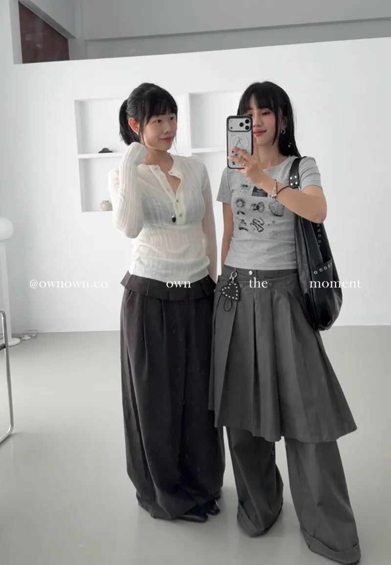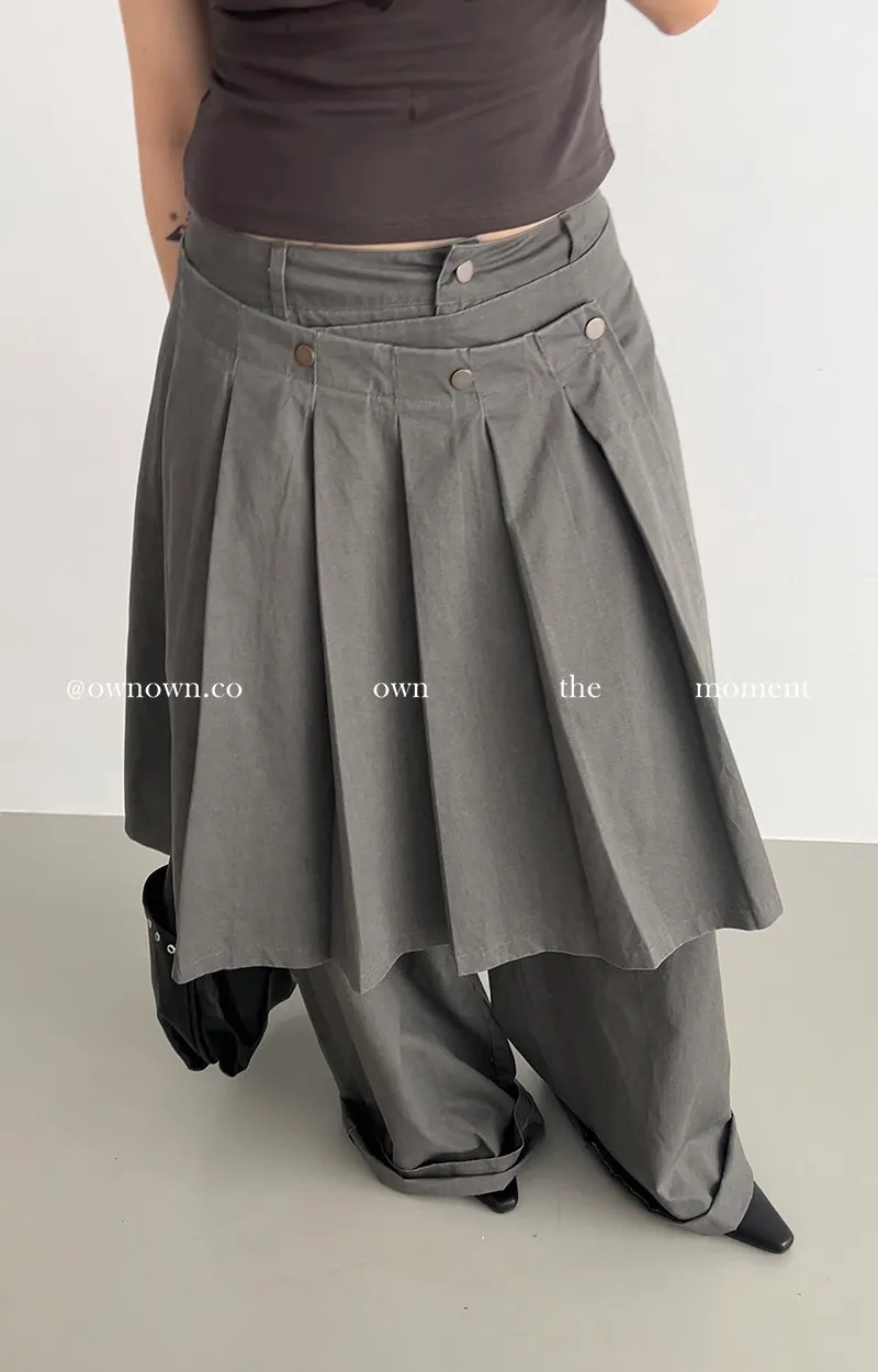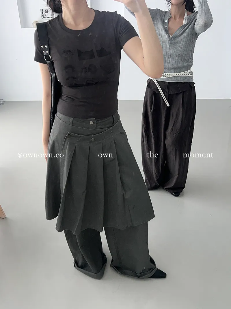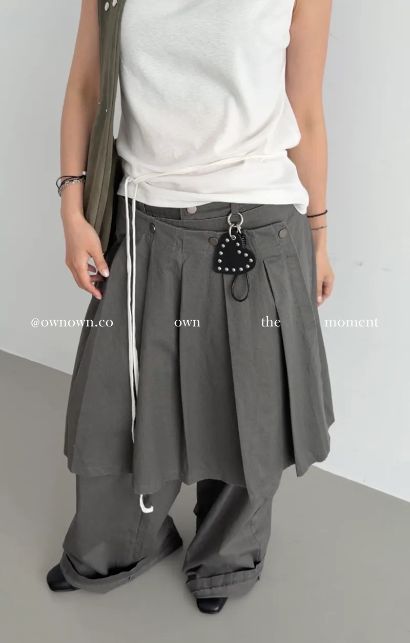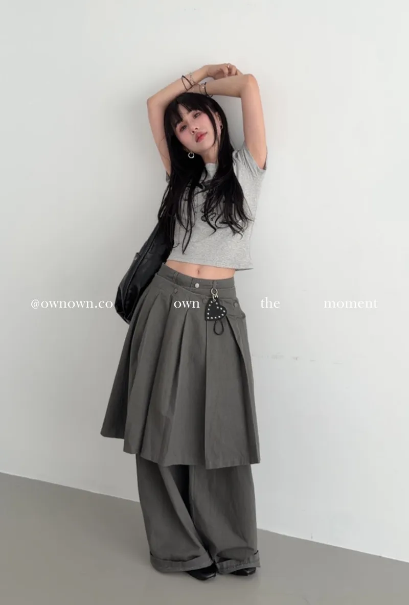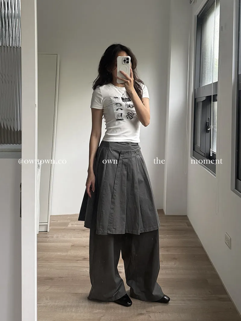 這個水洗灰調好時髦!百摺裙褲SET S/M/L