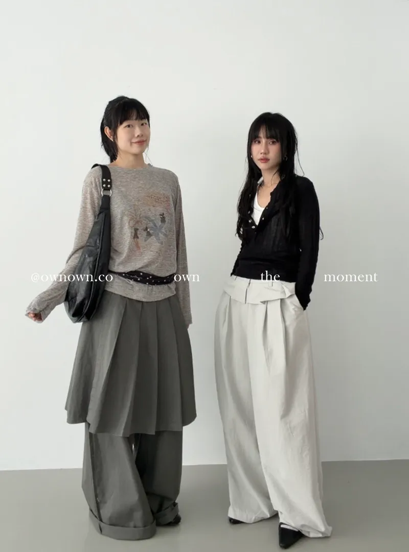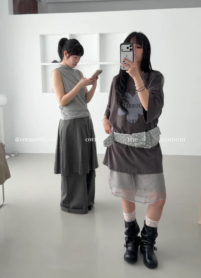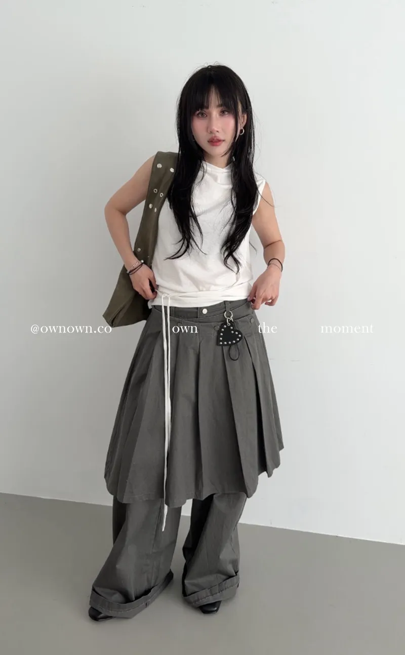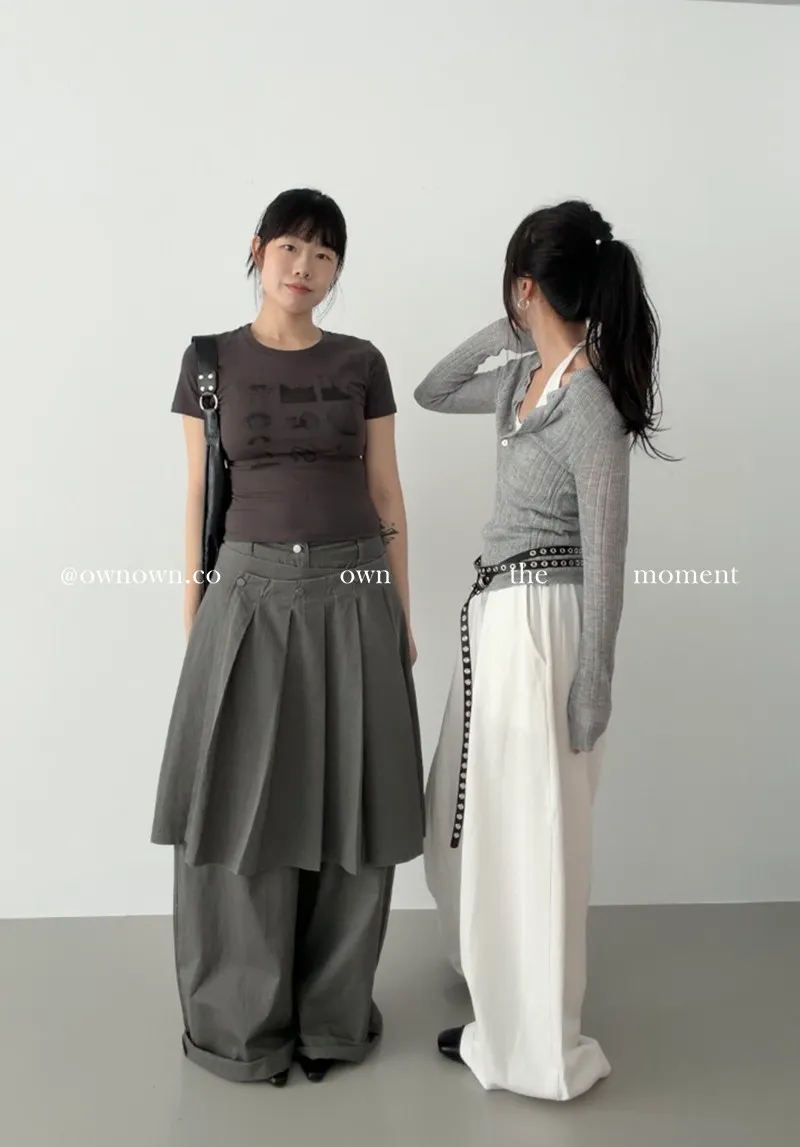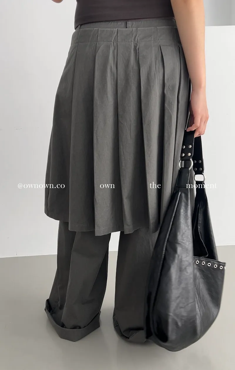 這個水洗灰調好時髦!百摺裙褲SET S/M/L