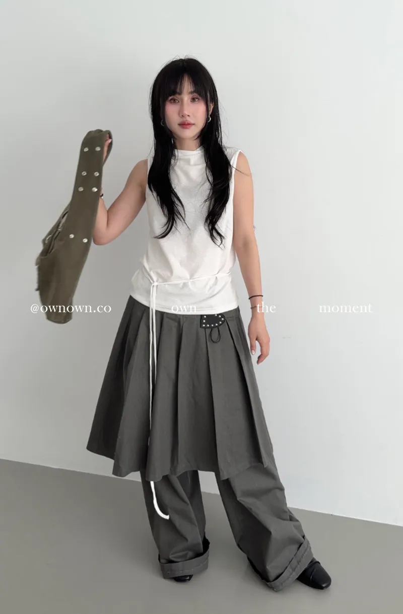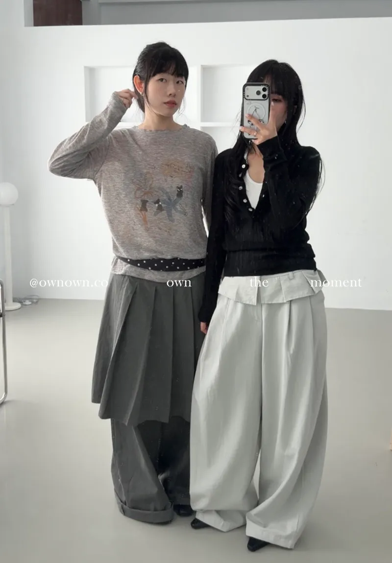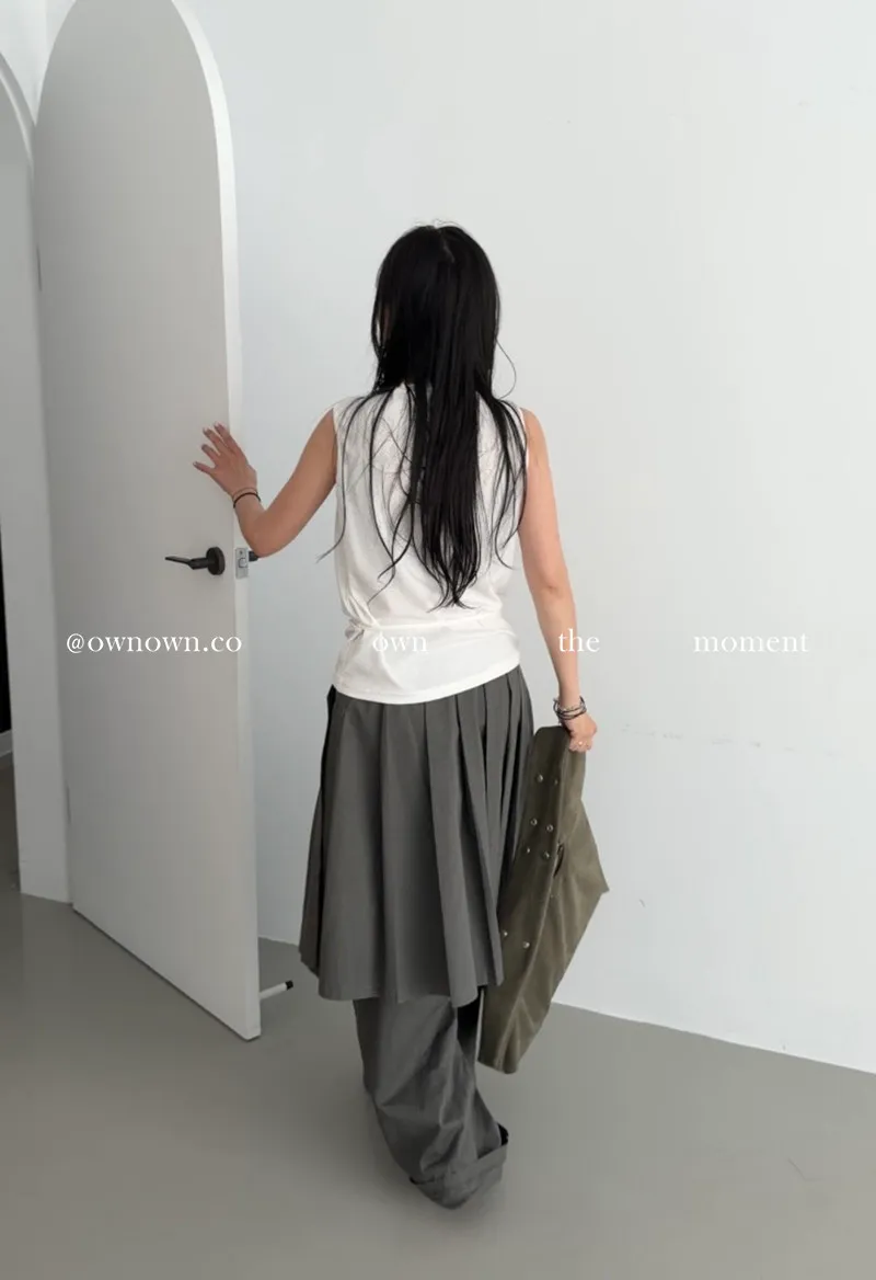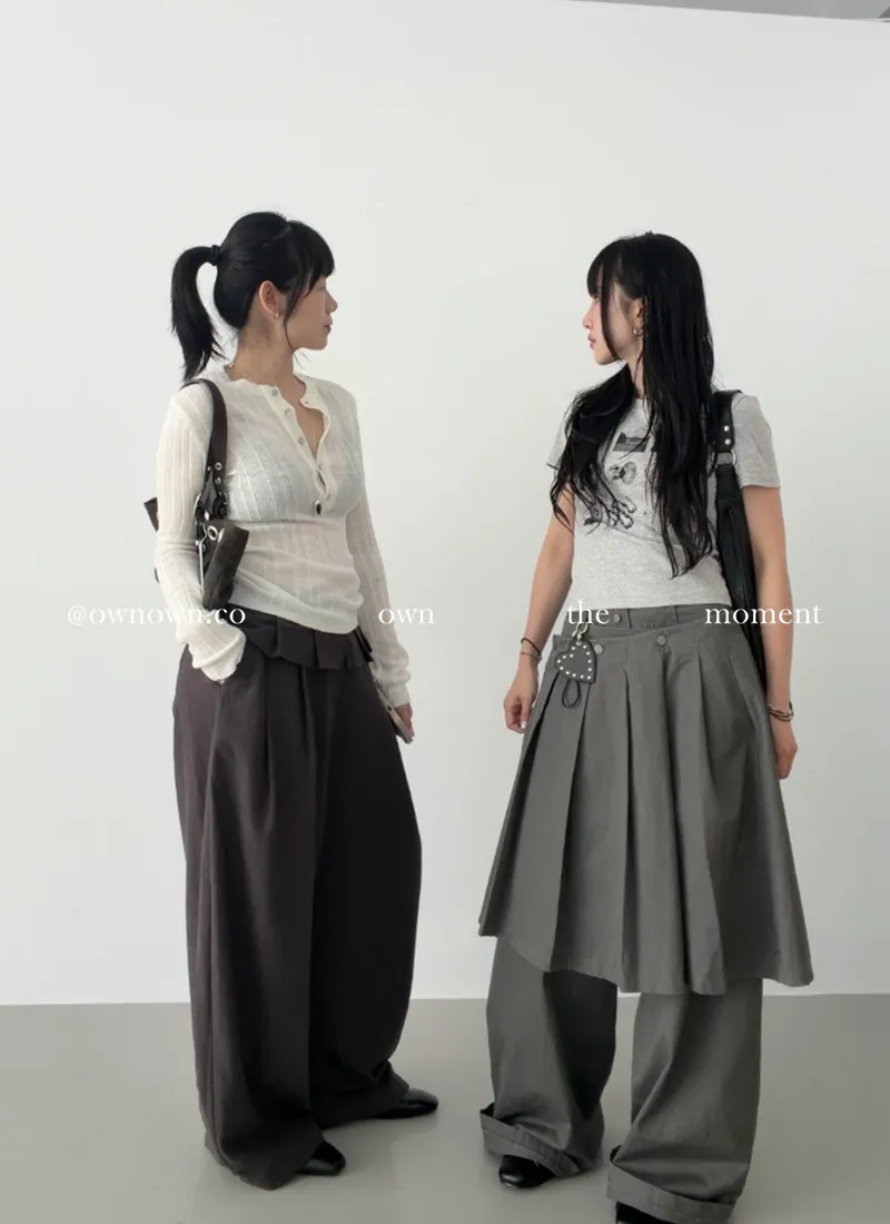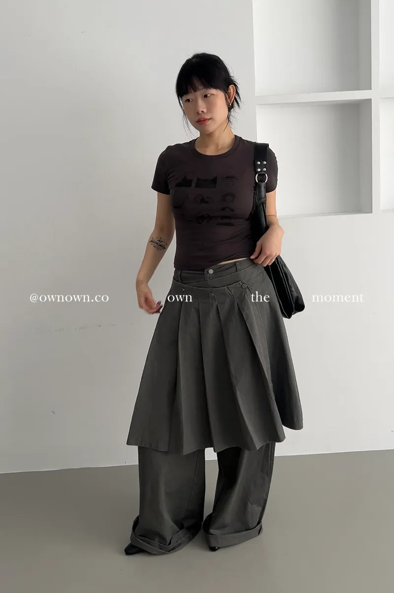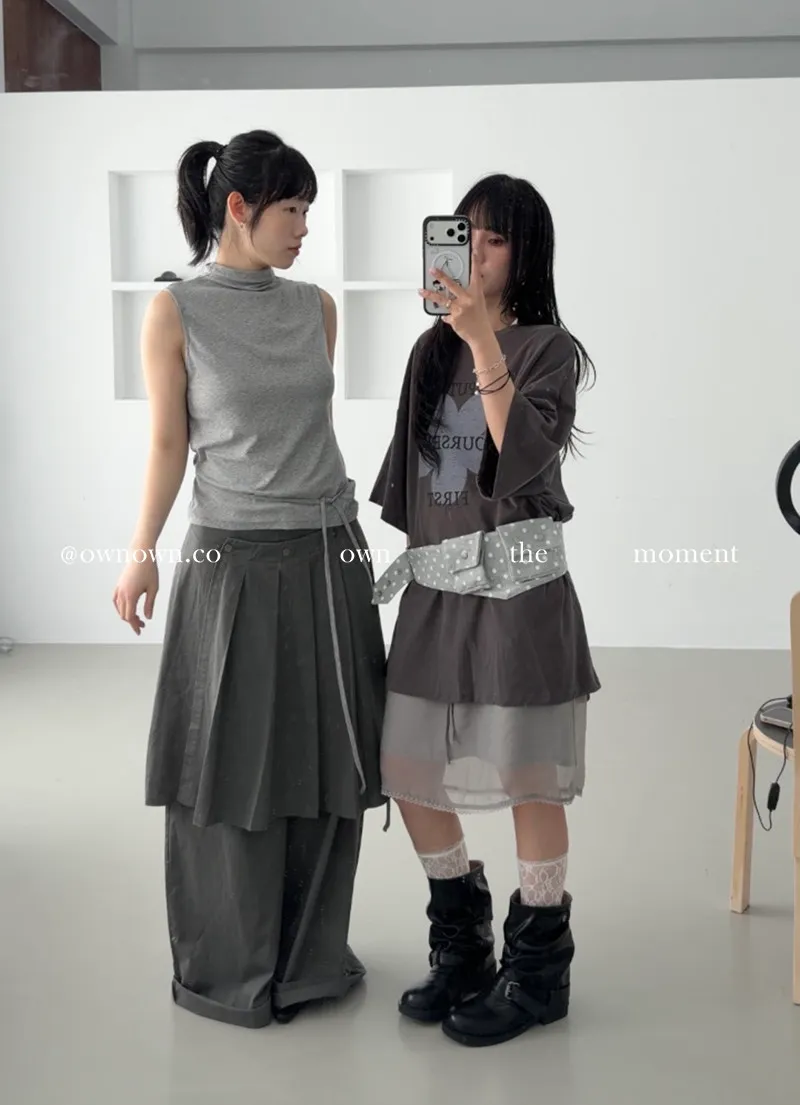 這個水洗灰調好時髦!百摺裙褲SET S/M/L
