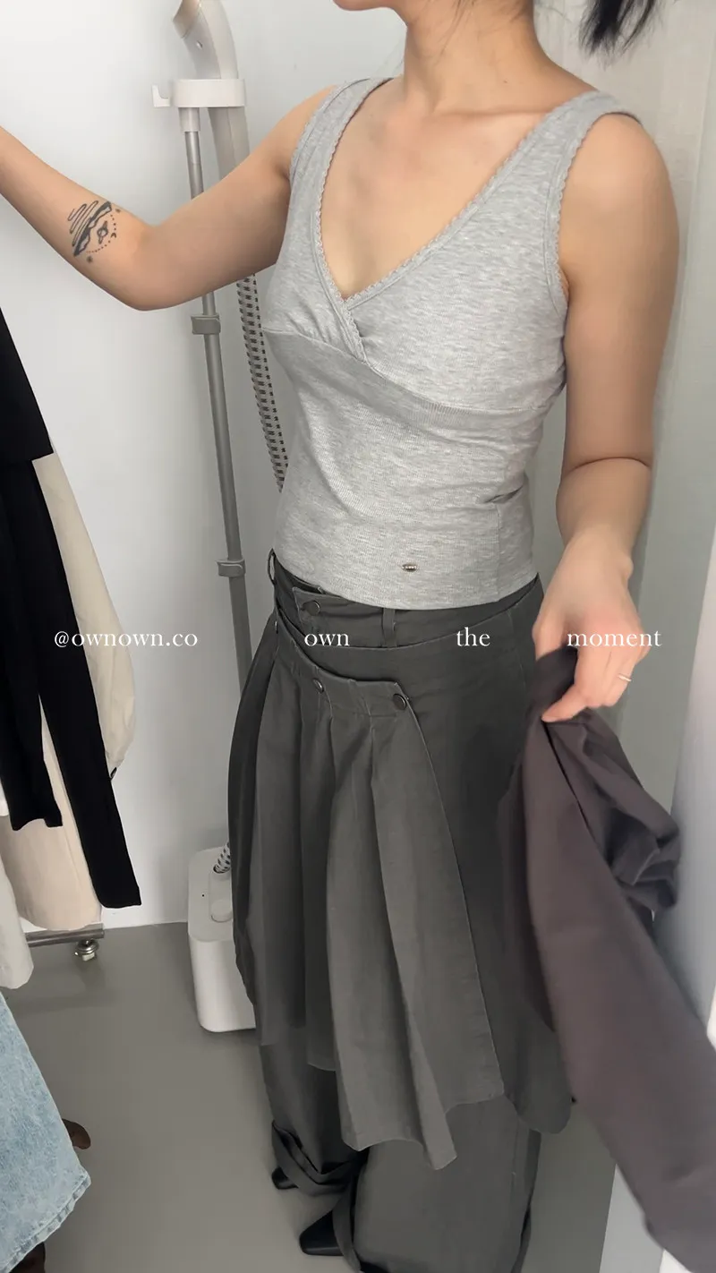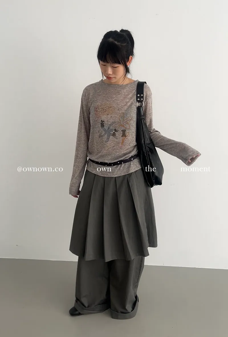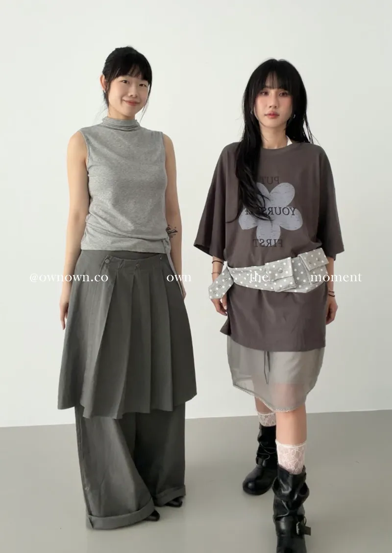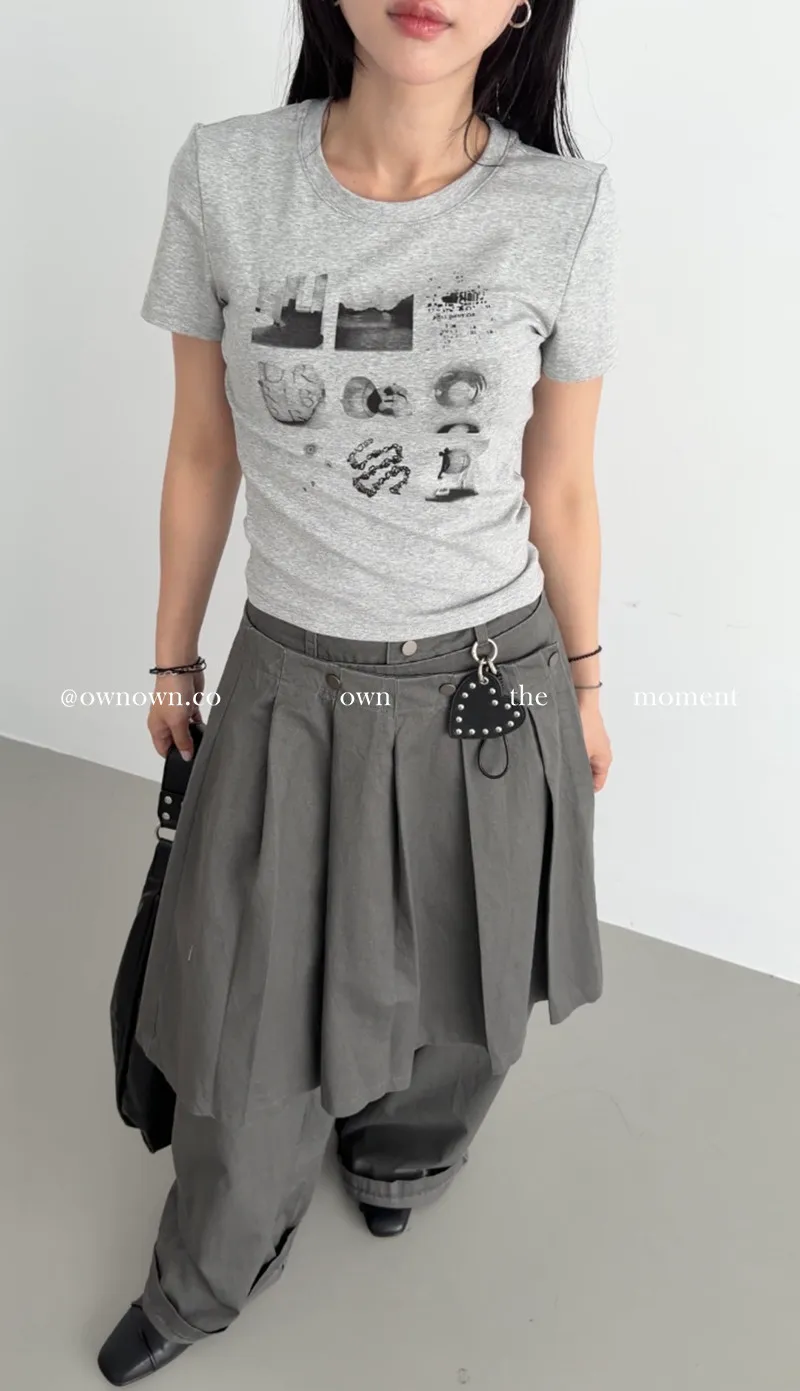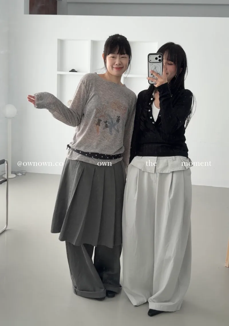 這個水洗灰調好時髦!百摺裙褲SET S/M/L