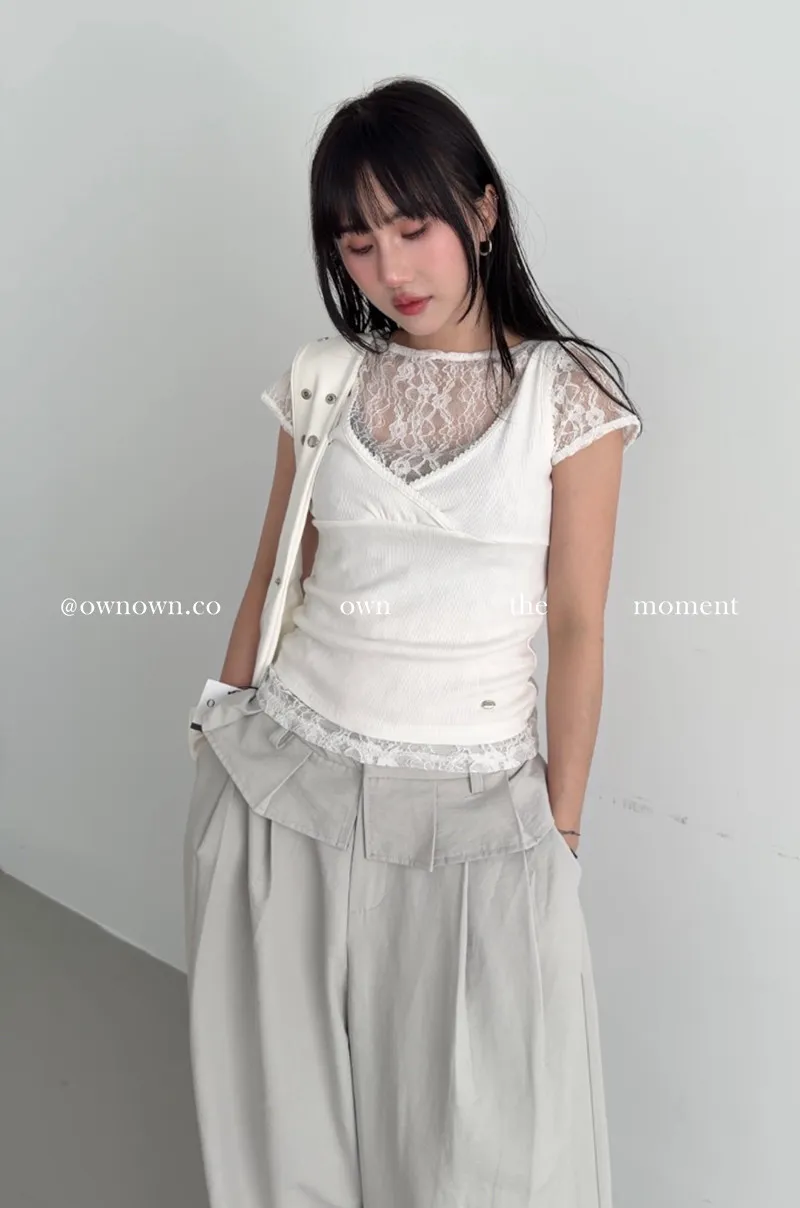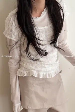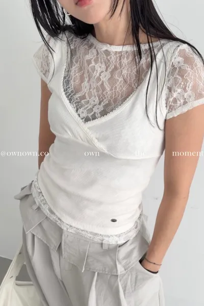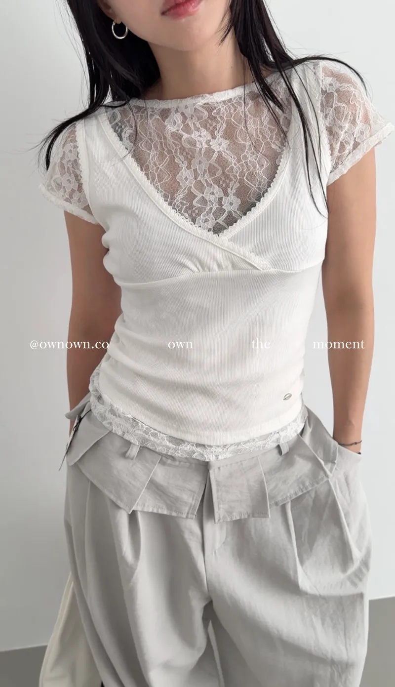 小花邊V領設計帶出微微性感,線條柔和又細膩。