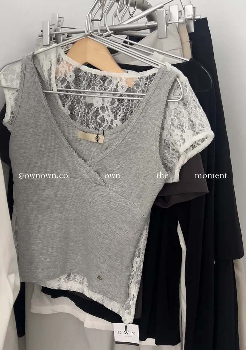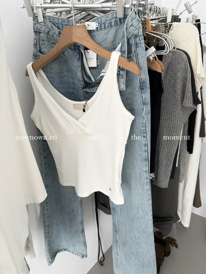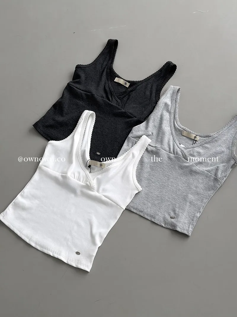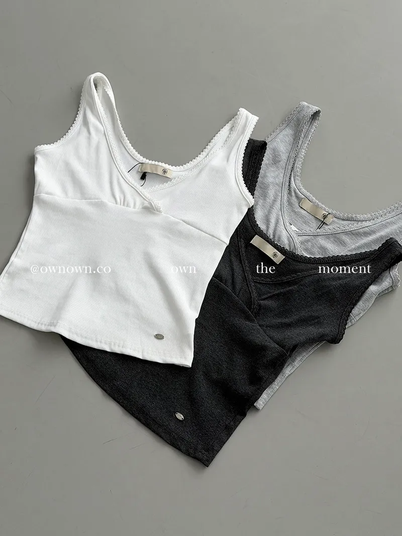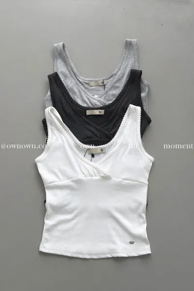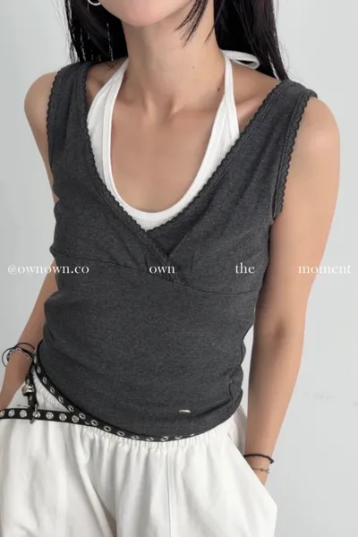 【OWN自訂款】帶點清新性感 小花邊V領背心 3colors