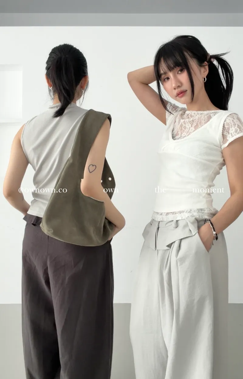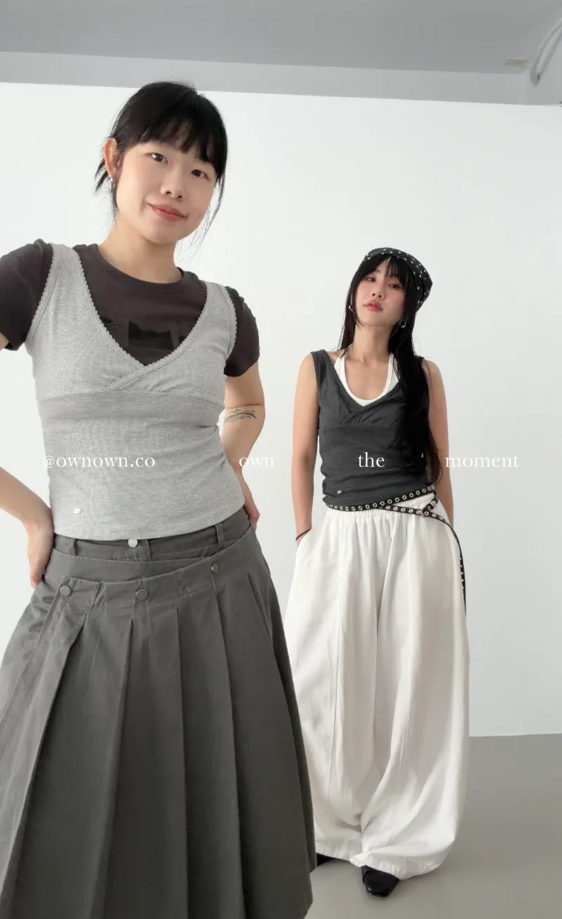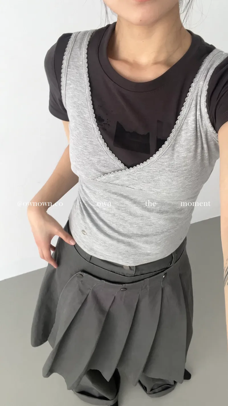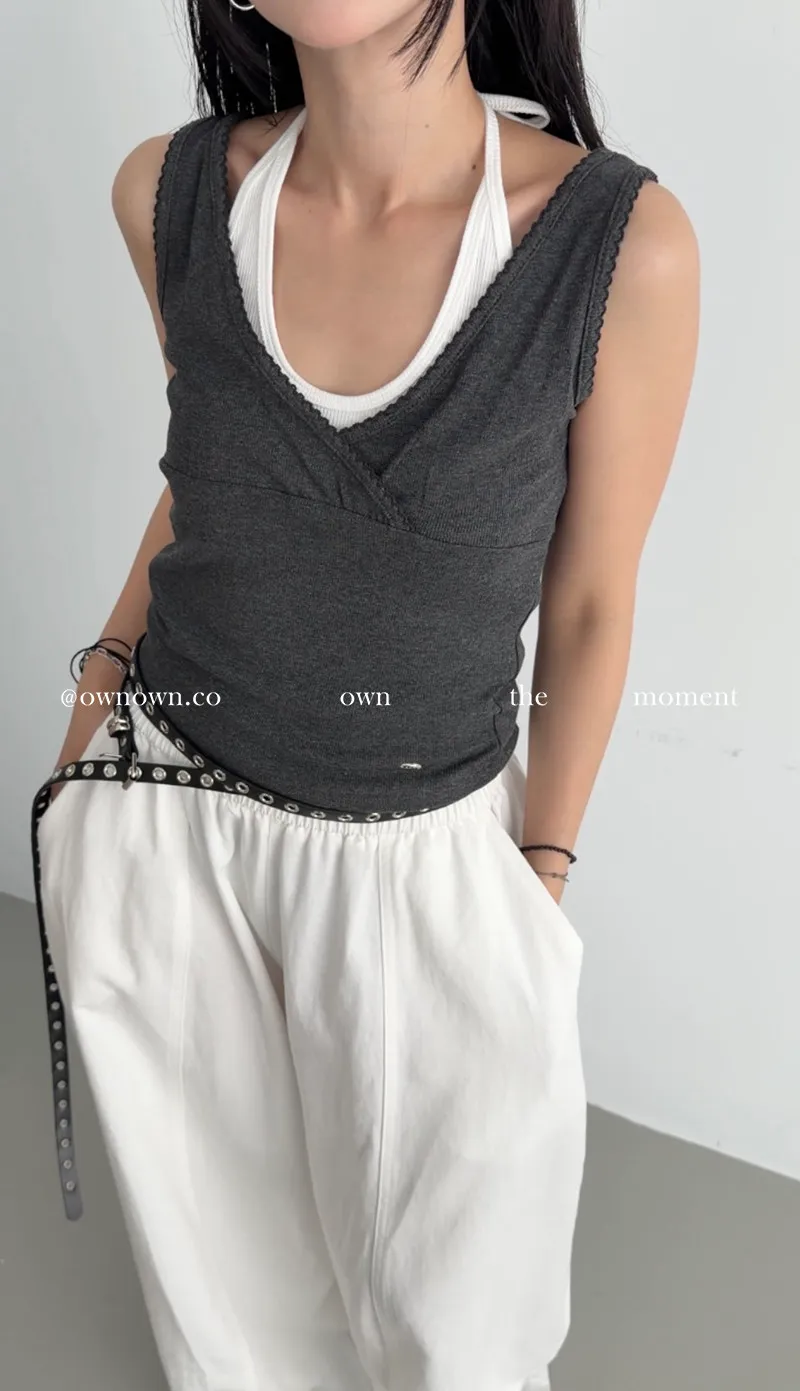 【OWN自訂款】帶點清新性感 小花邊V領背心 3colors