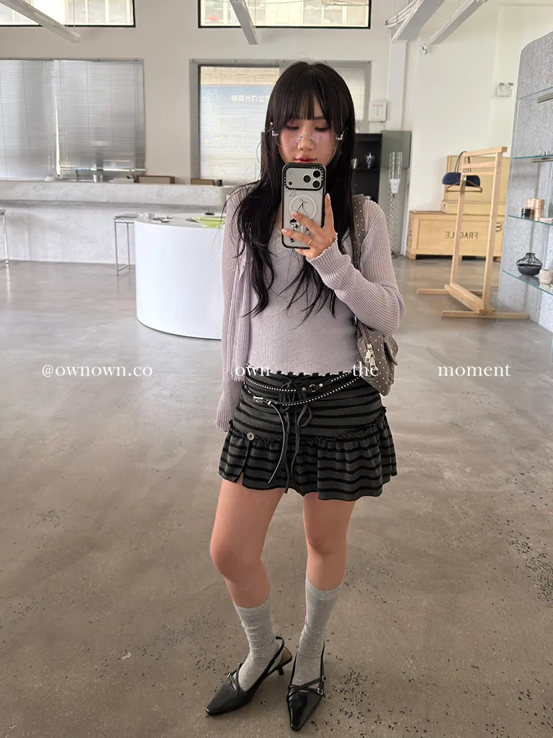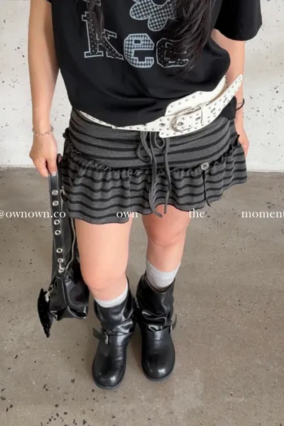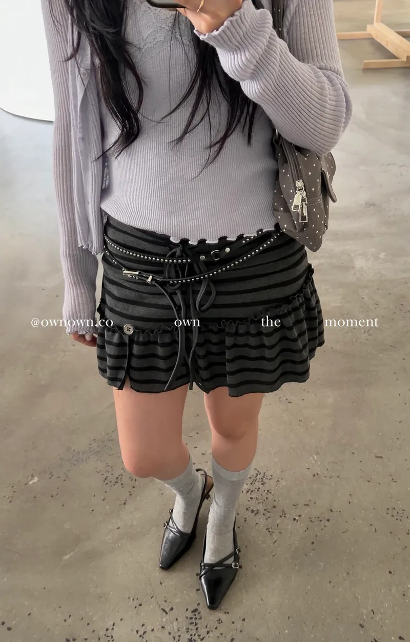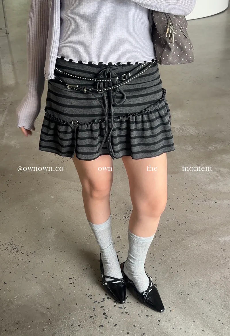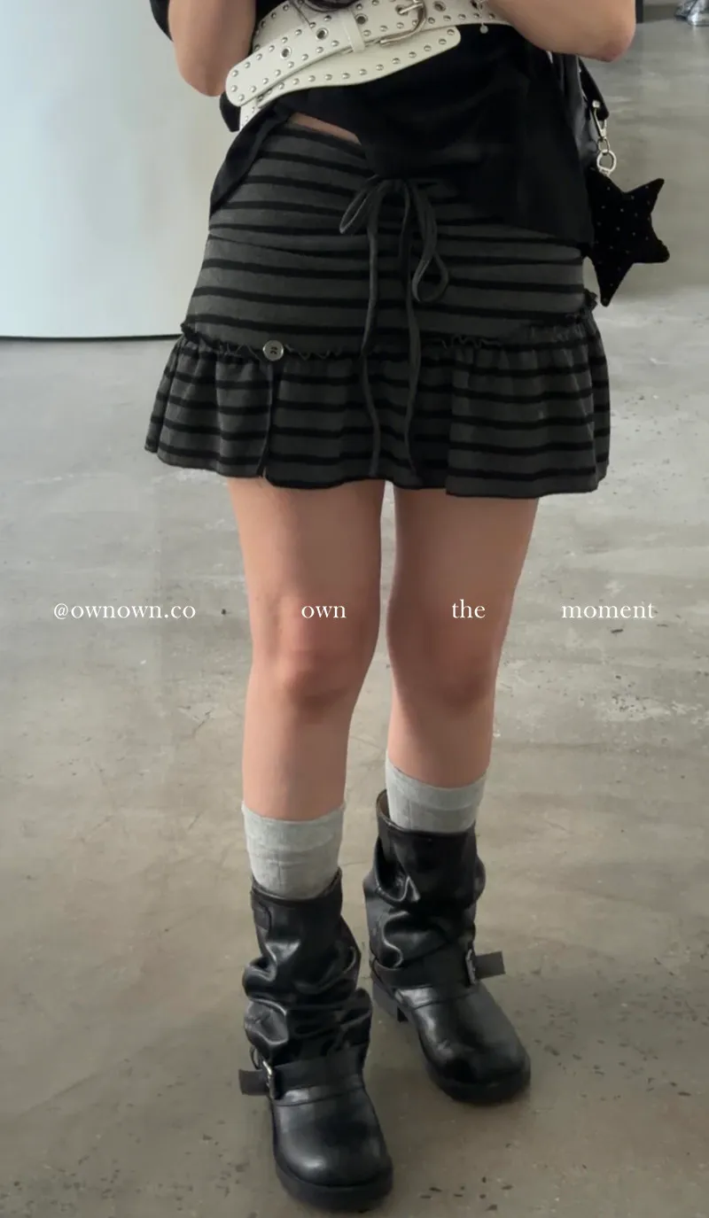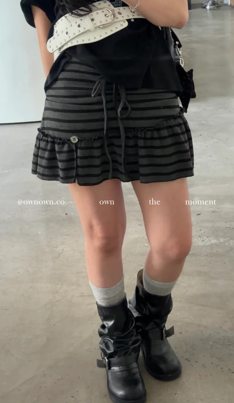 很辣!鈕扣條紋小短裙