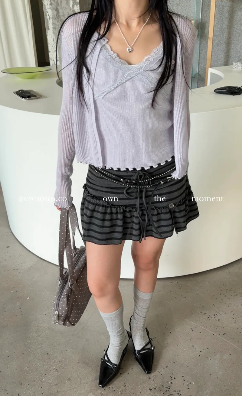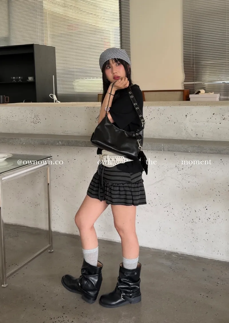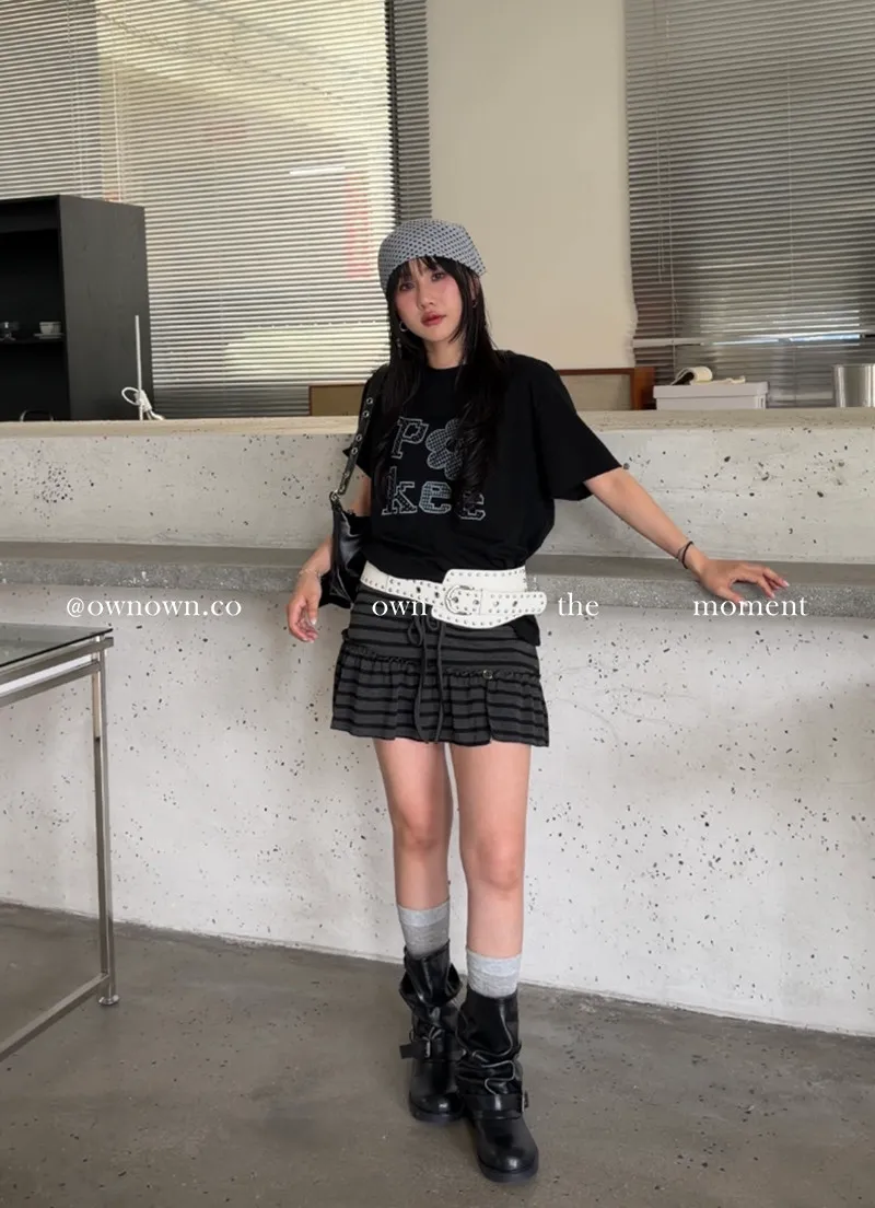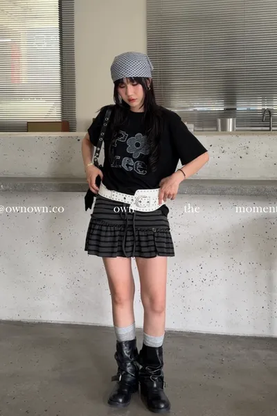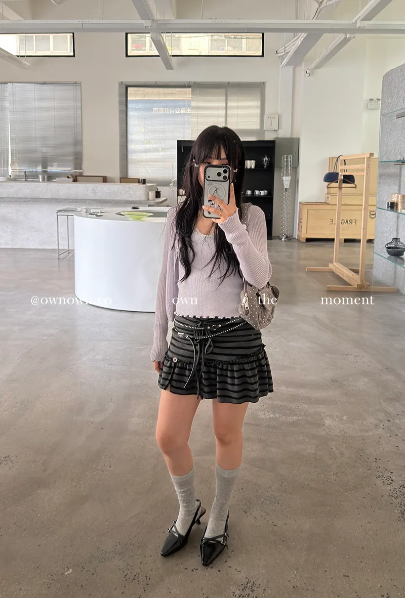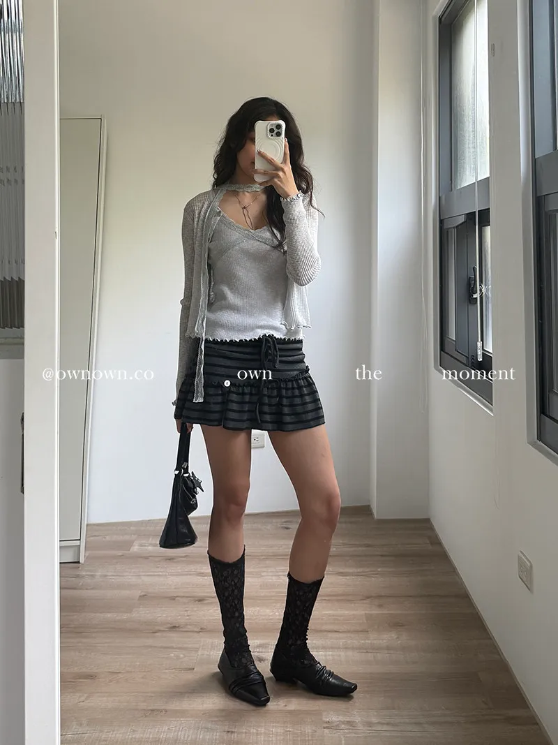 很辣!鈕扣條紋小短裙