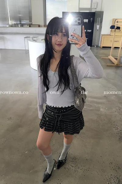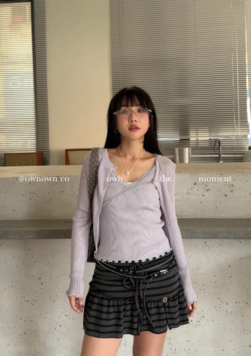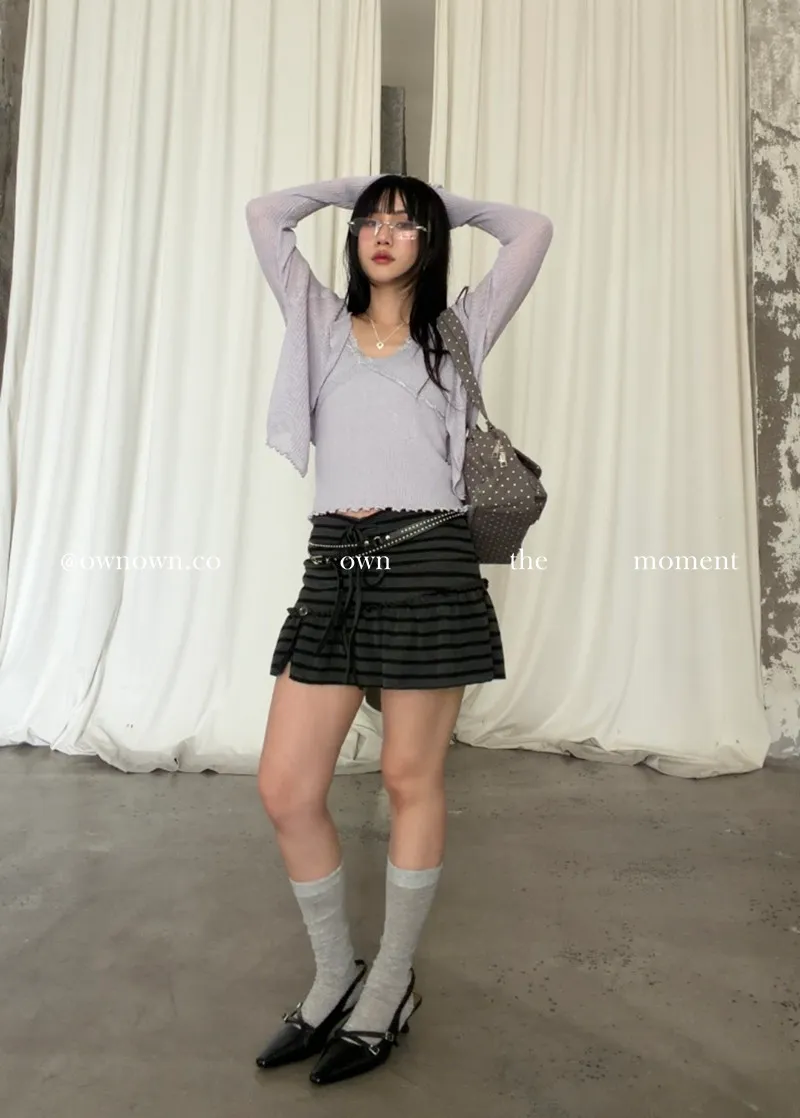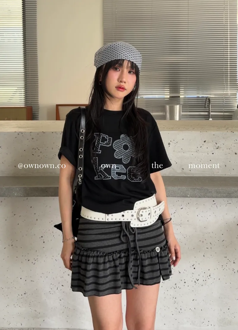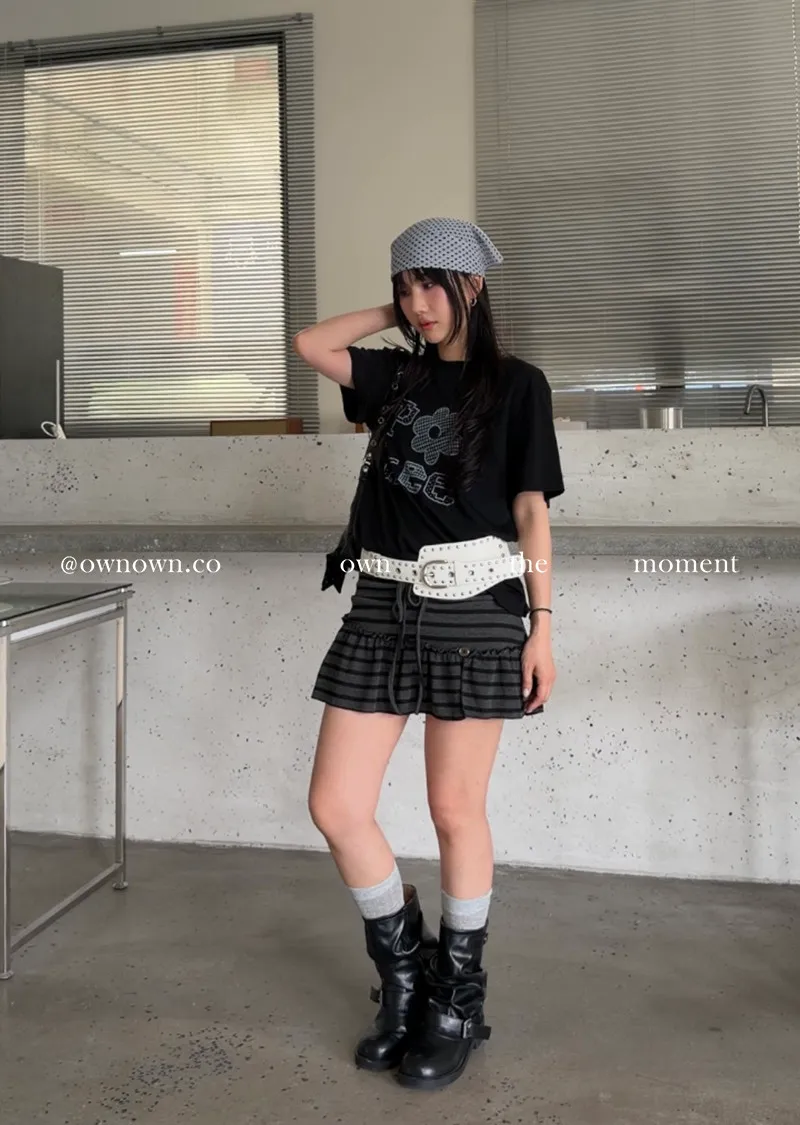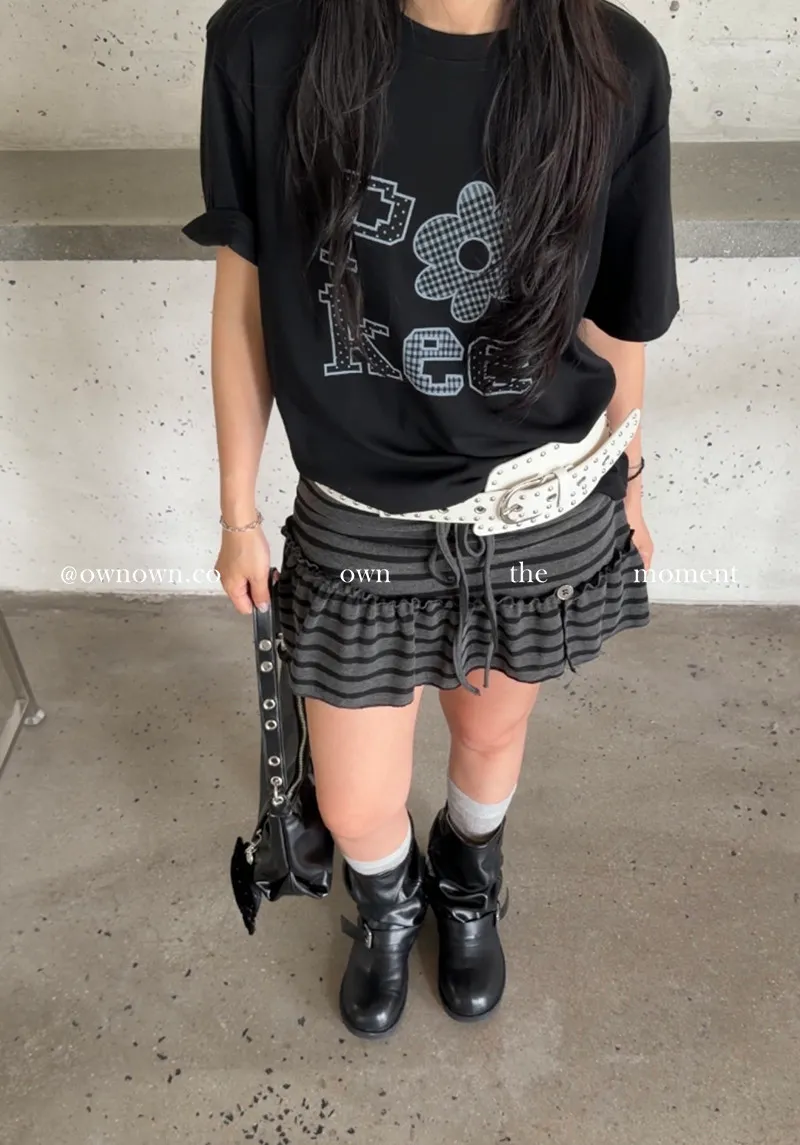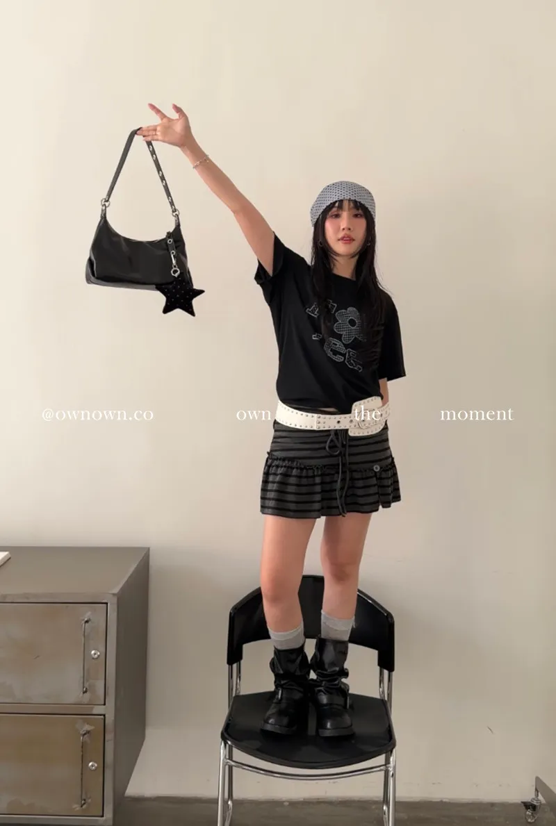 很辣!鈕扣條紋小短裙