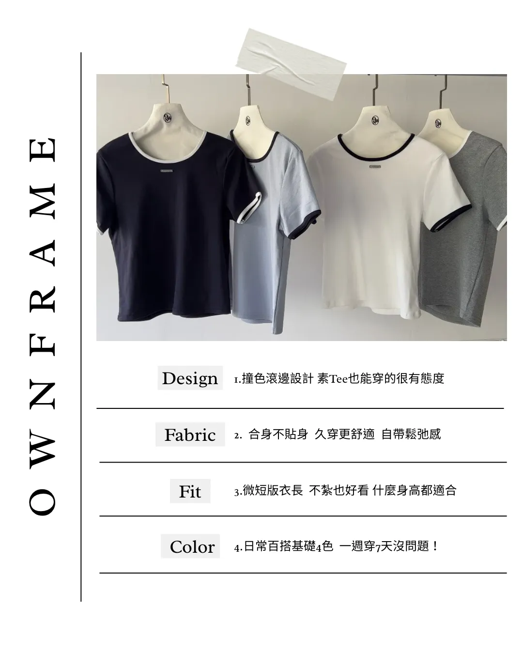 【OWN FRAME系列】基礎百搭滾邊短Tee 4colors