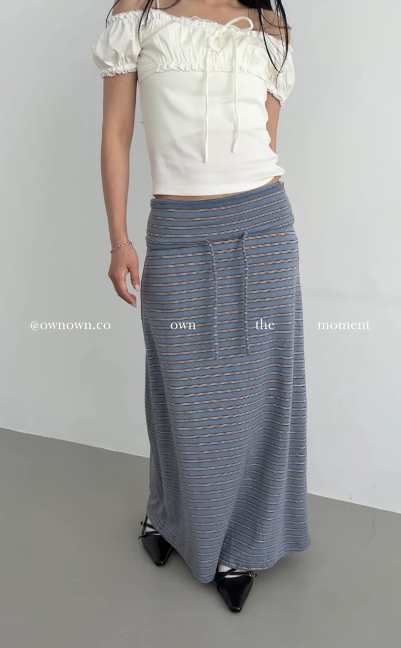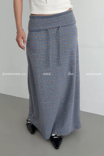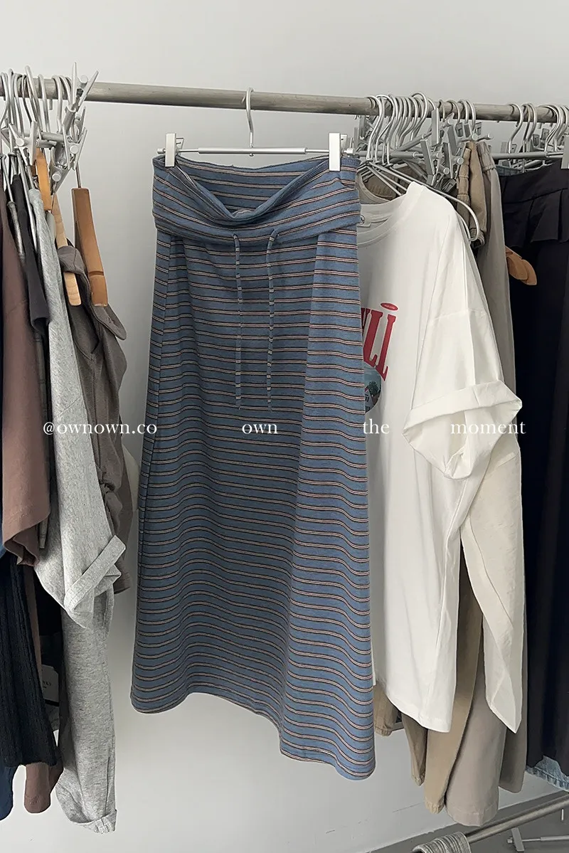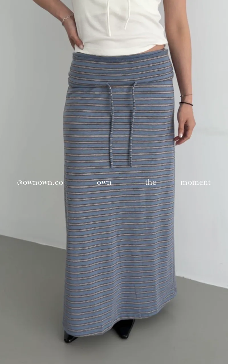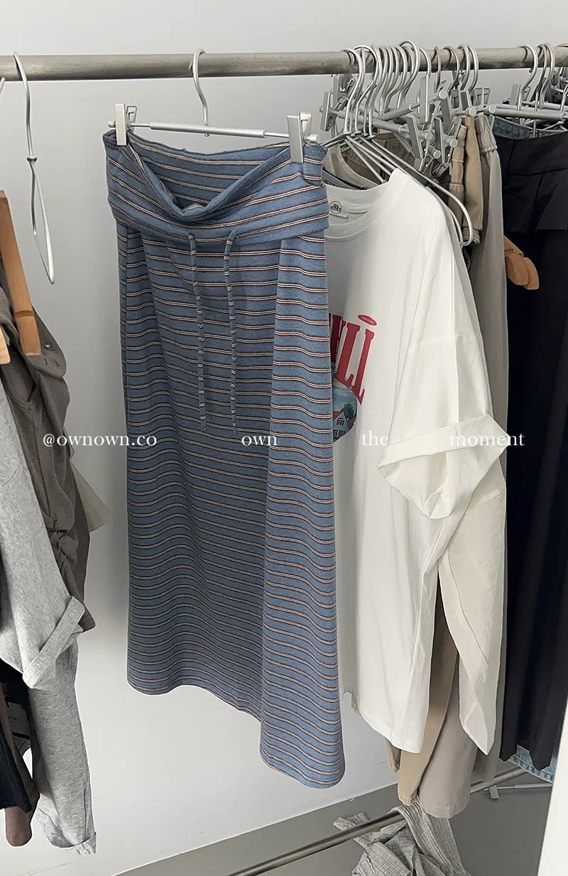 今天想輕鬆一點 翻腰條紋長裙 M/L