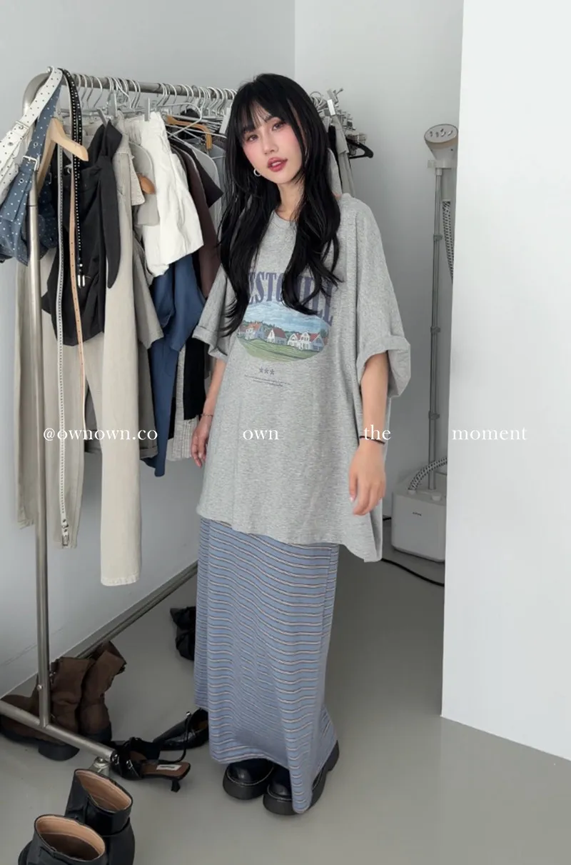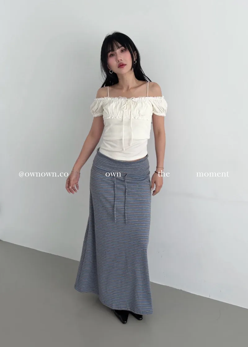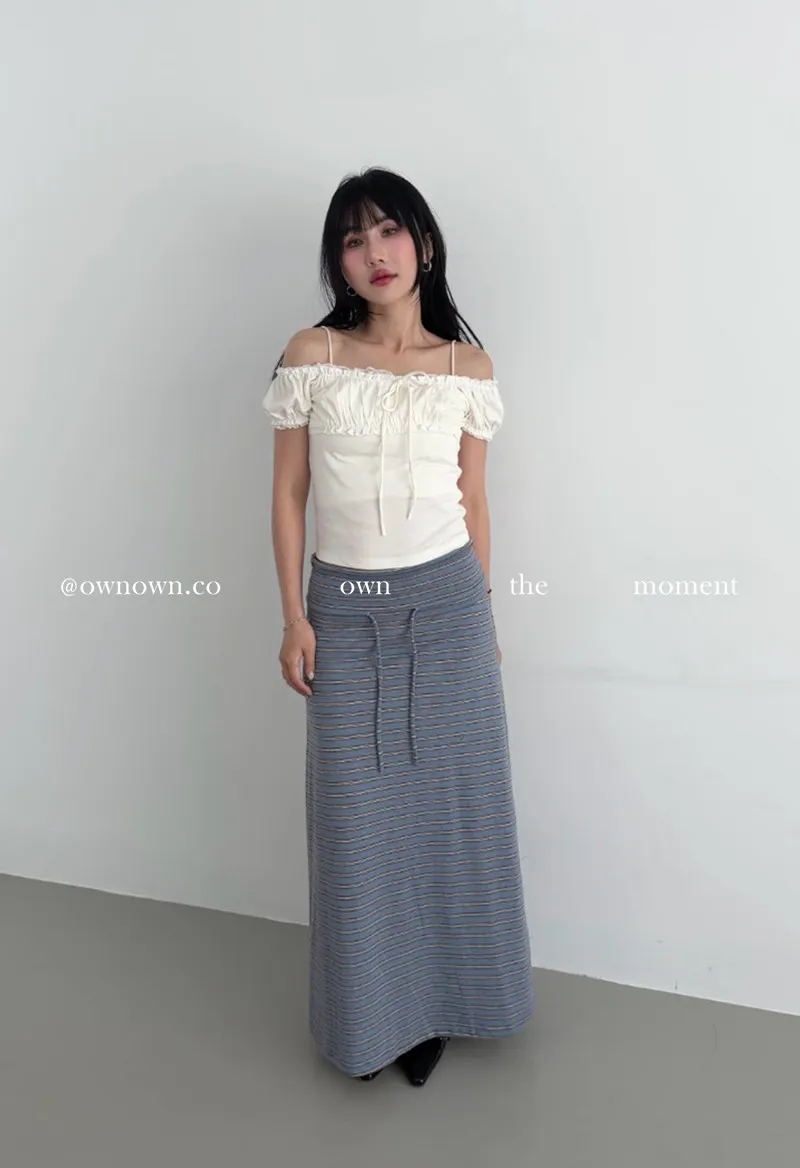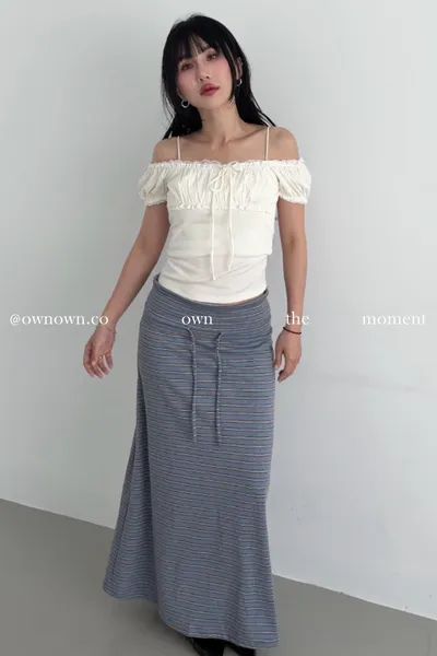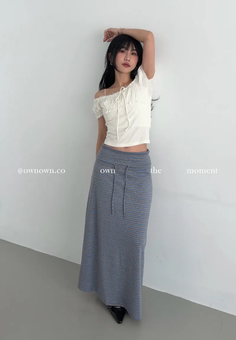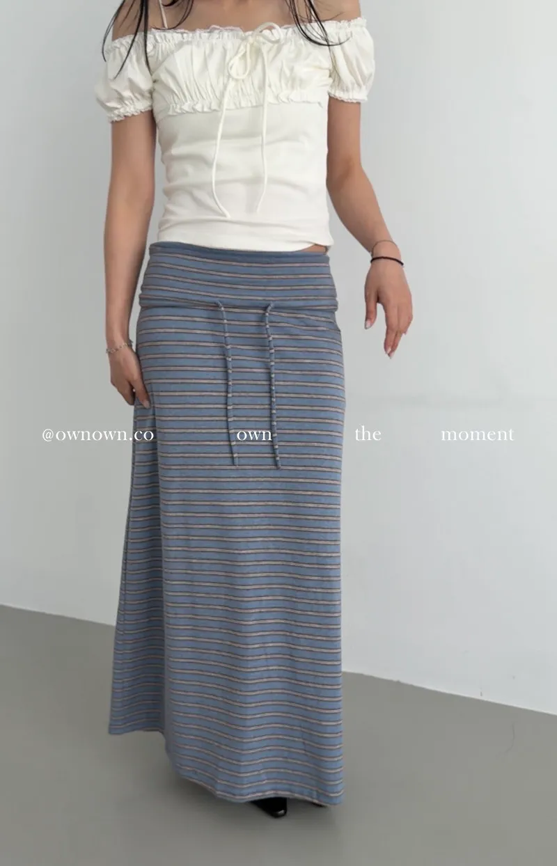 今天想輕鬆一點 翻腰條紋長裙 M/L