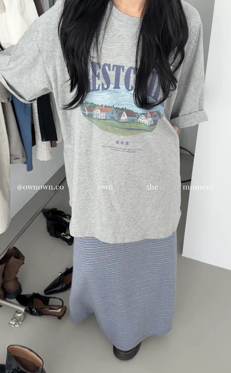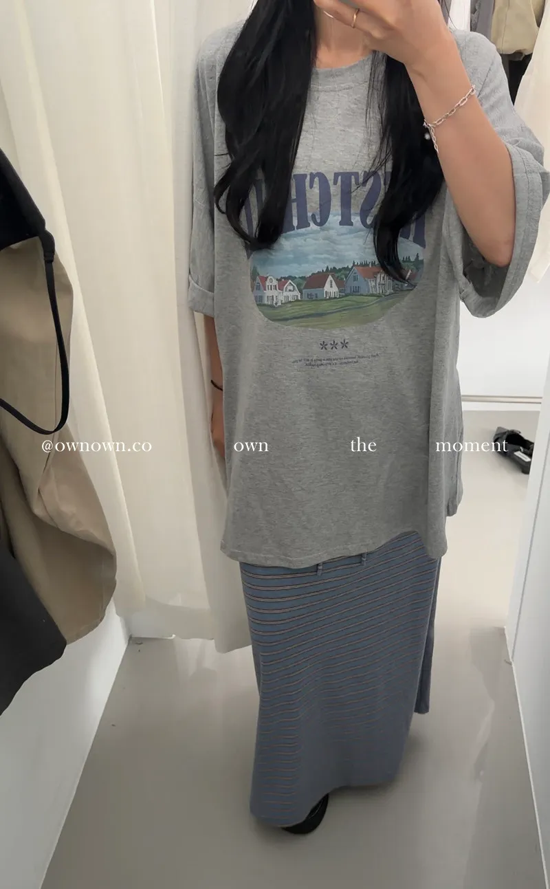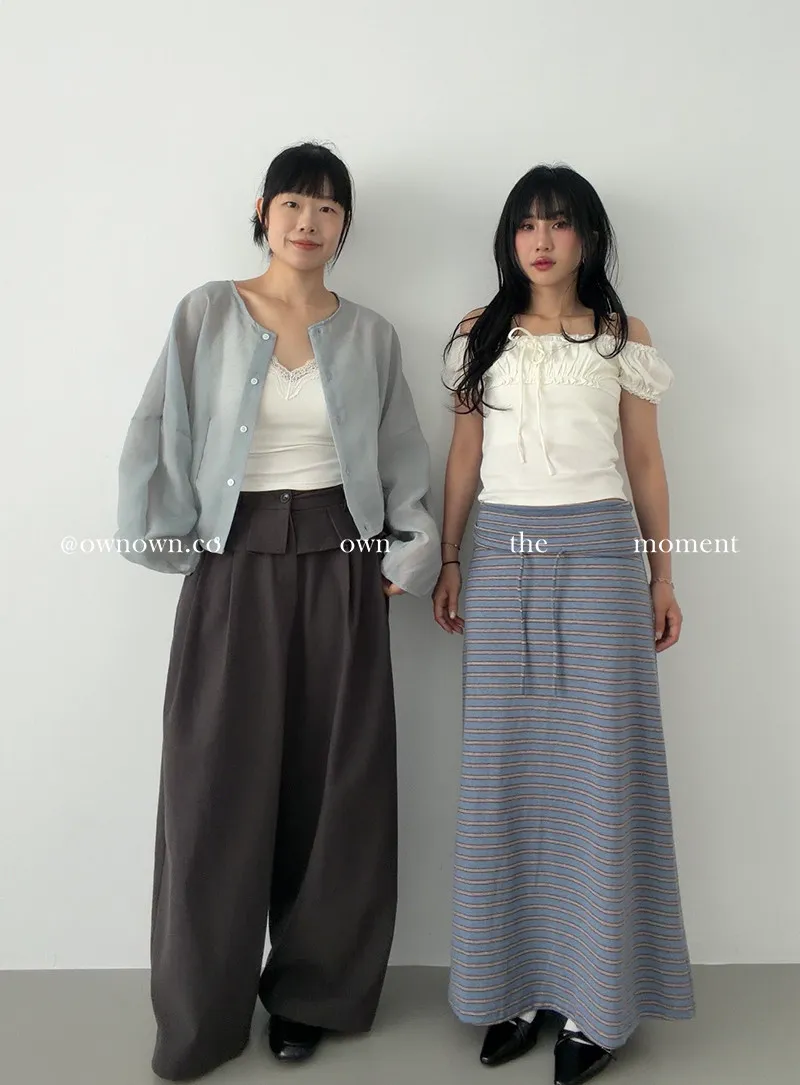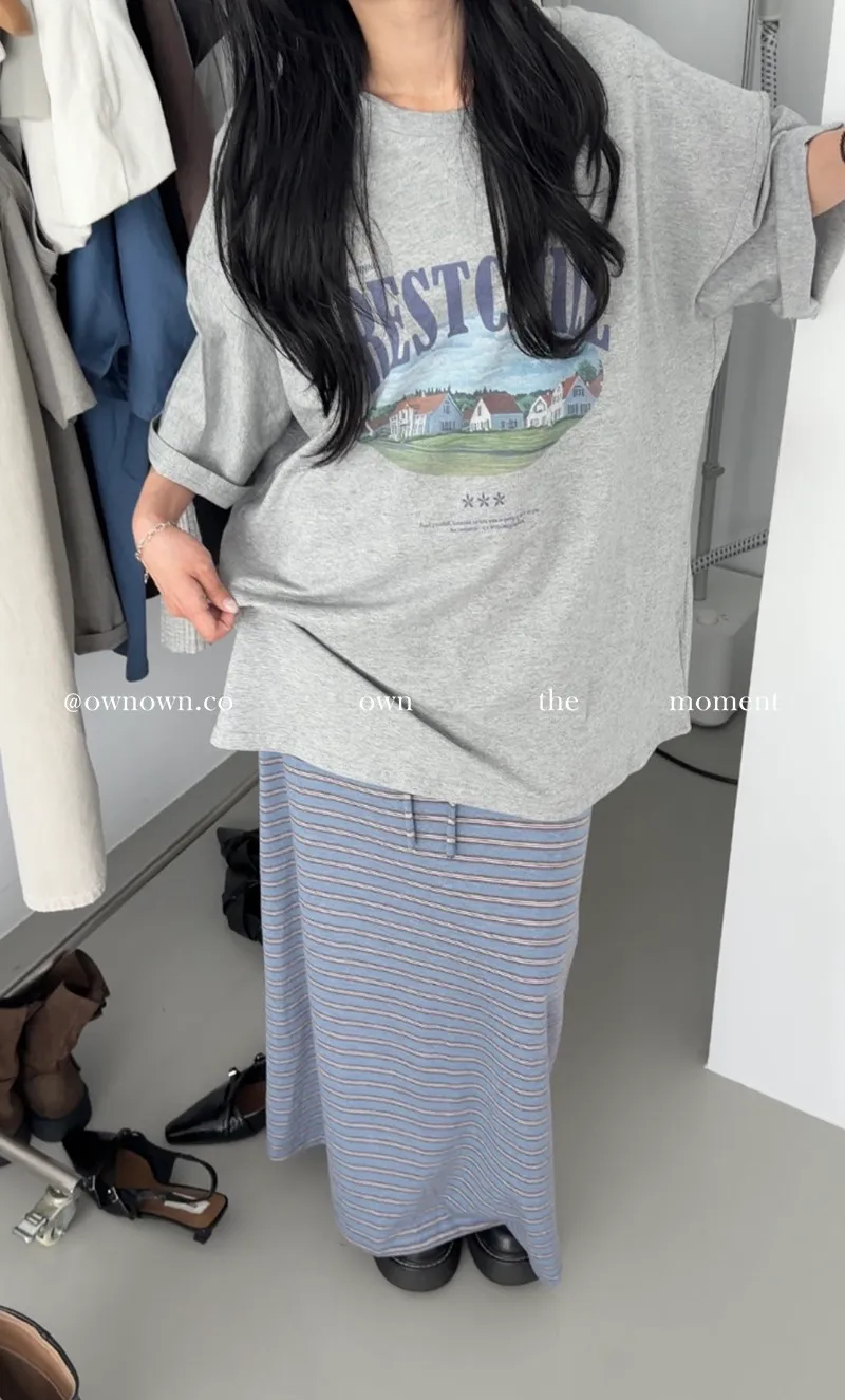 今天想輕鬆一點 翻腰條紋長裙 M/L