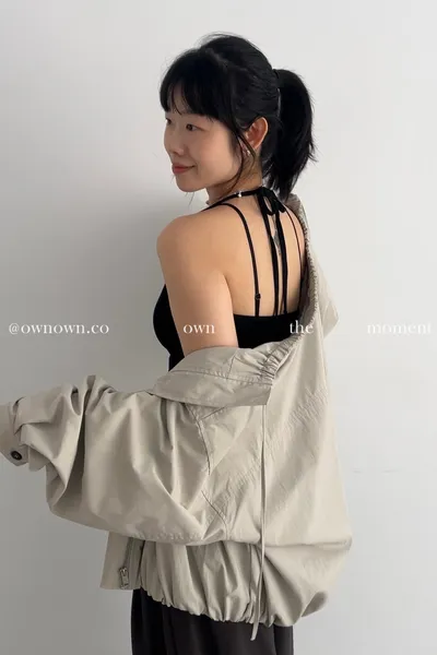 側邊的小細節自然帶出小心機,繞脖設計讓肩線更俐落又有微微性感。