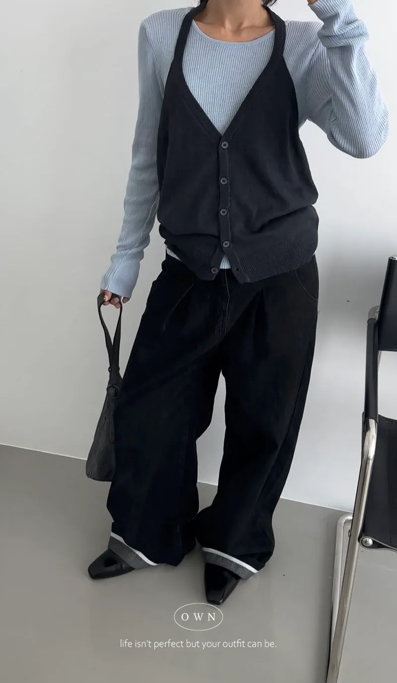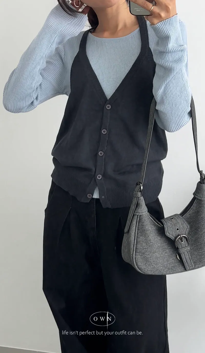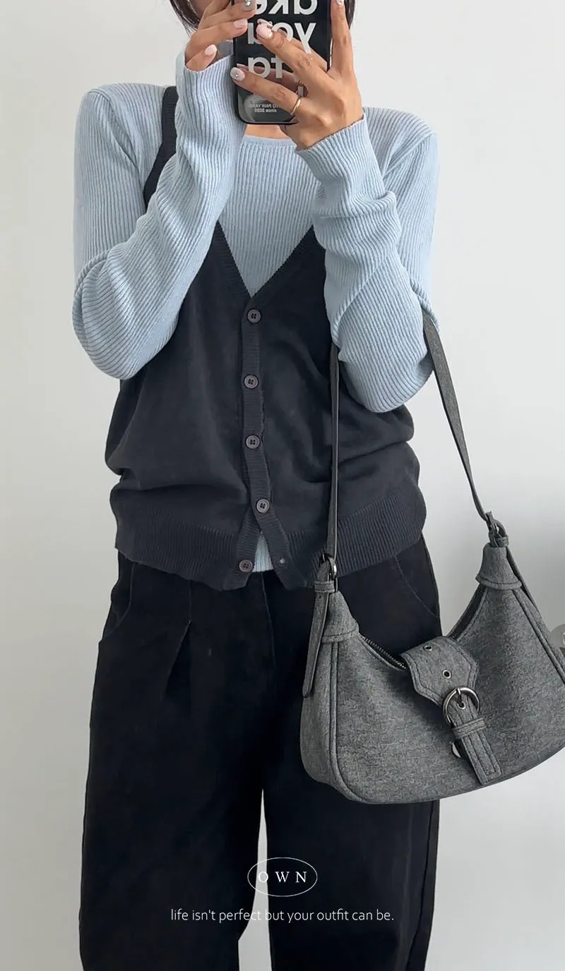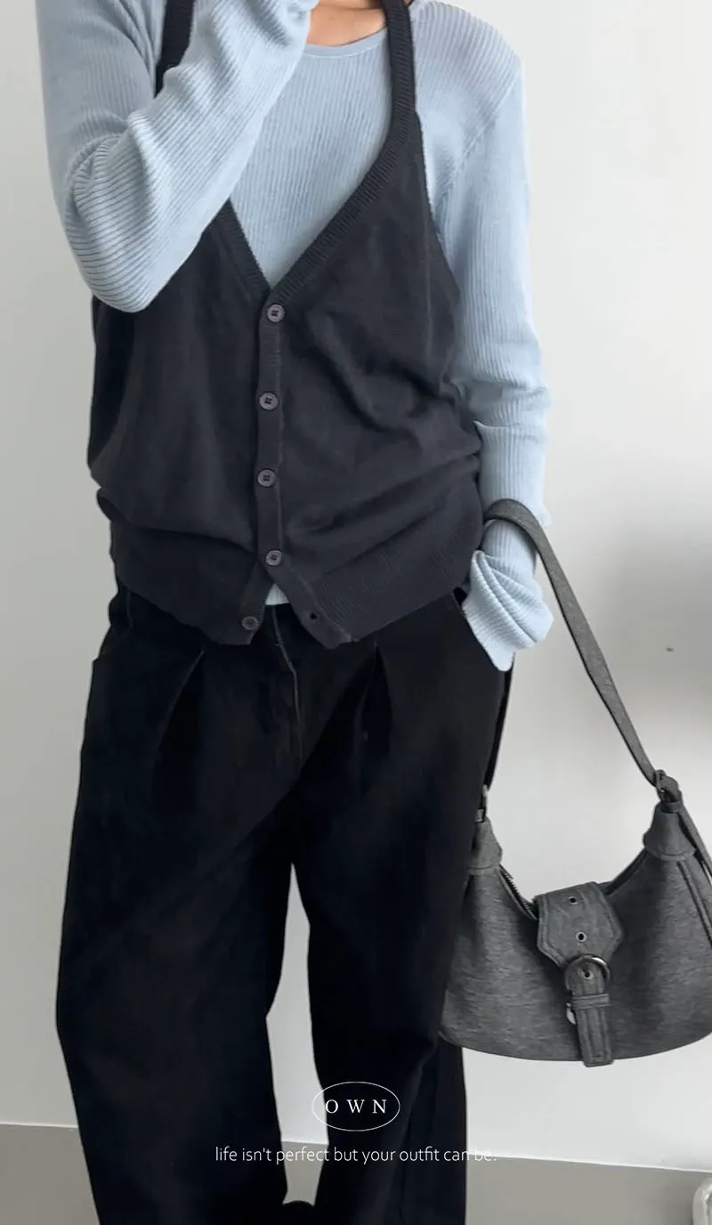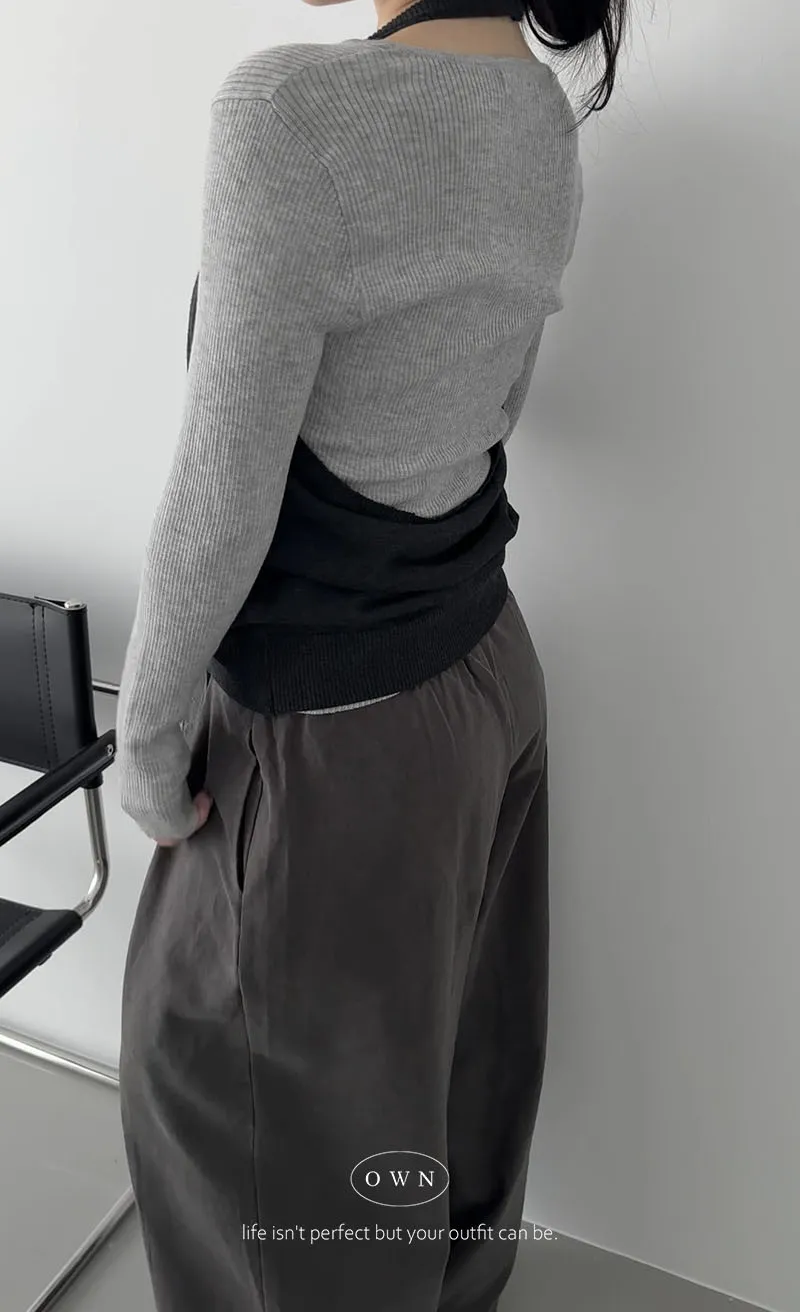 一生都愛這種慵懶感 兩件式針織長袖上衣+針織開釦繞脖背心 3colors