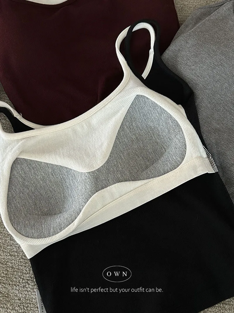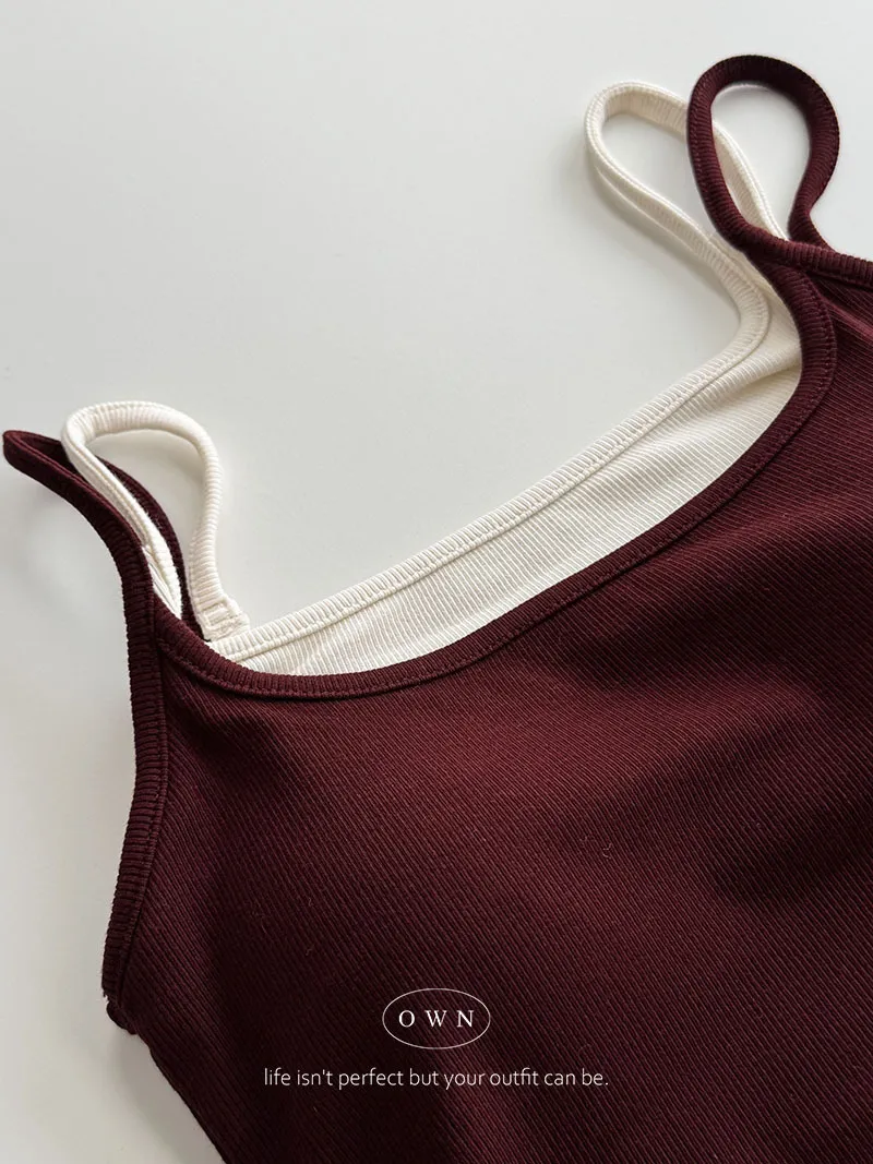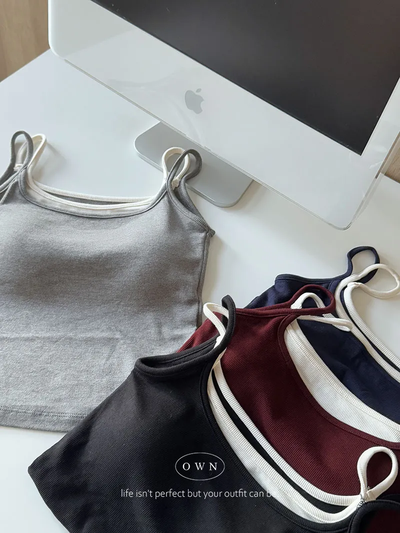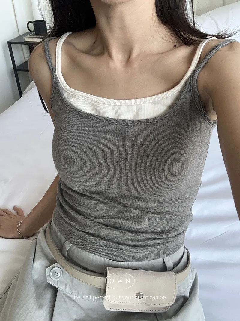 實穿主義 秋款假兩件細肩磨毛bra背心 4colors