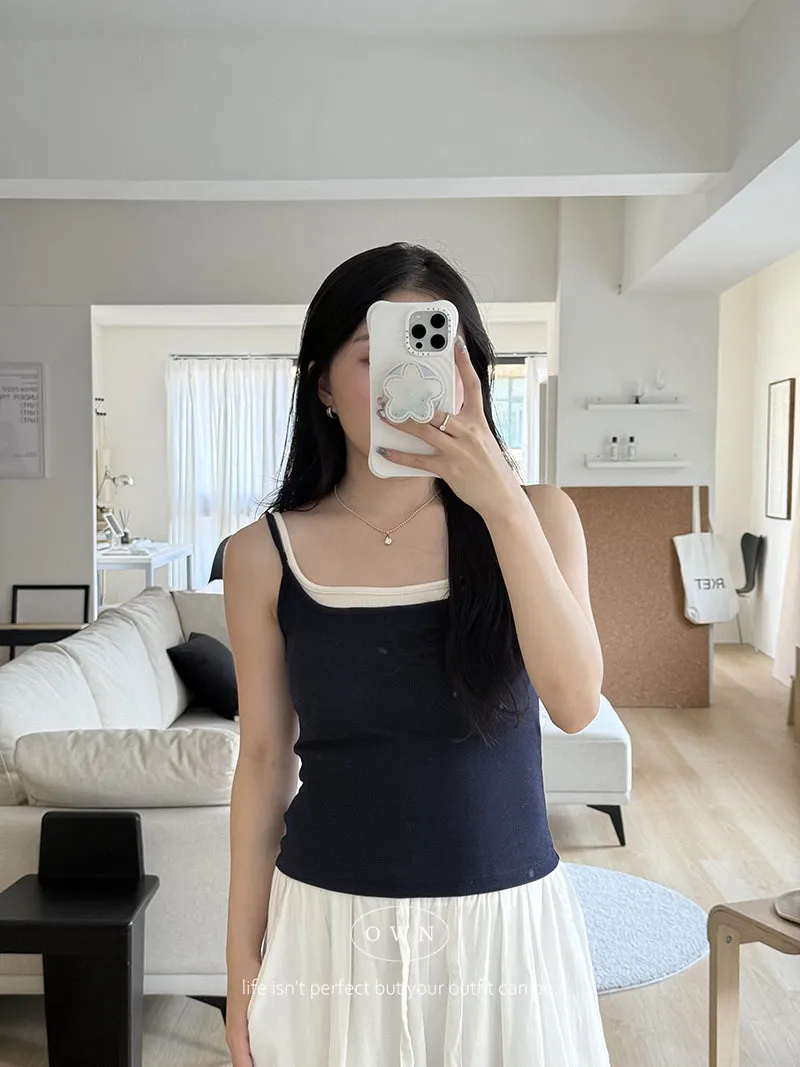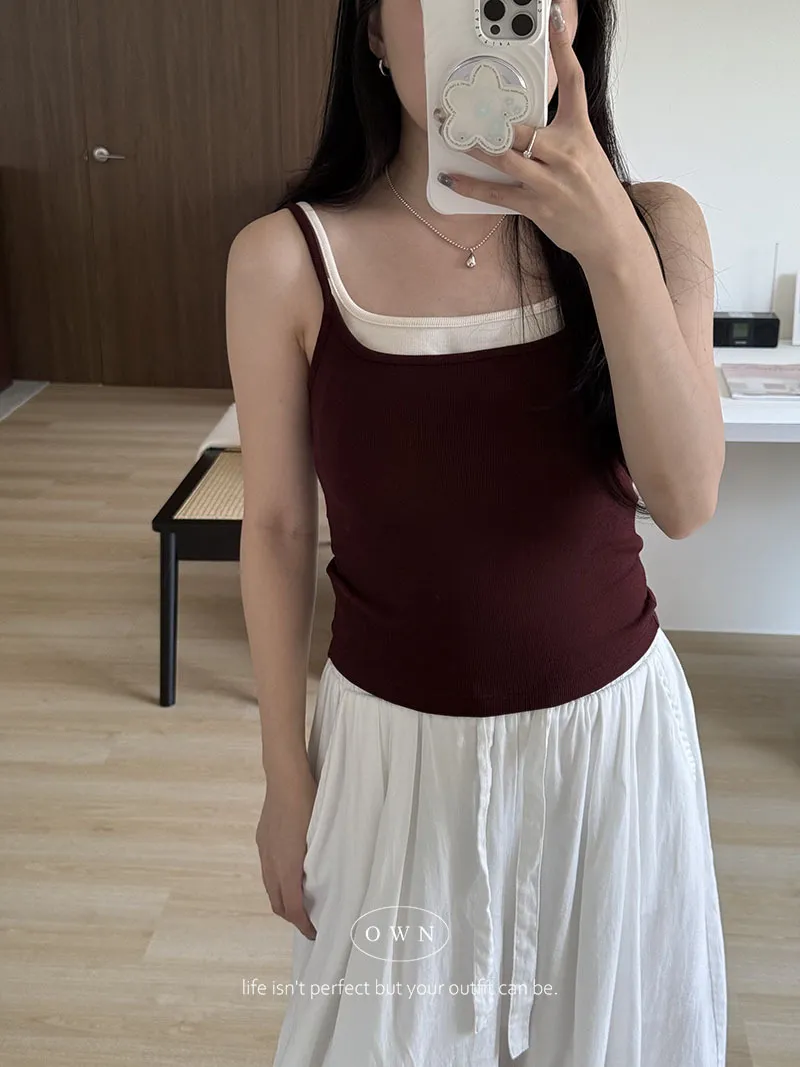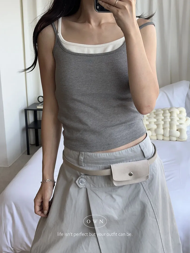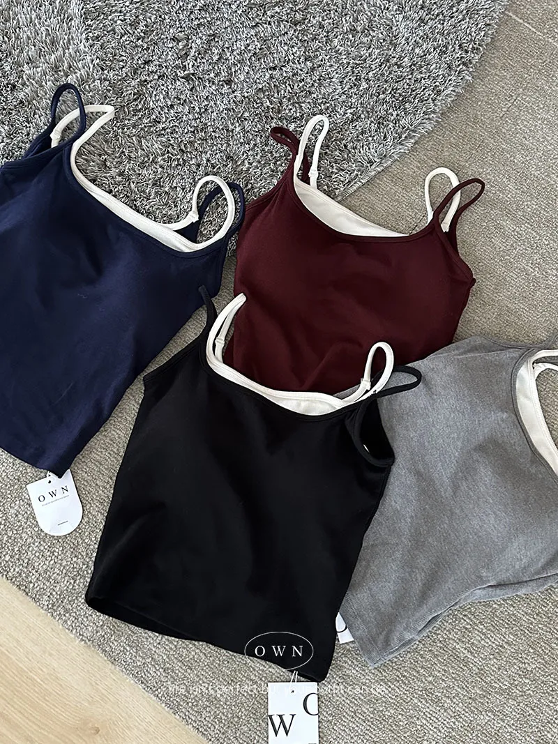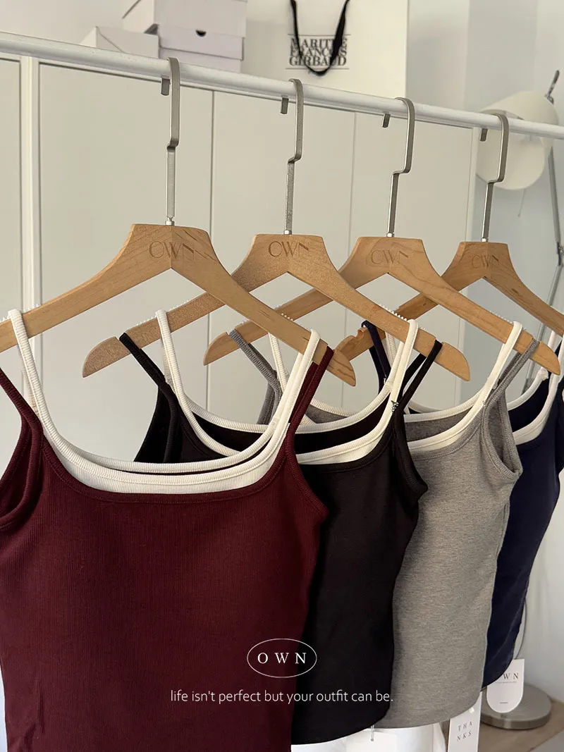 實穿主義 秋款假兩件細肩磨毛bra背心 4colors