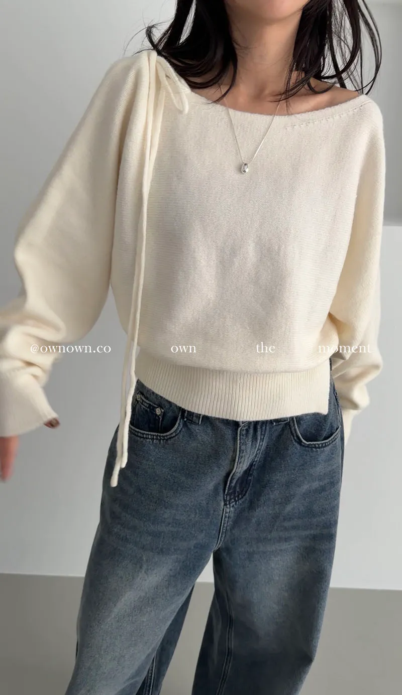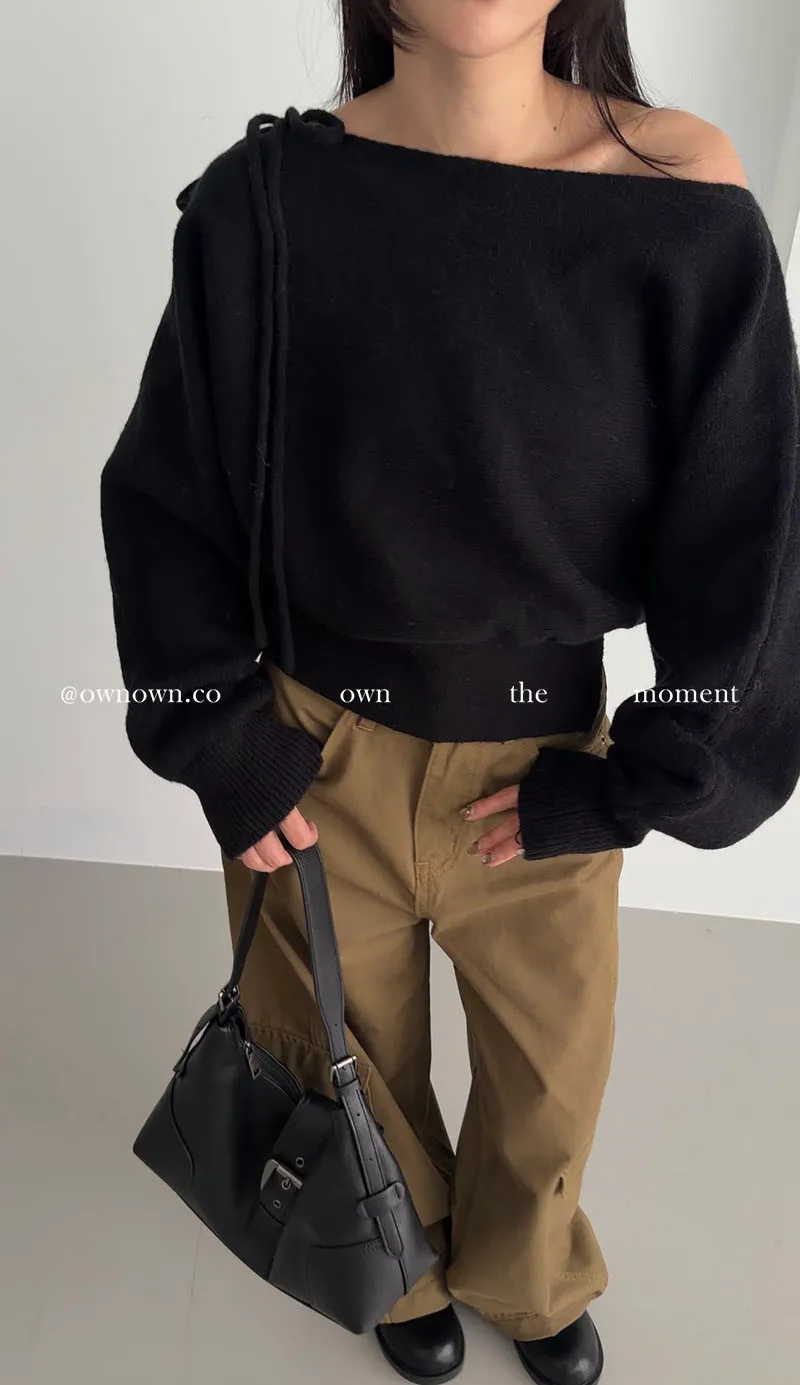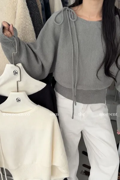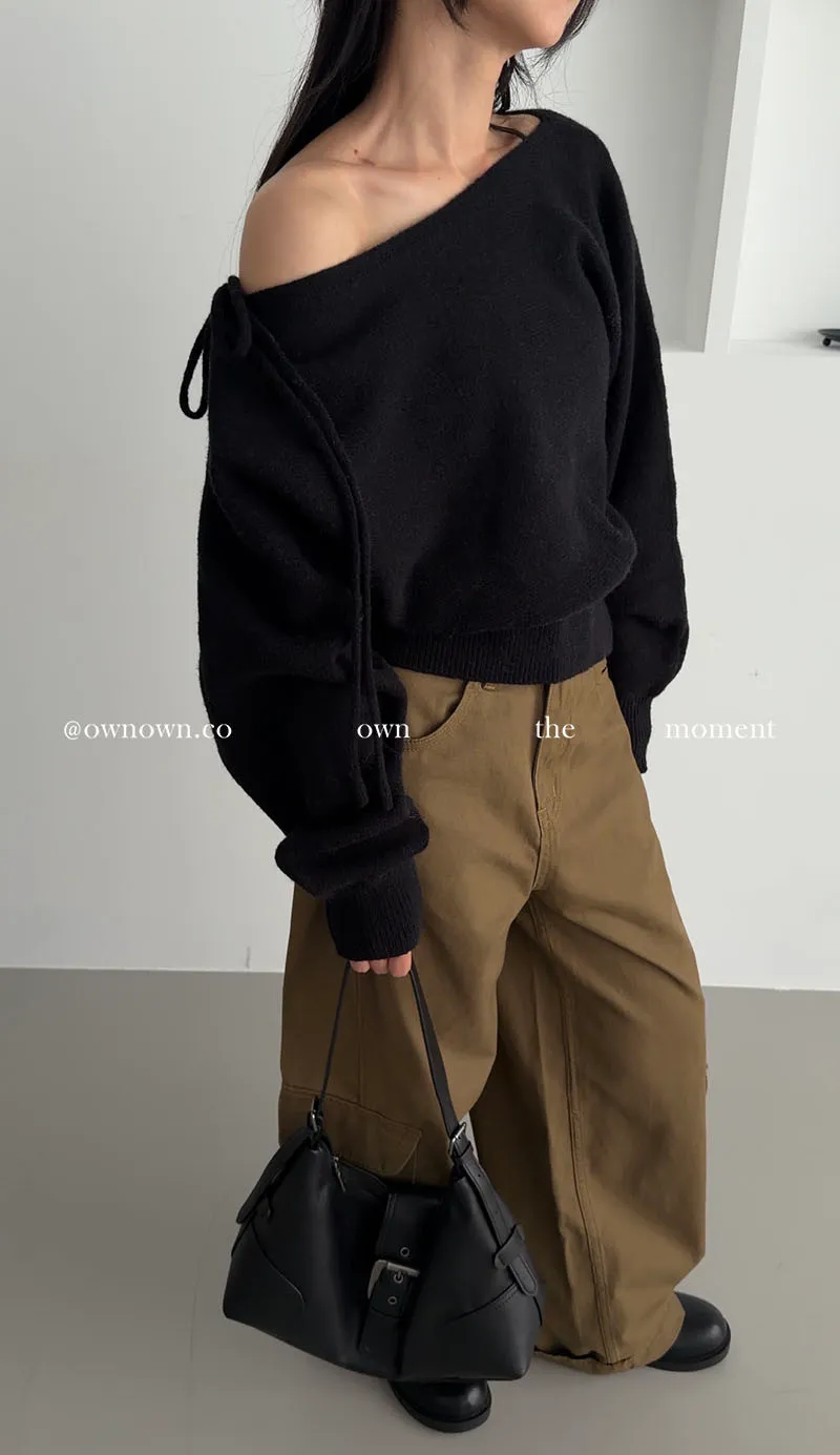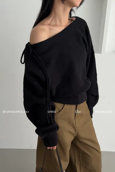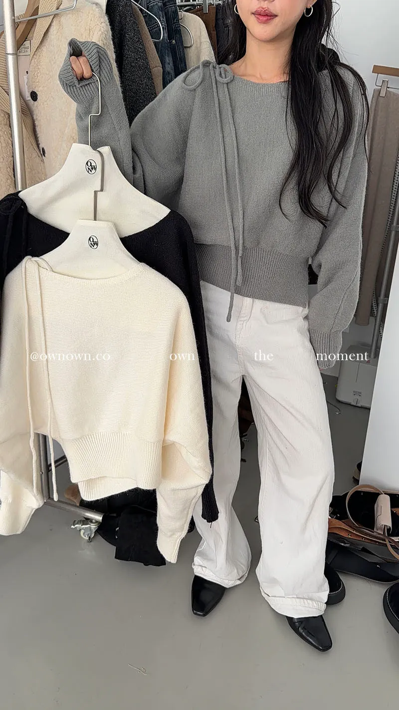 氣質拉滿 綁繩短版斜領毛衣 3colors