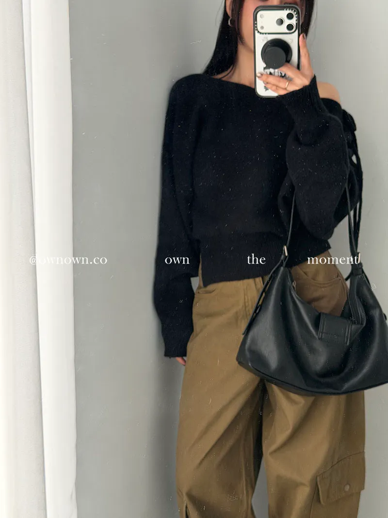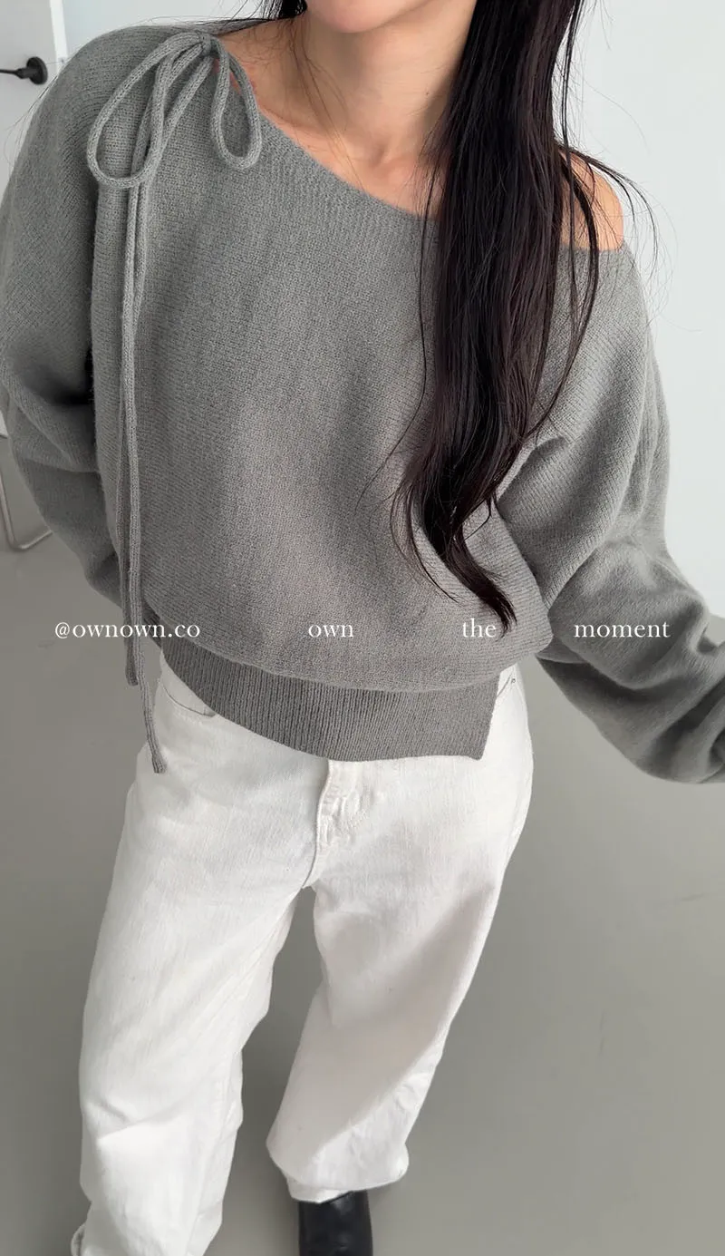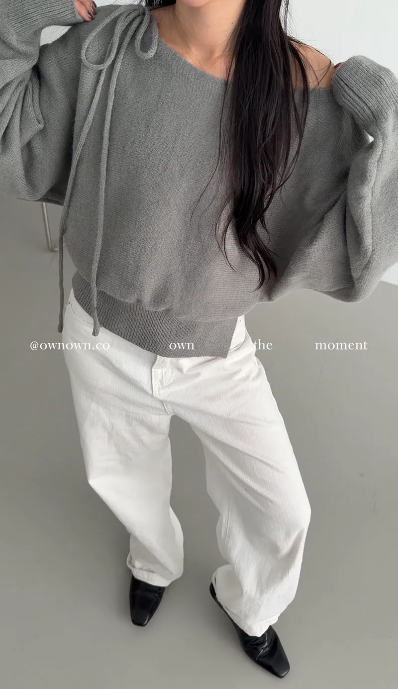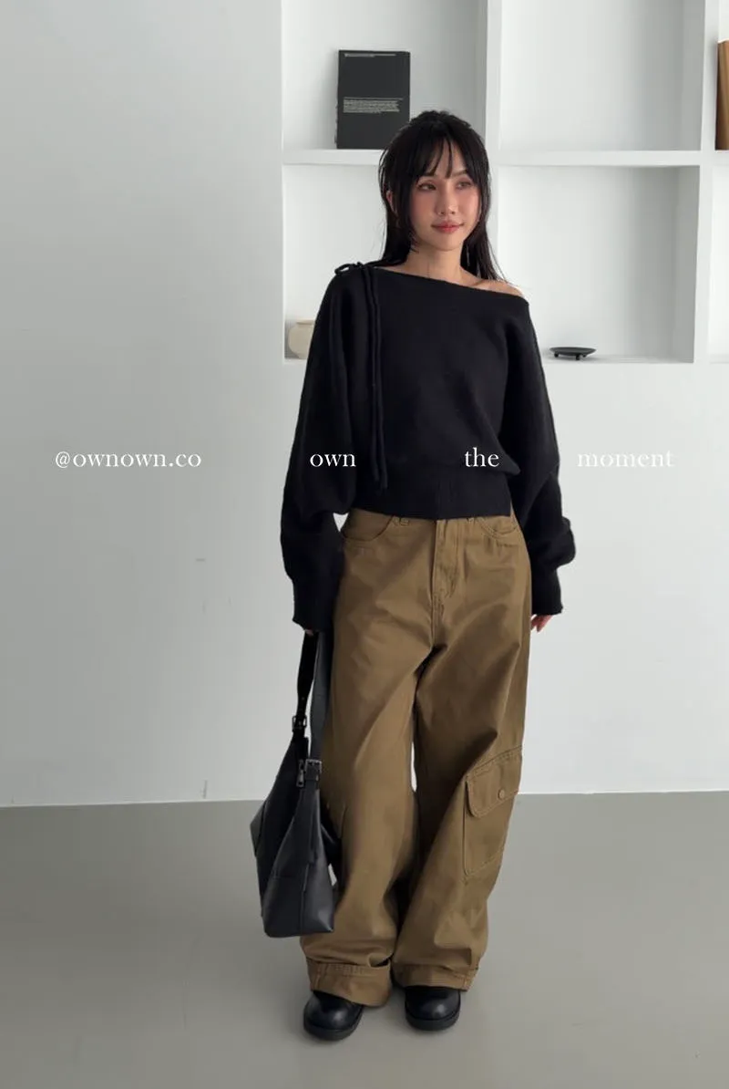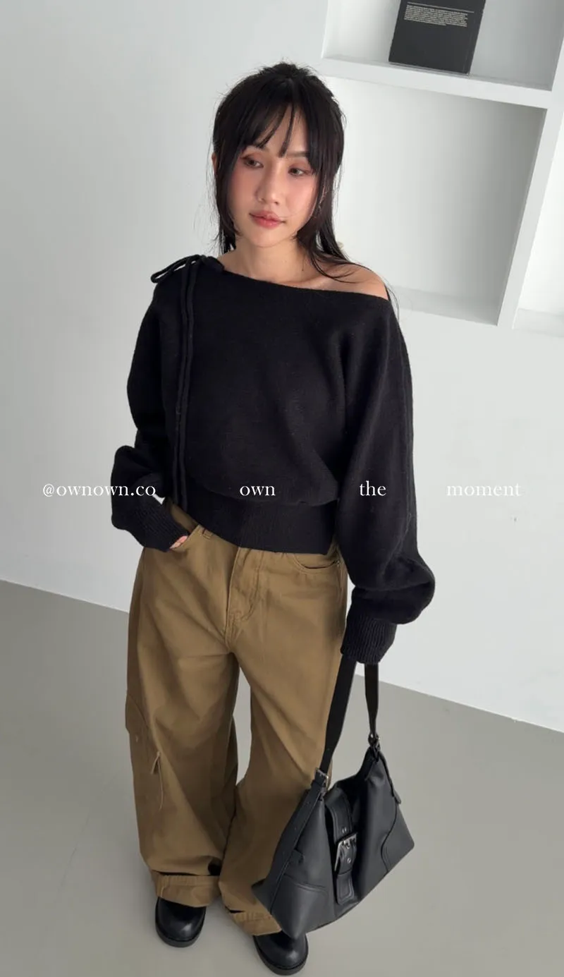 氣質拉滿 綁繩短版斜領毛衣 3colors