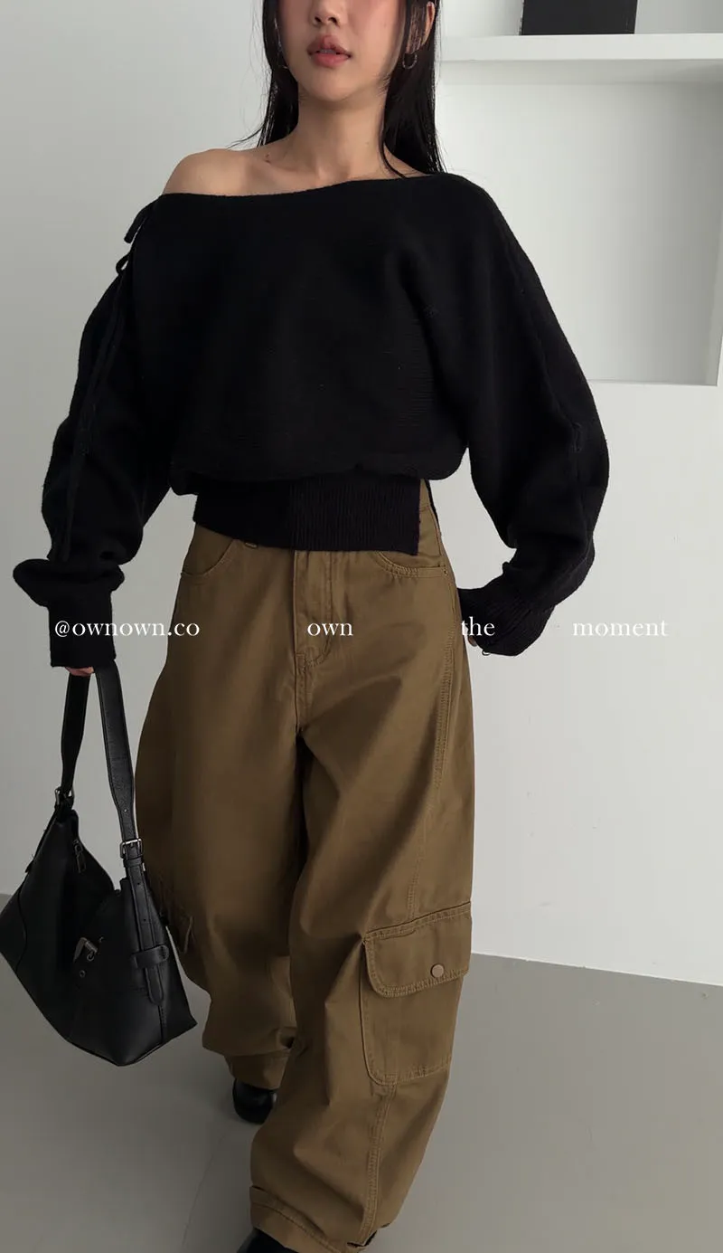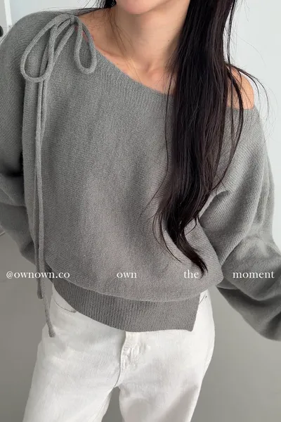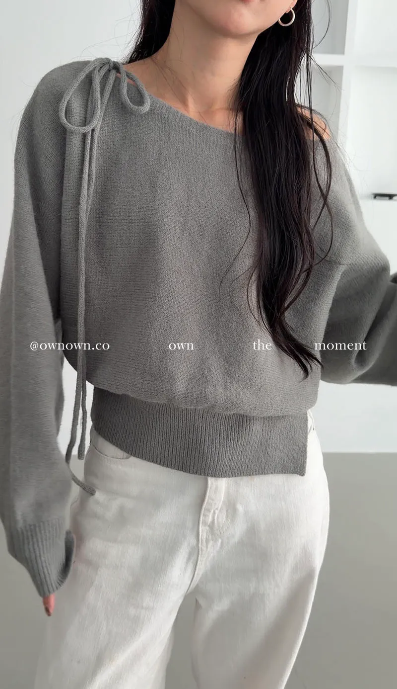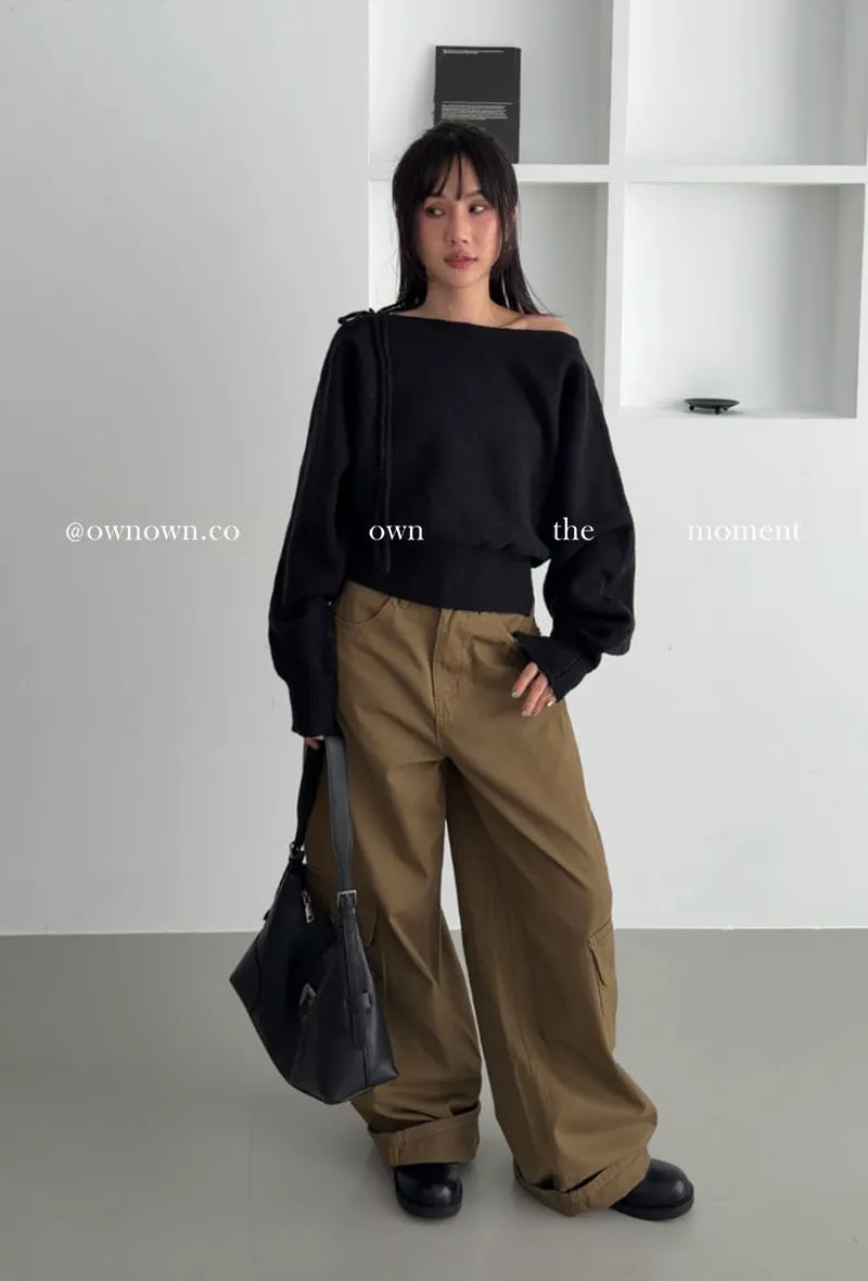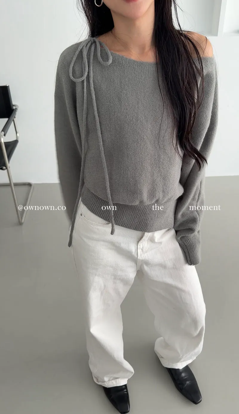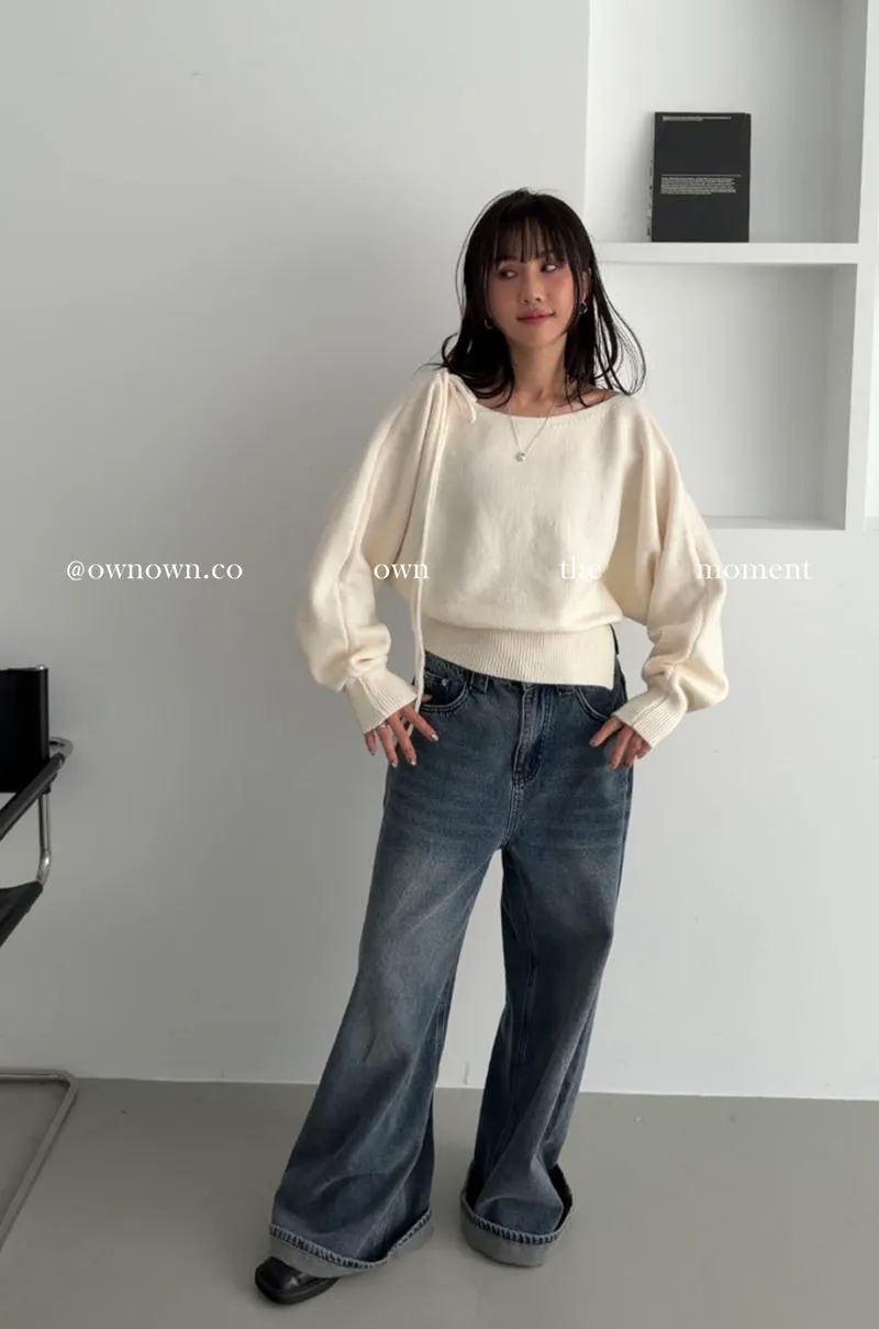 氣質拉滿 綁繩短版斜領毛衣 3colors