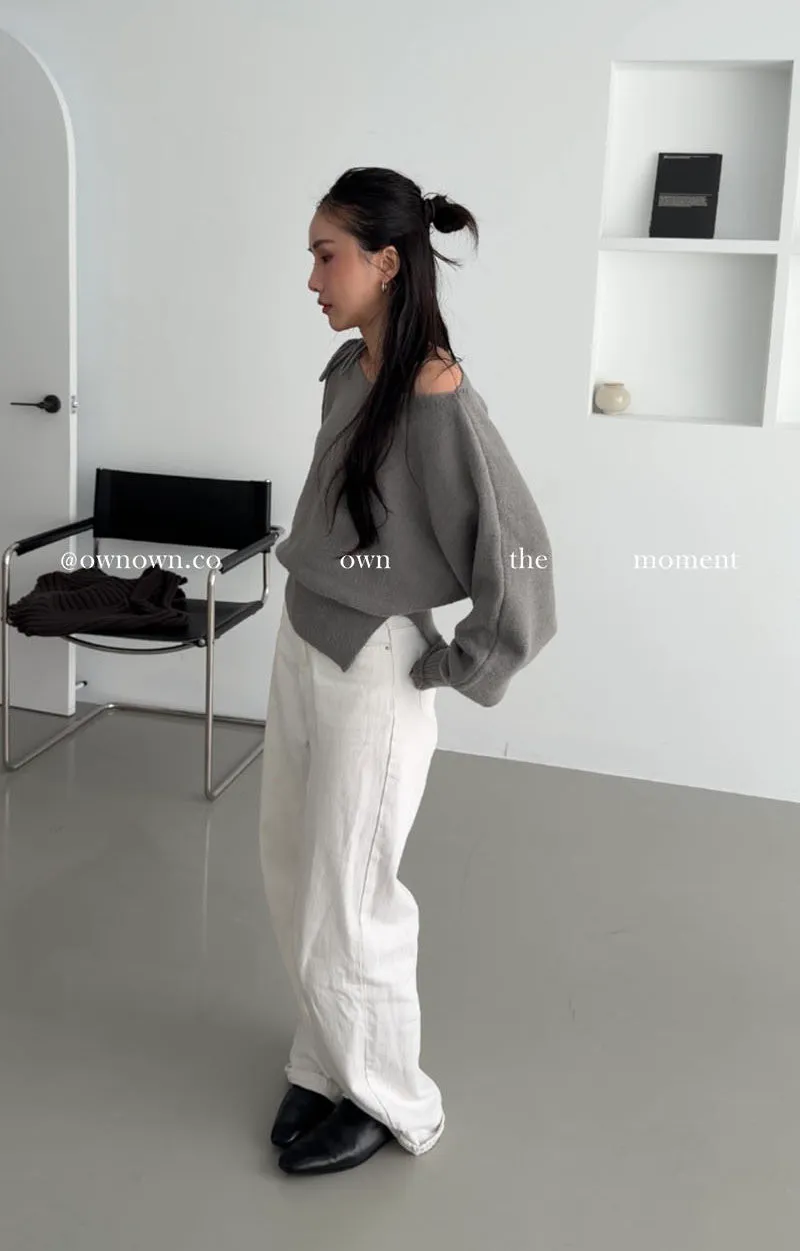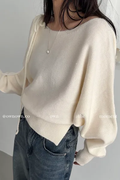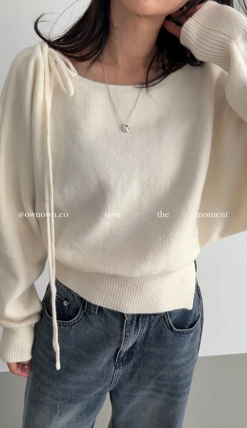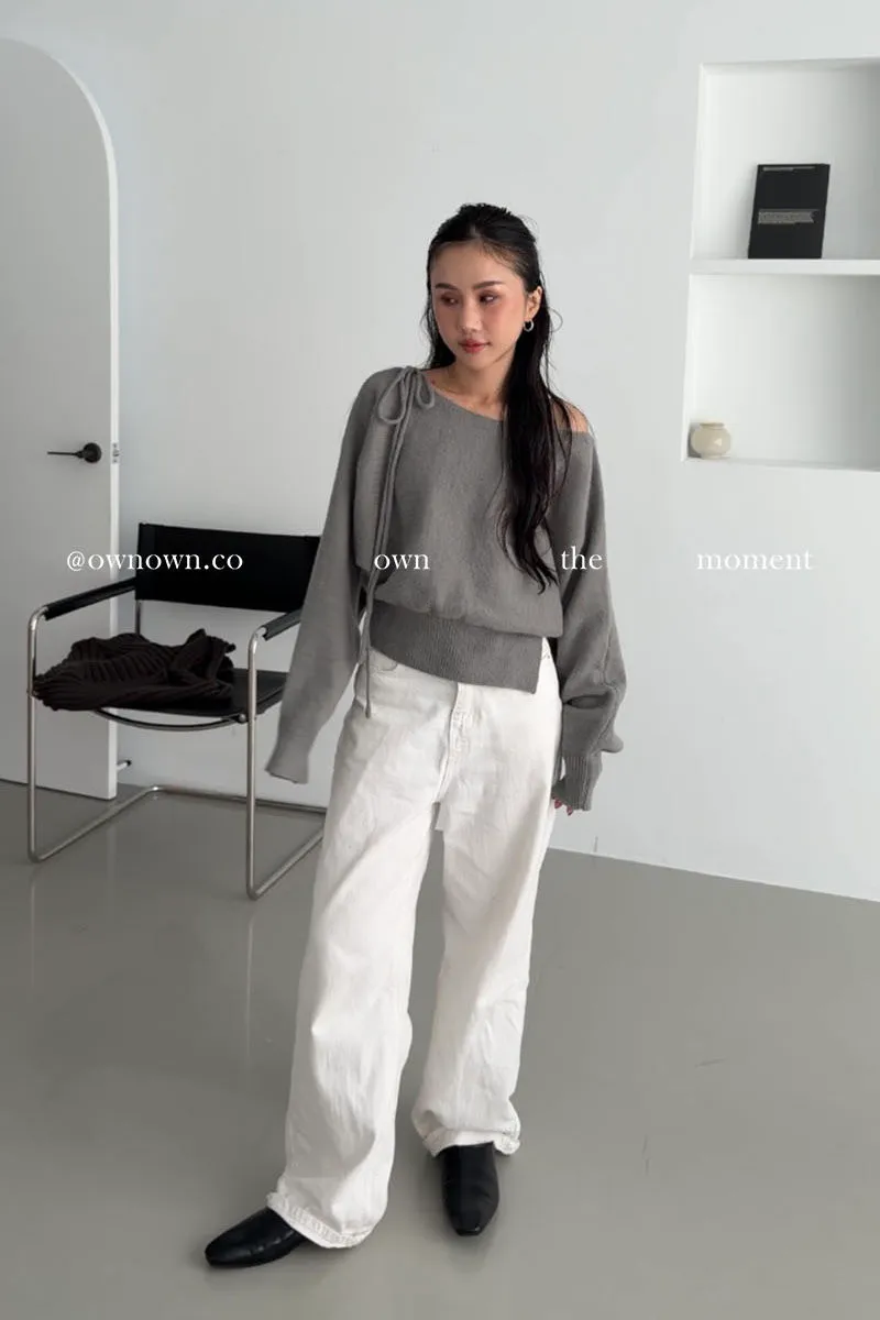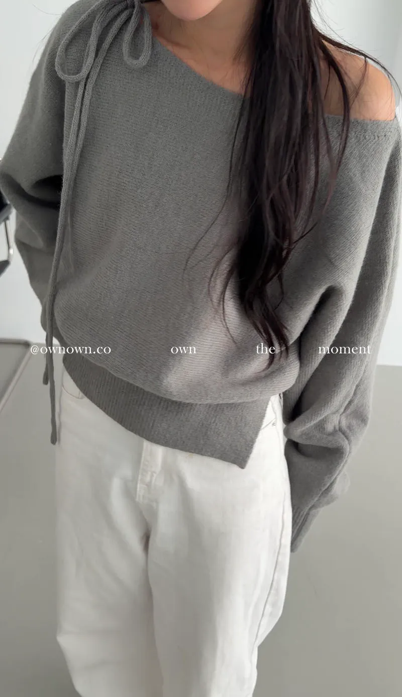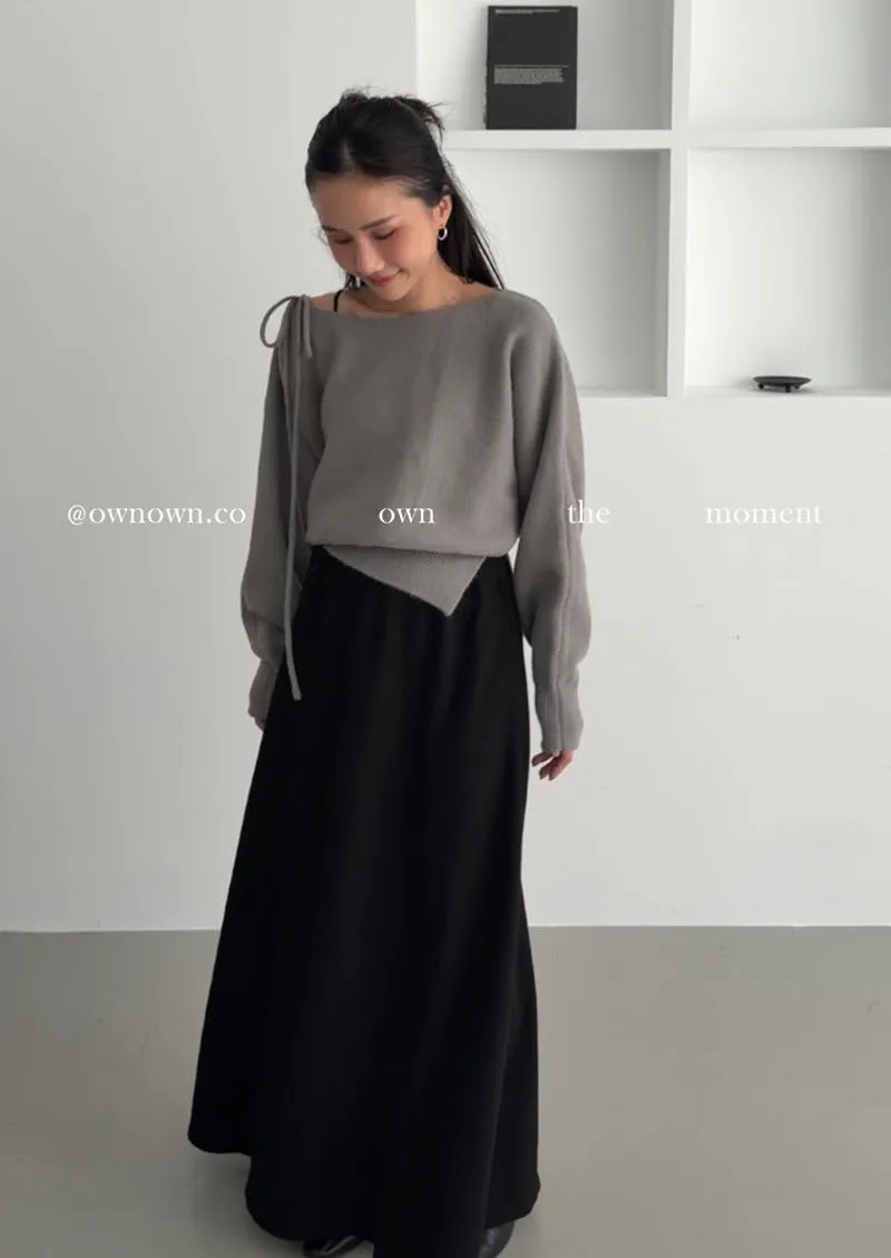 氣質拉滿 綁繩短版斜領毛衣 3colors