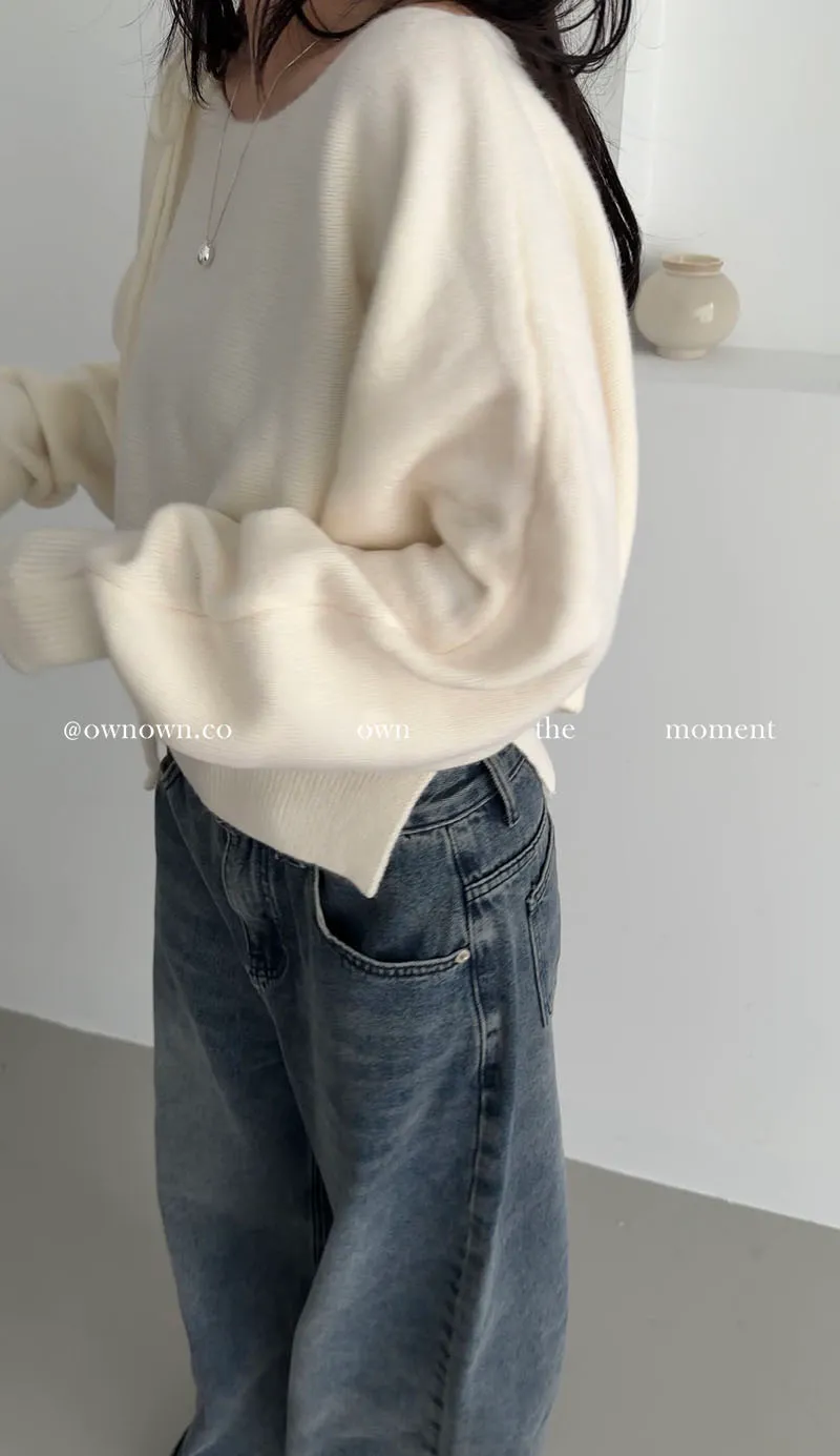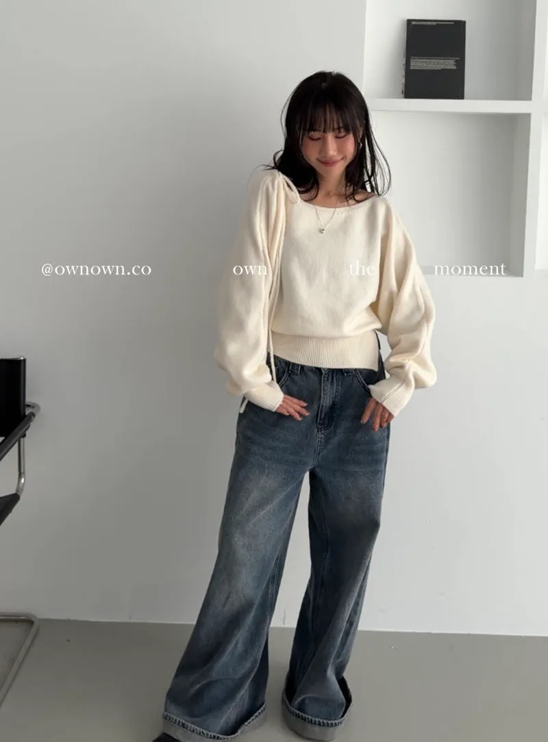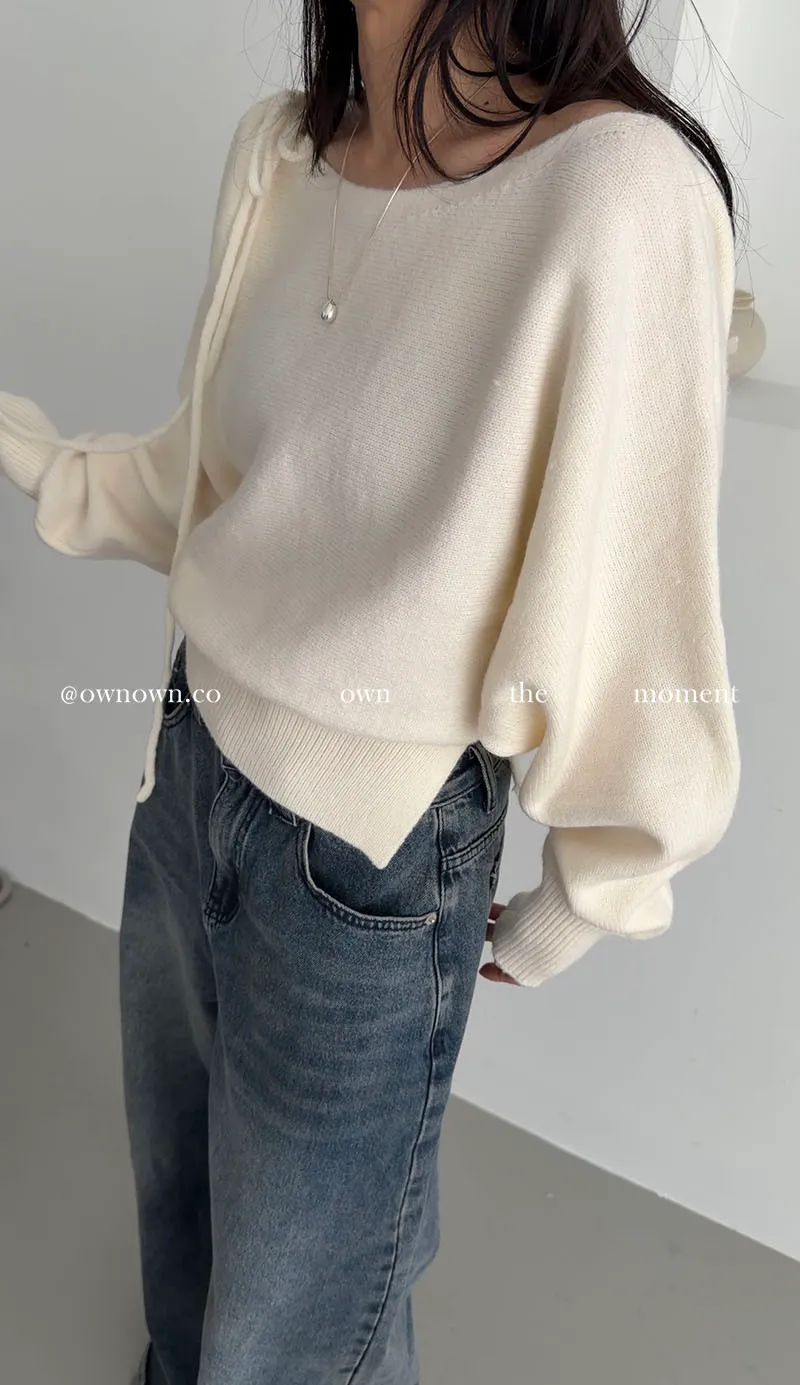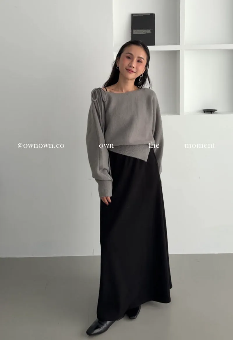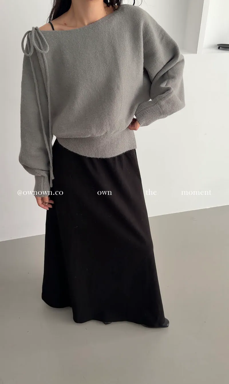 氣質拉滿 綁繩短版斜領毛衣 3colors