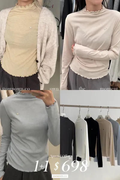 【OWN自訂款-組合優惠2件$698】日常輕柔 木耳邊立領打底衣 7colors