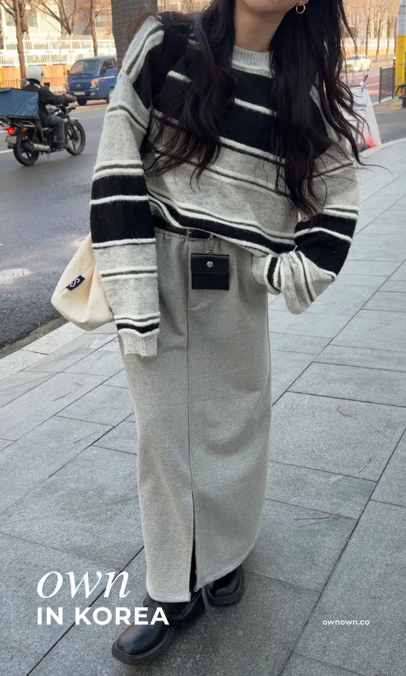 【正韓連線】隨性恣意 鬆緊前開衩棉裙