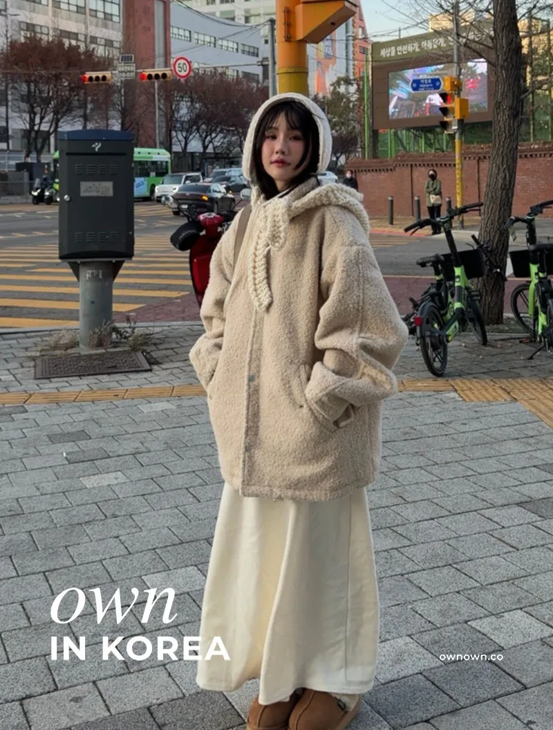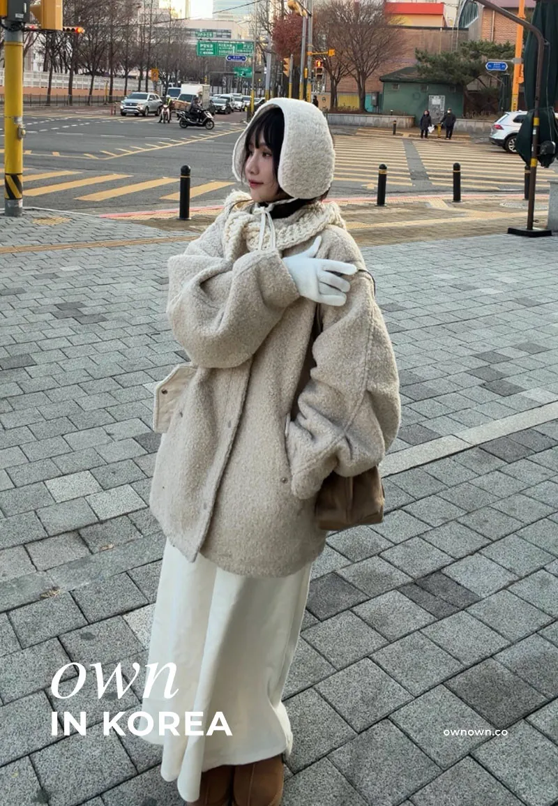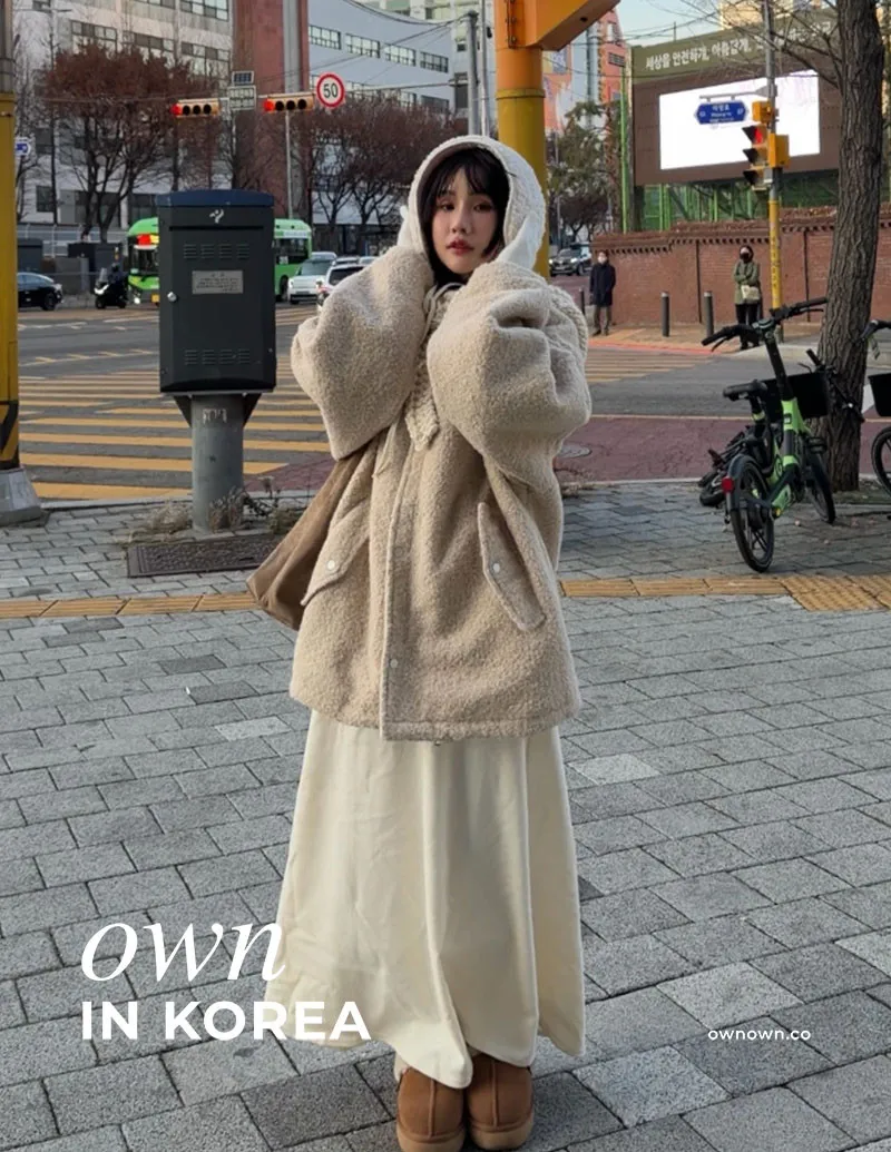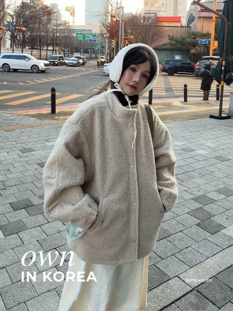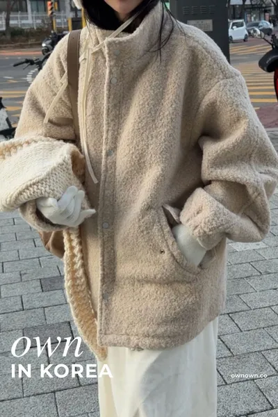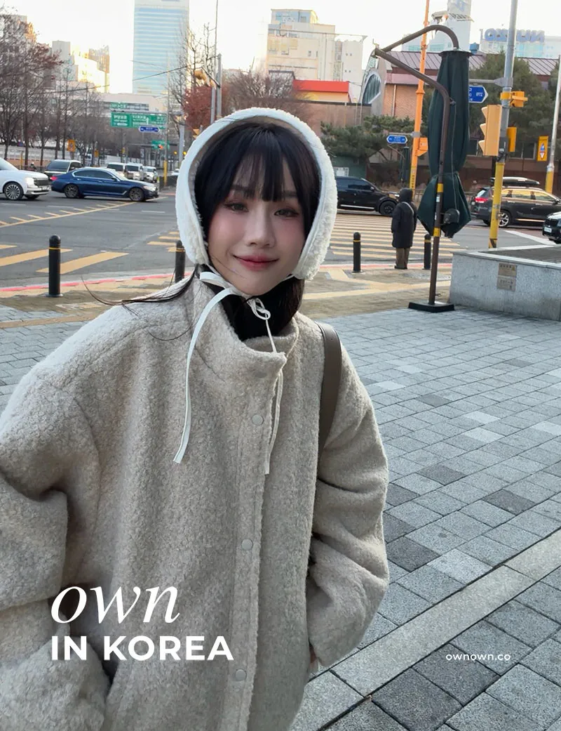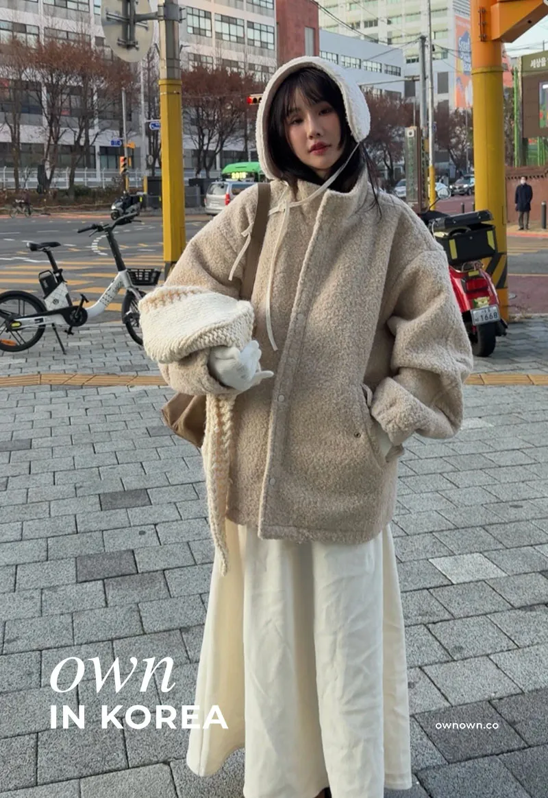 【正韓連線】奶呼呼QQ毛雙拉鏈落肩大衣