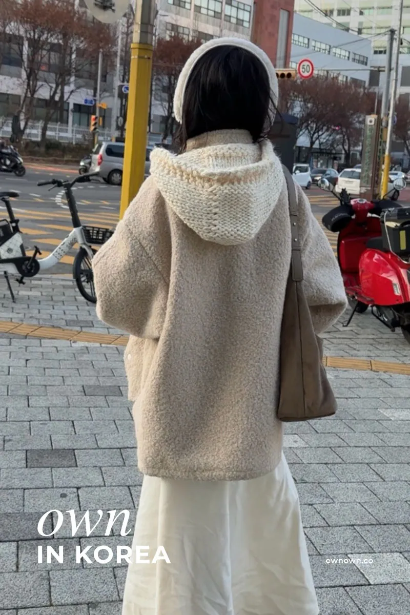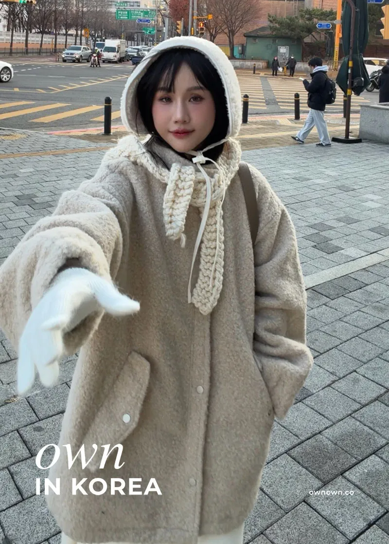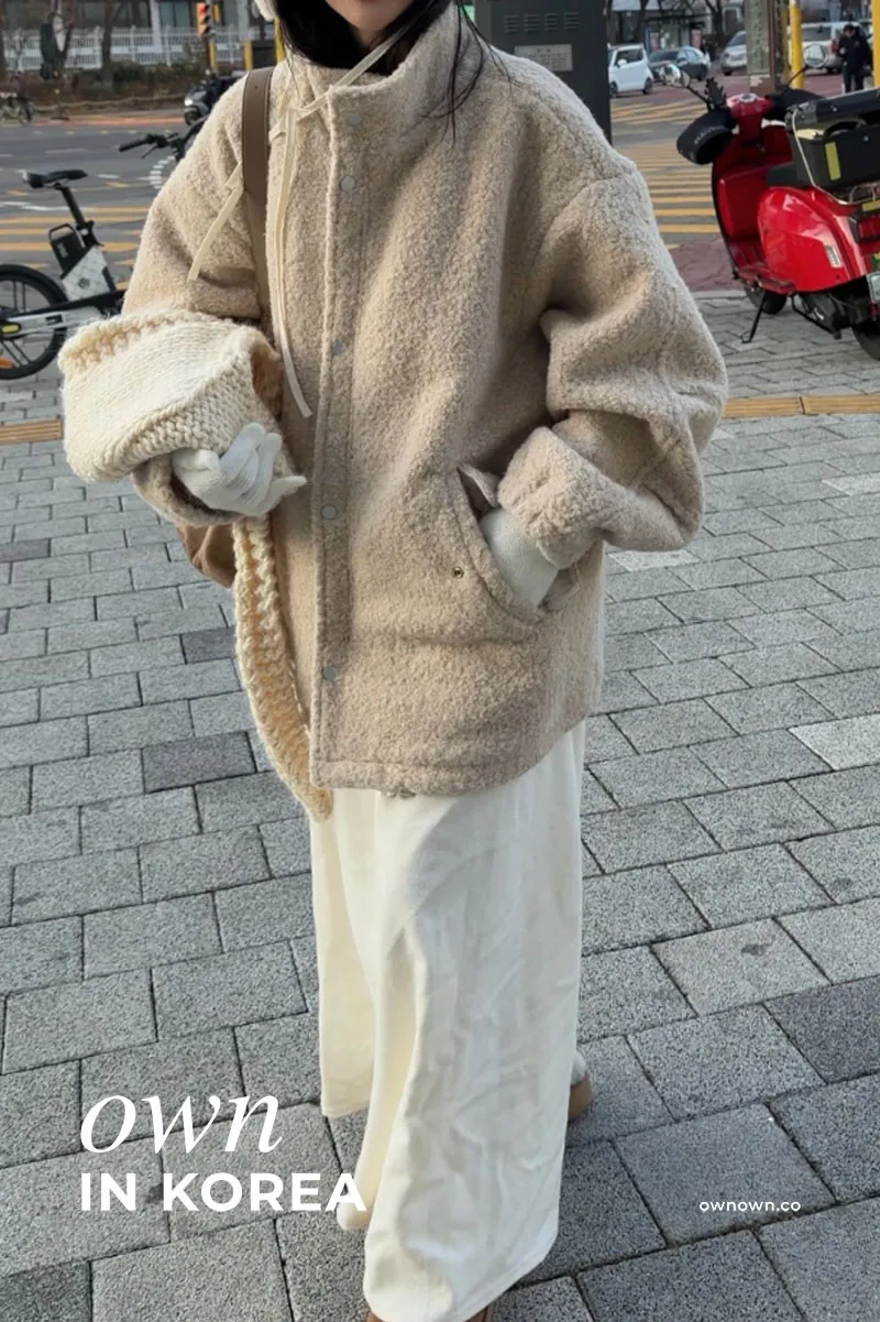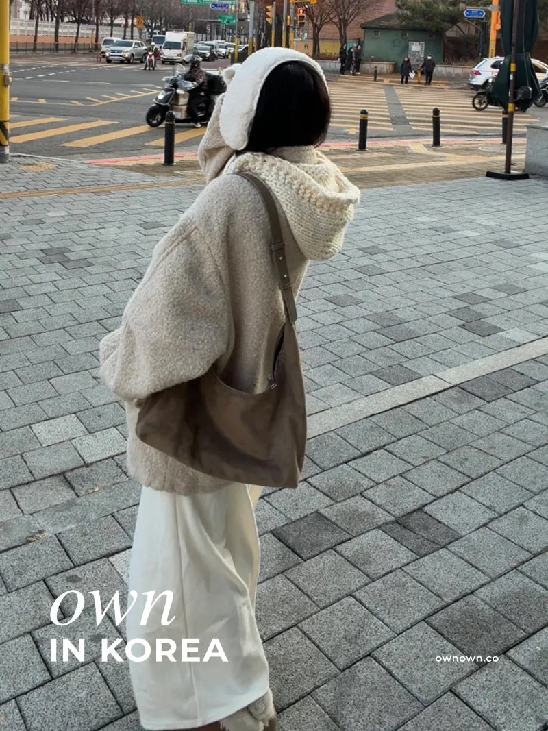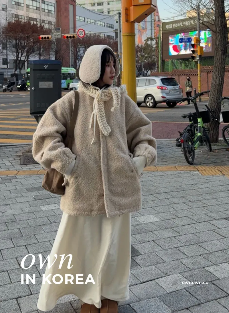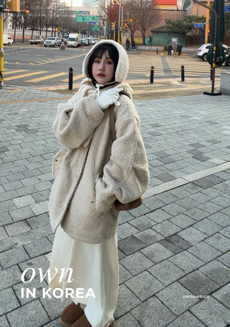 【正韓連線】奶呼呼QQ毛雙拉鏈落肩大衣