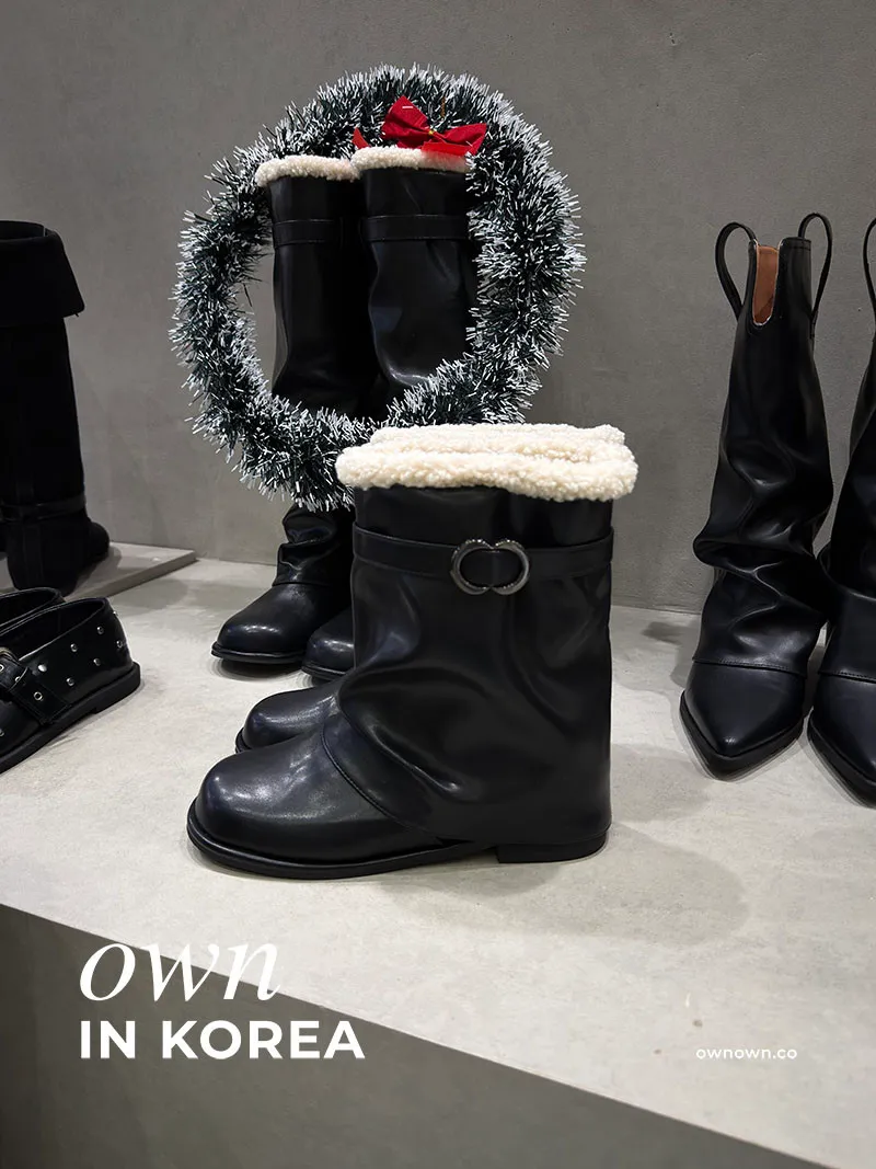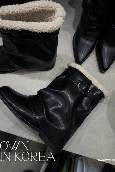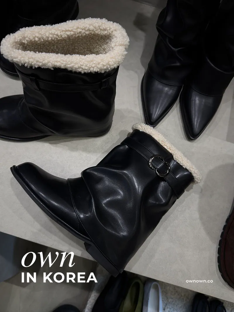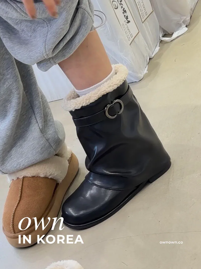 【正韓連線-單雙免運】讓你暖到腳尖 皮帶釦加絨褲管短靴 36-40