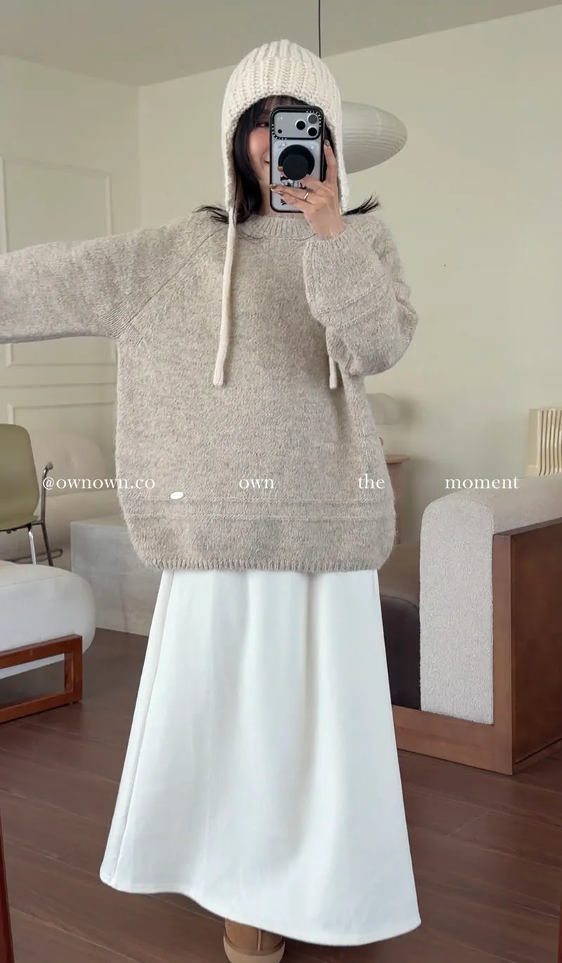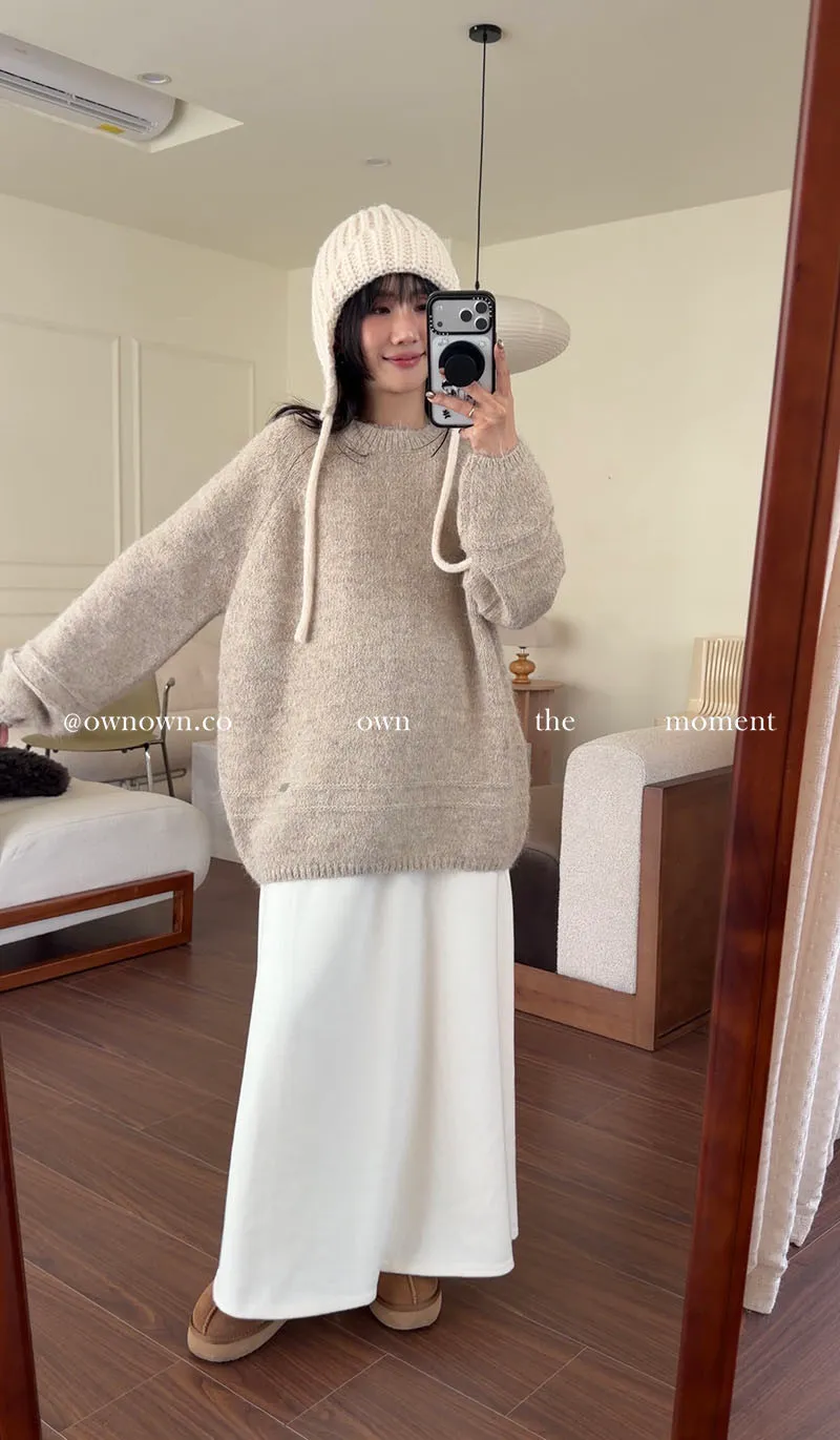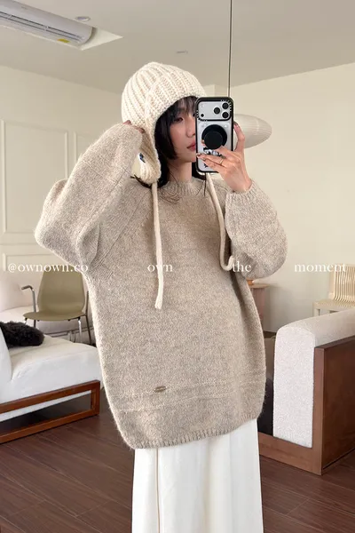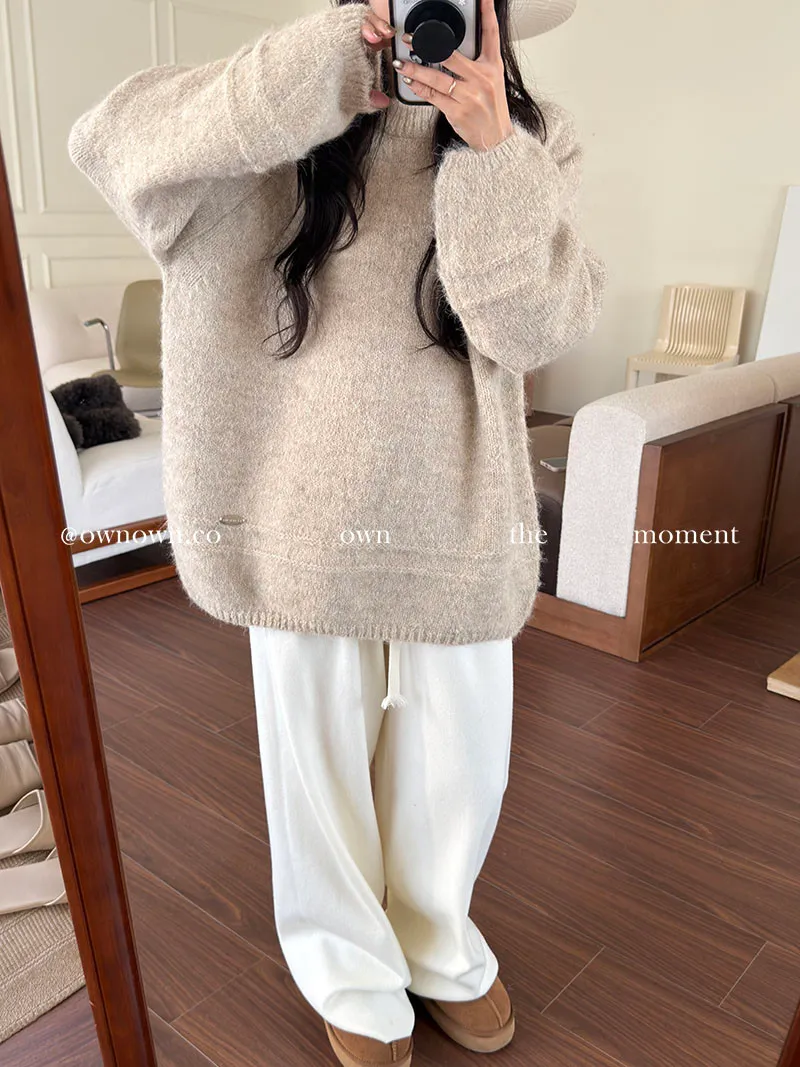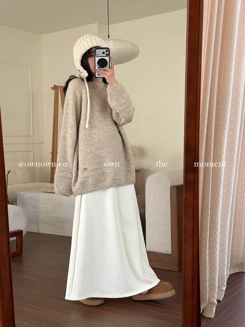 溫柔慵懶感 混羊毛長版毛衣 2colors