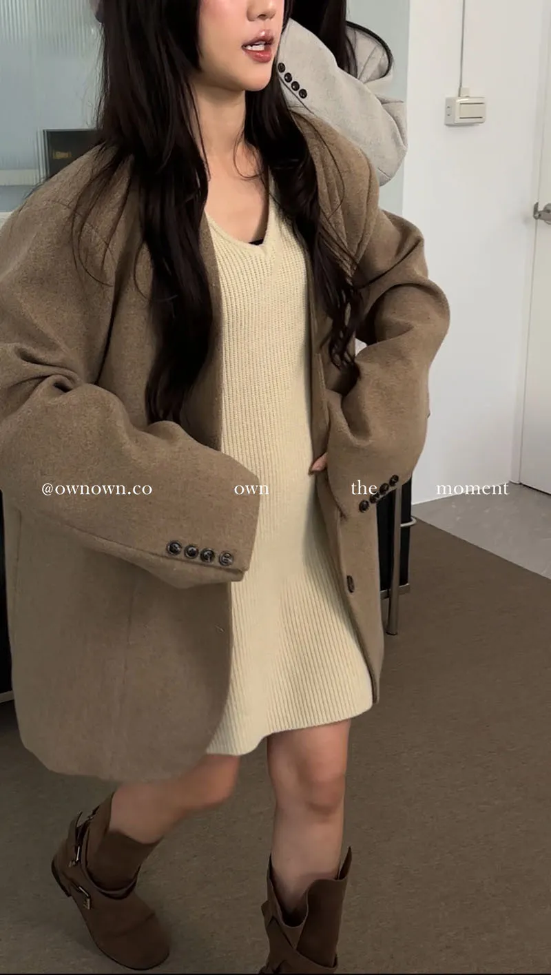 單穿就氣質逼人 V領直坑紋短洋 3colors
