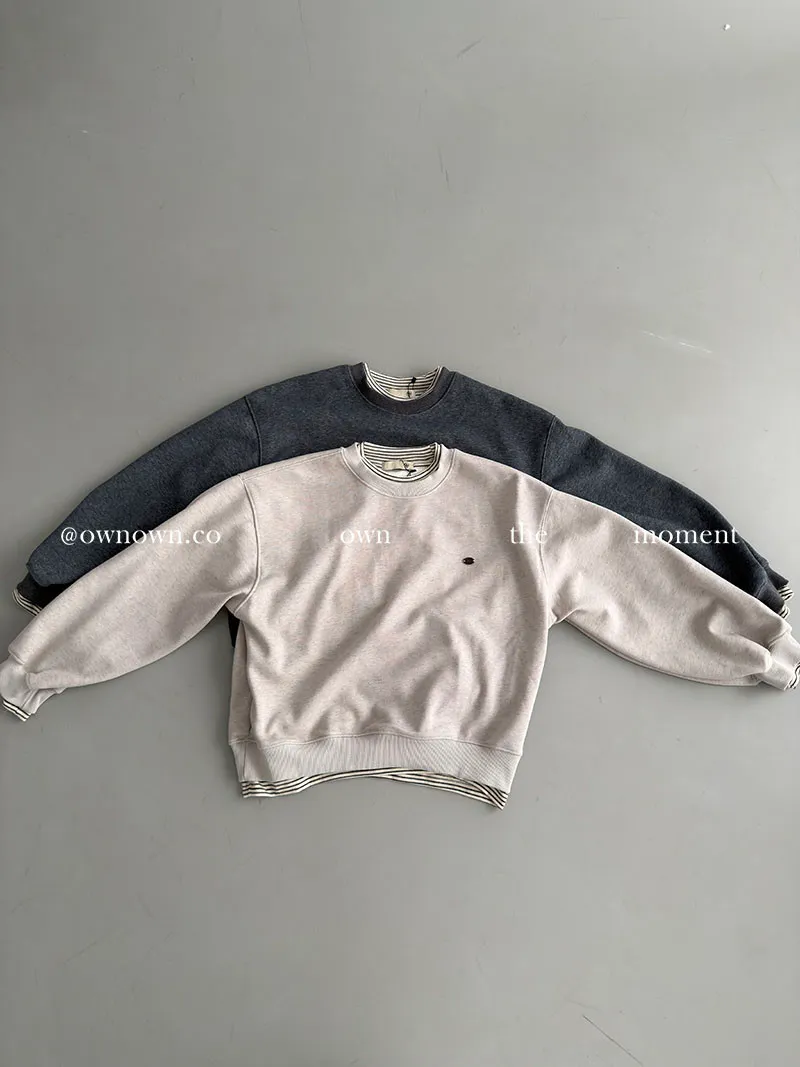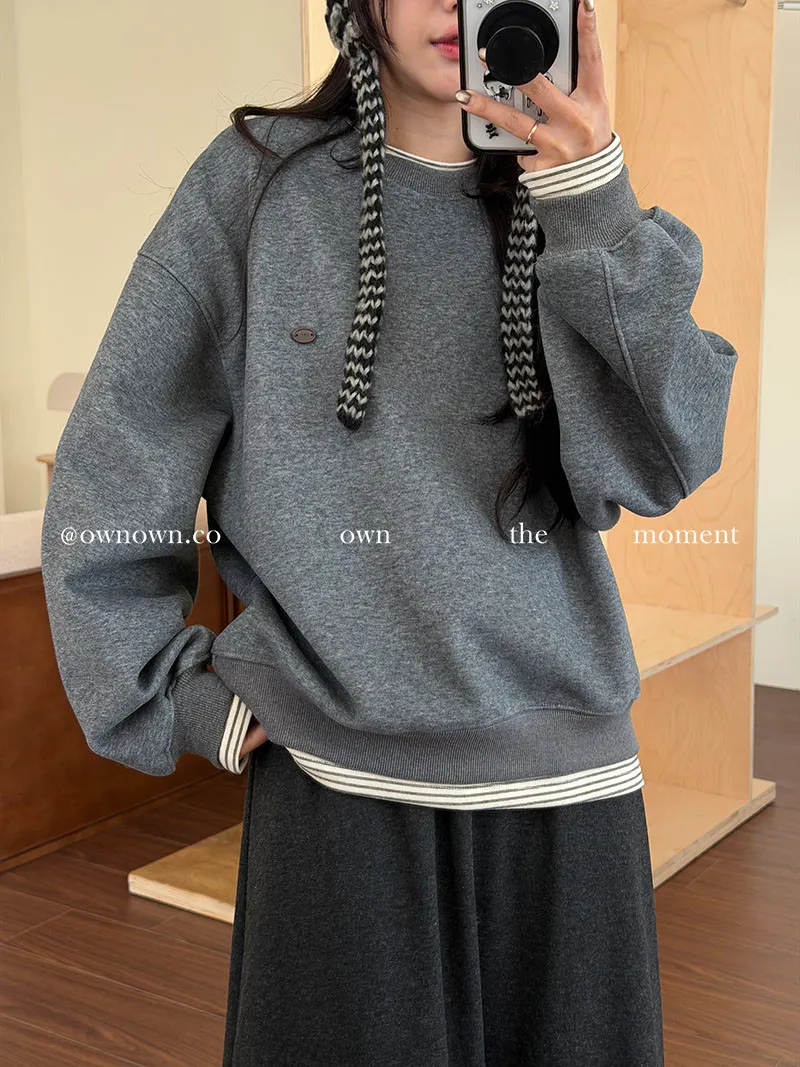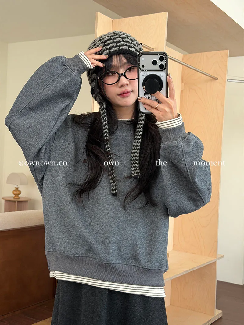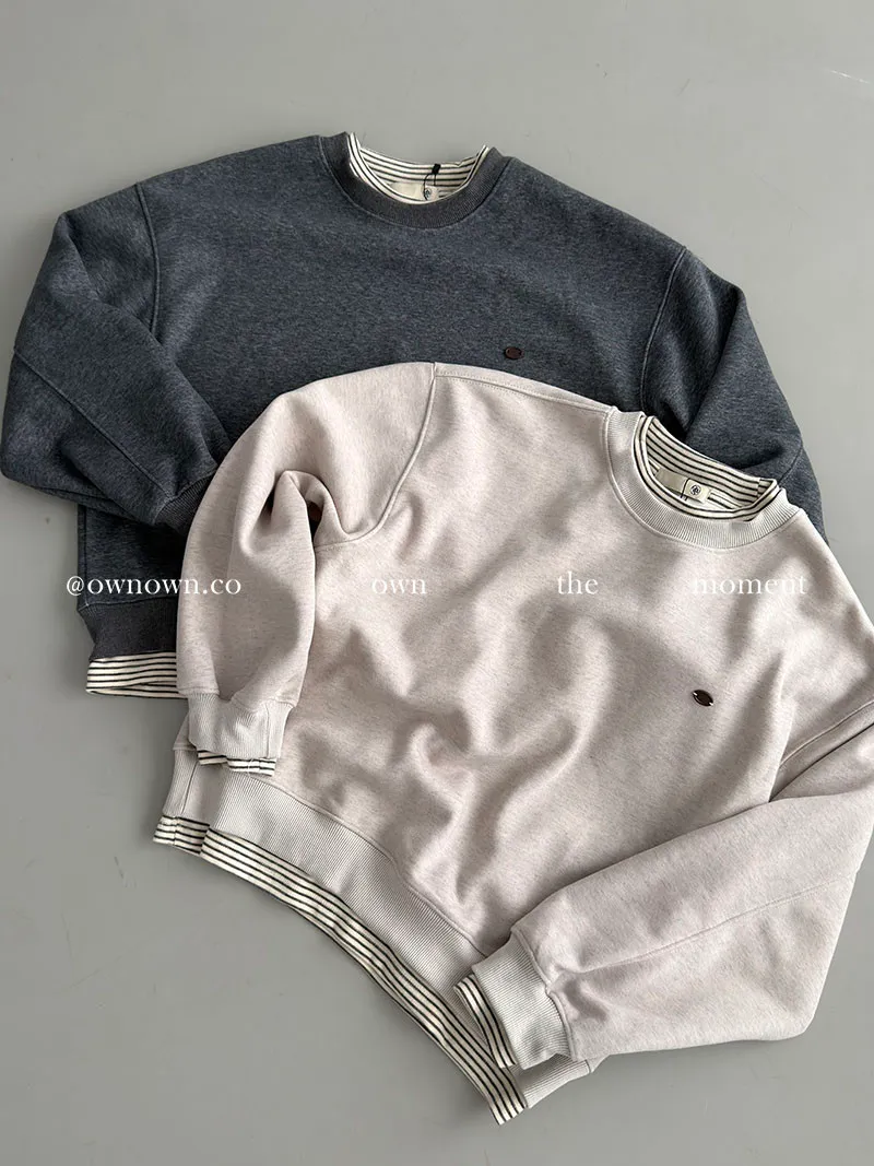 【OWN自訂款】低調卻很耐看 假兩件內條紋加絨衛衣 2colors