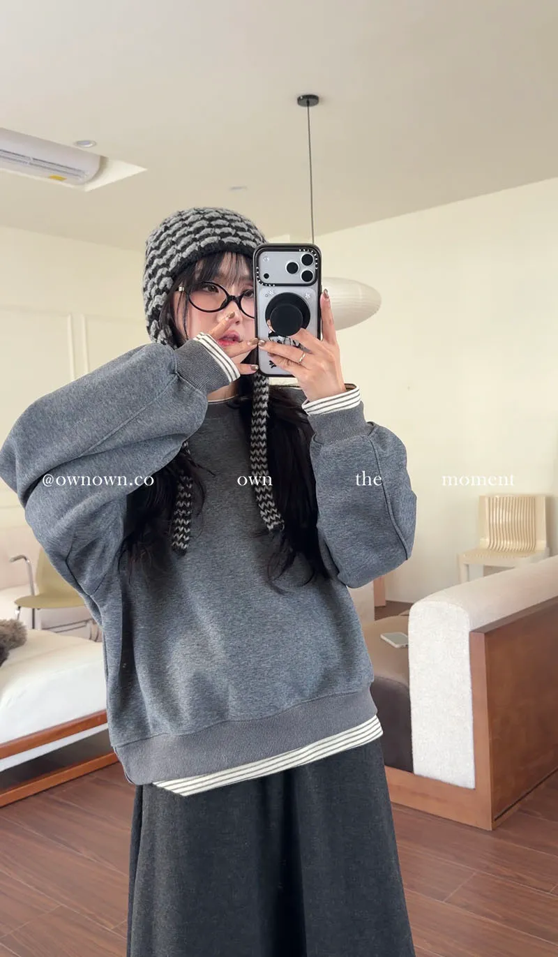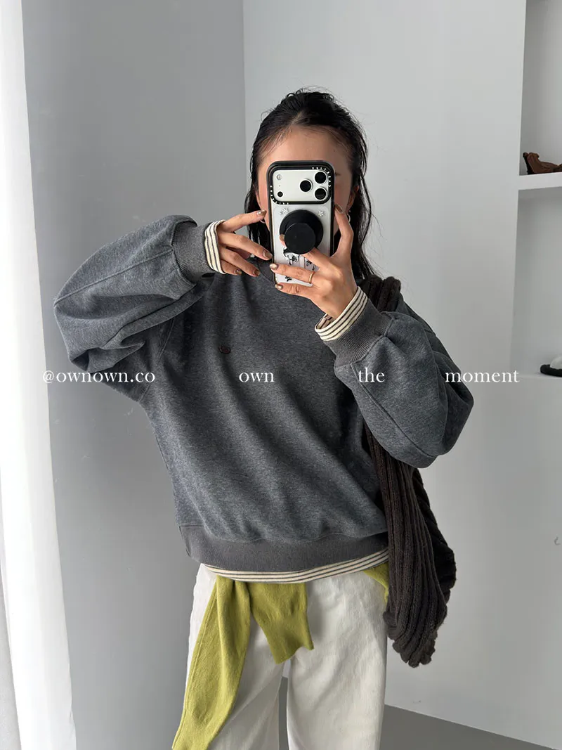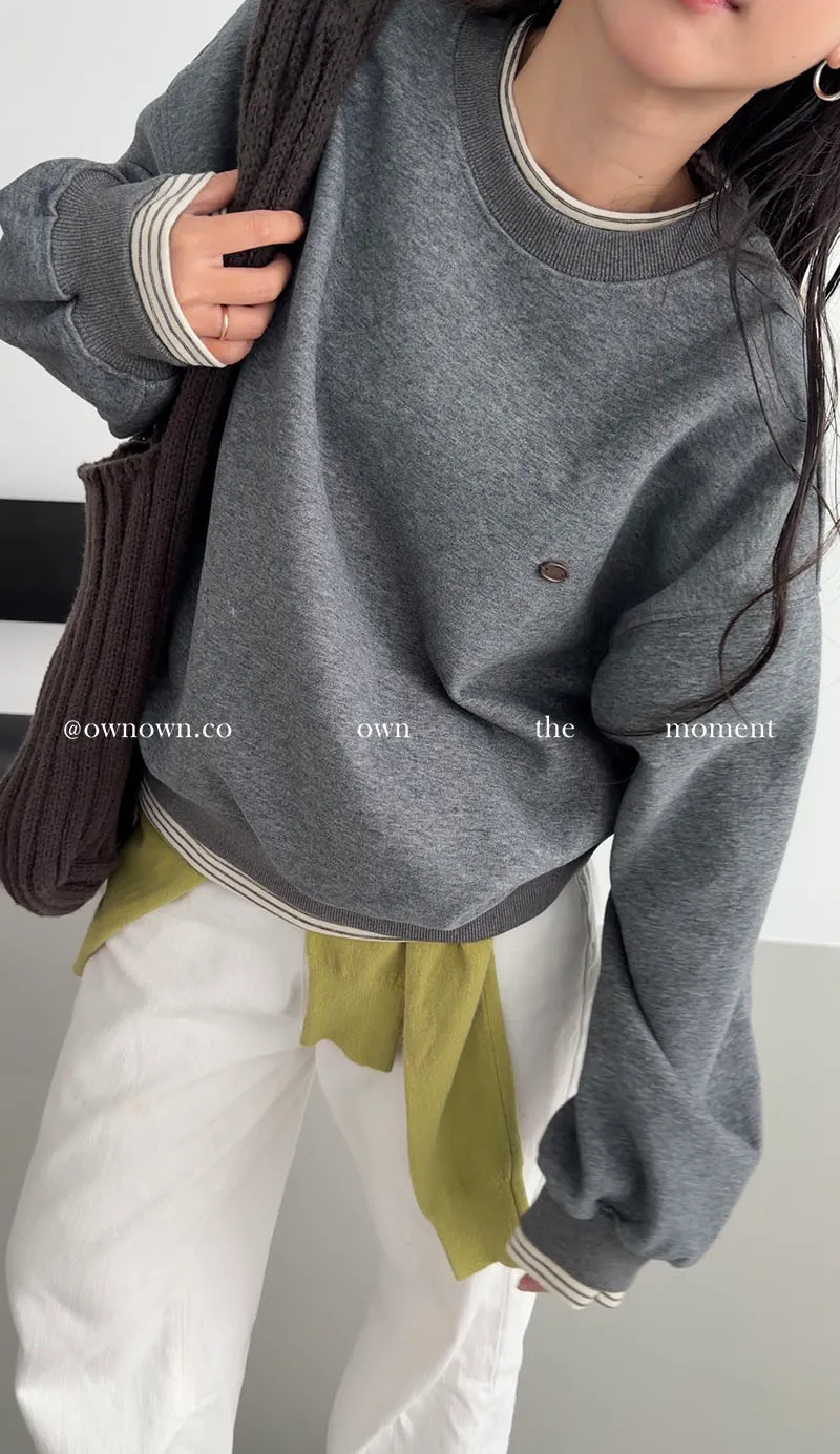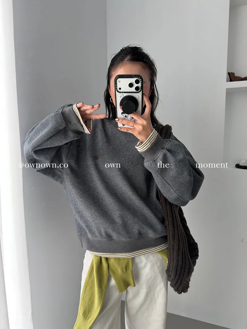 【OWN自訂款】低調卻很耐看 假兩件內條紋加絨衛衣 2colors
