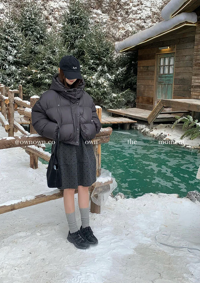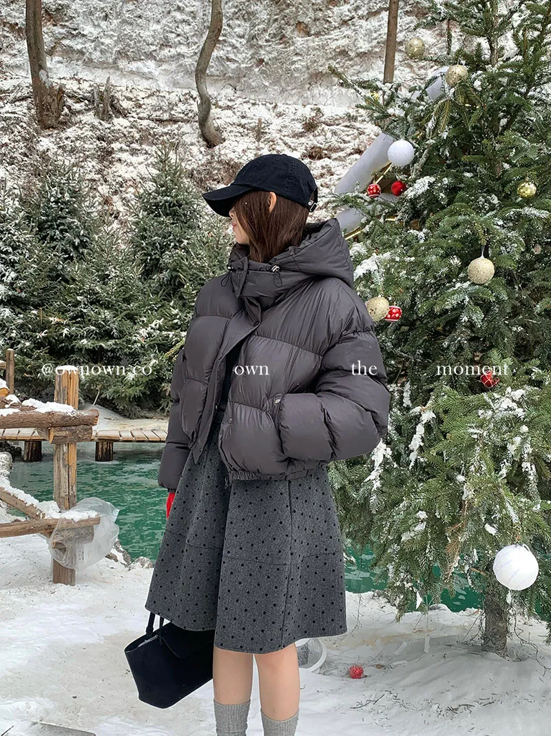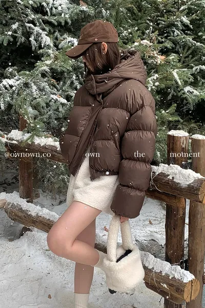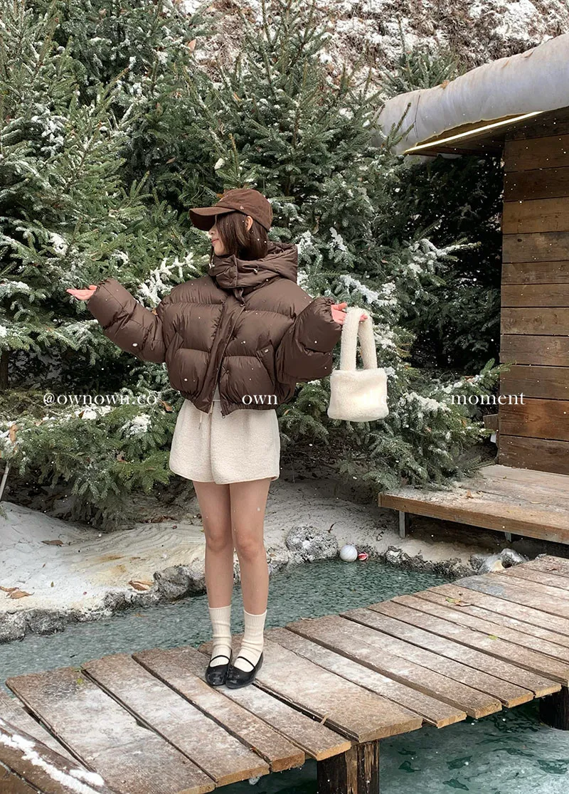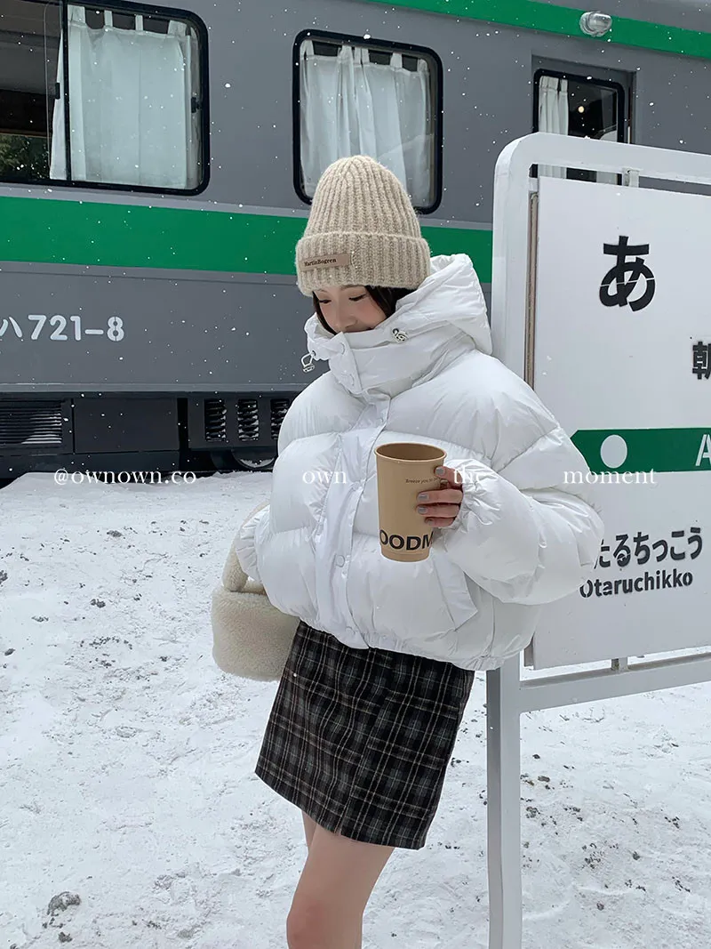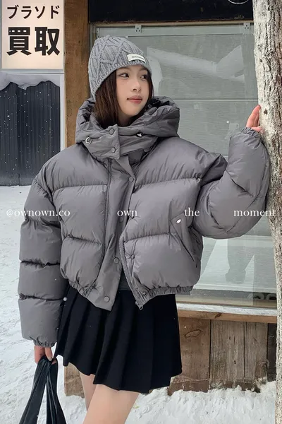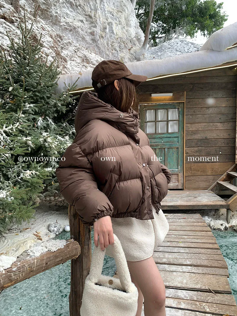 【OWN自訂款】當冬天的小可愛!雙釦連帽短版鋪棉外套 4colors