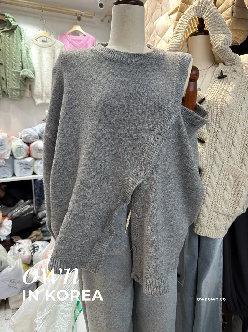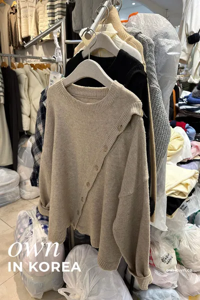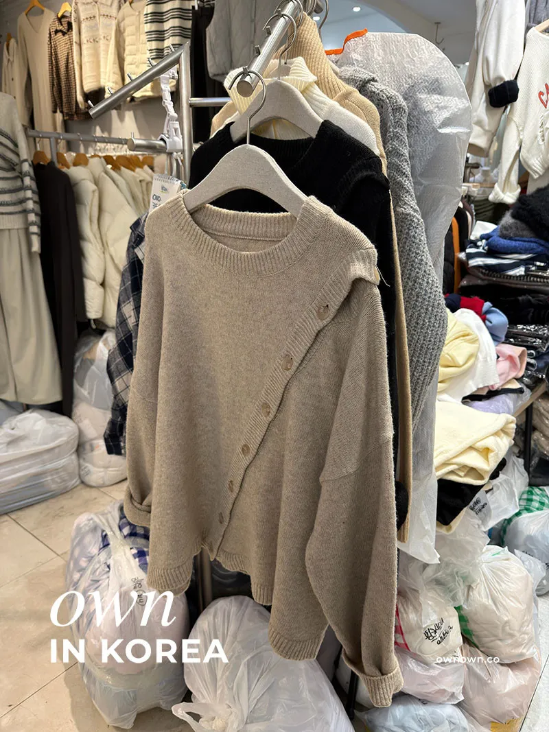 【正韓連線】設計感斜排釦毛衣 2colors