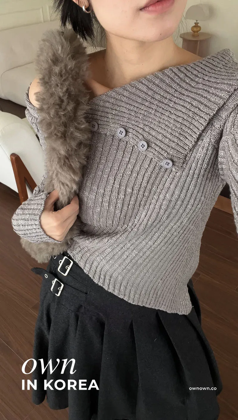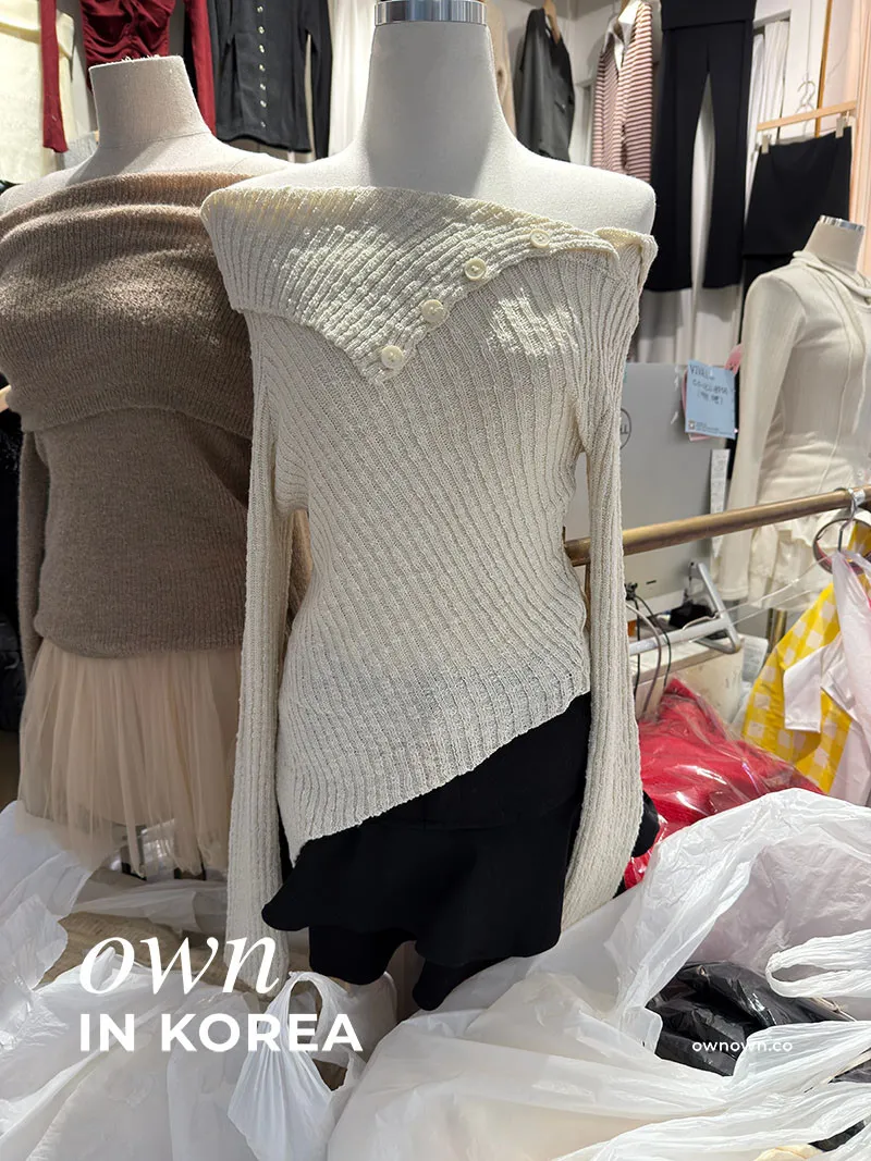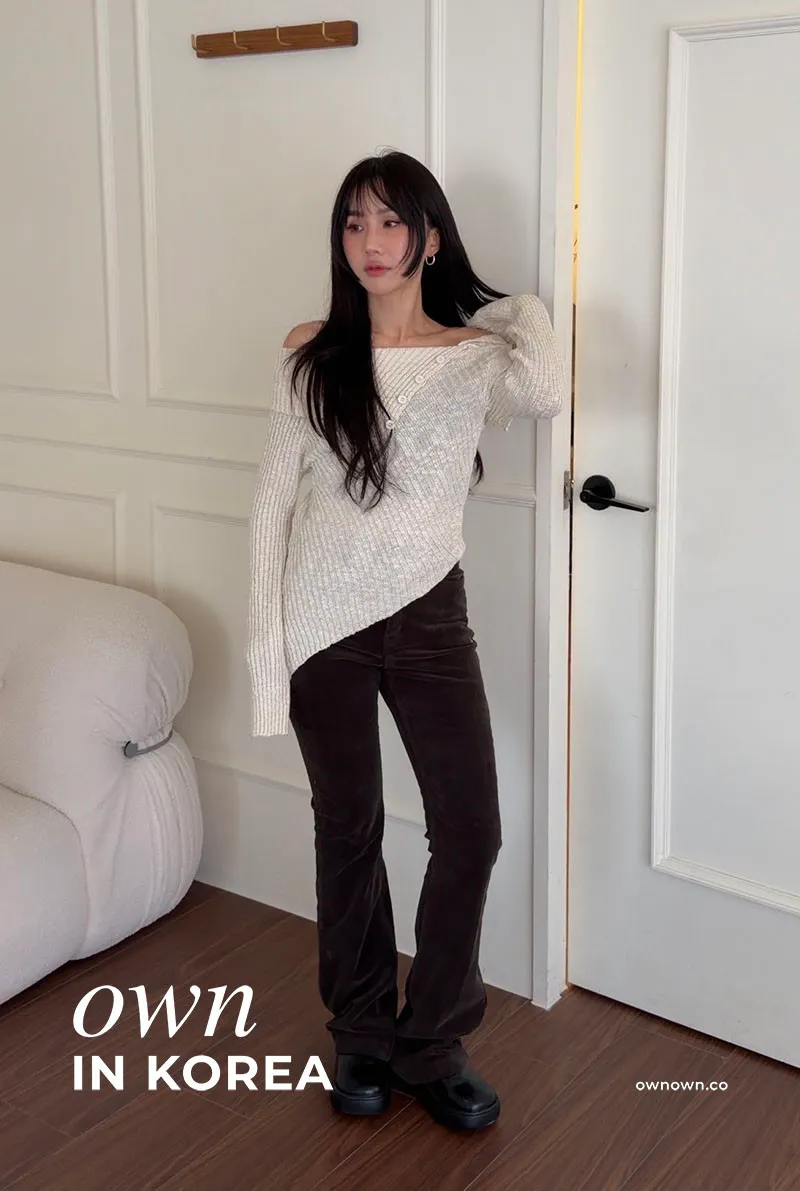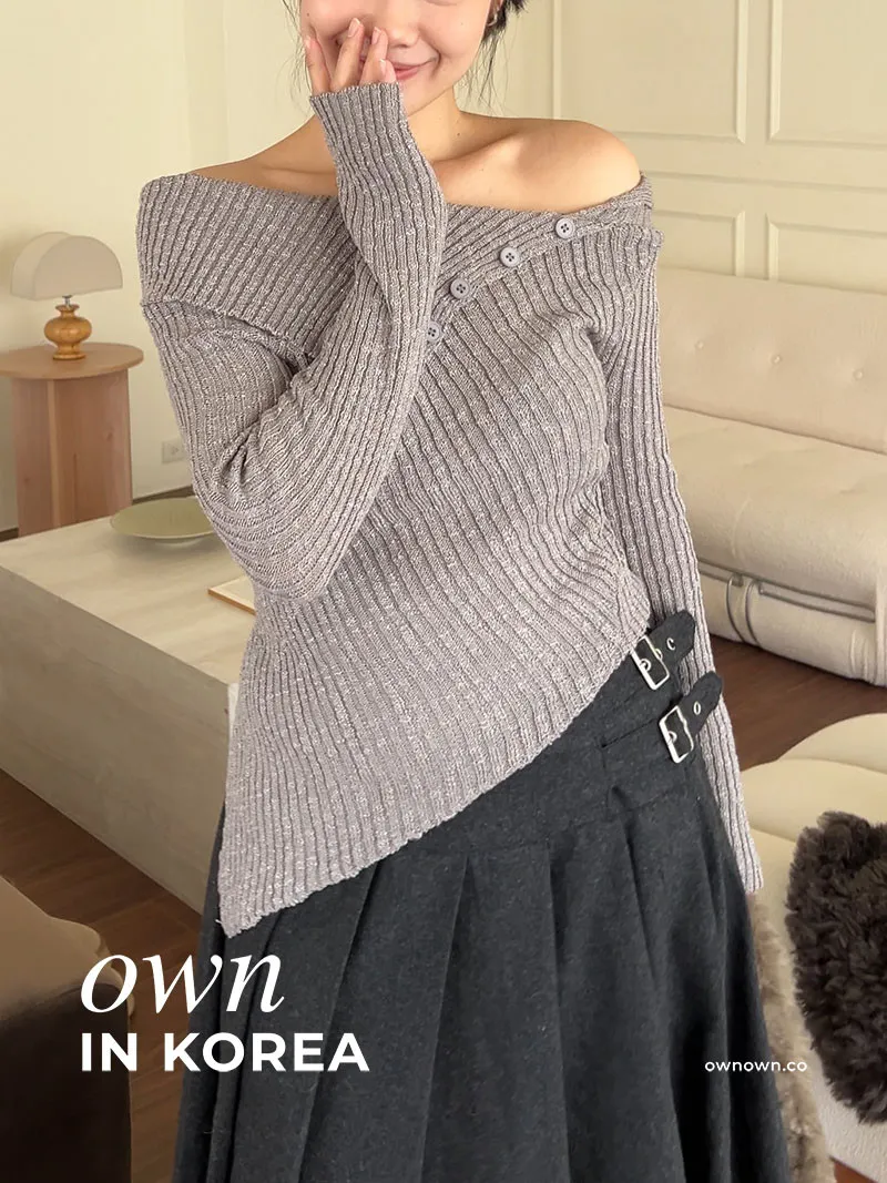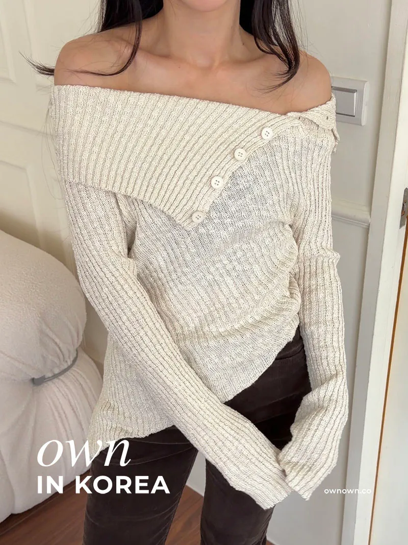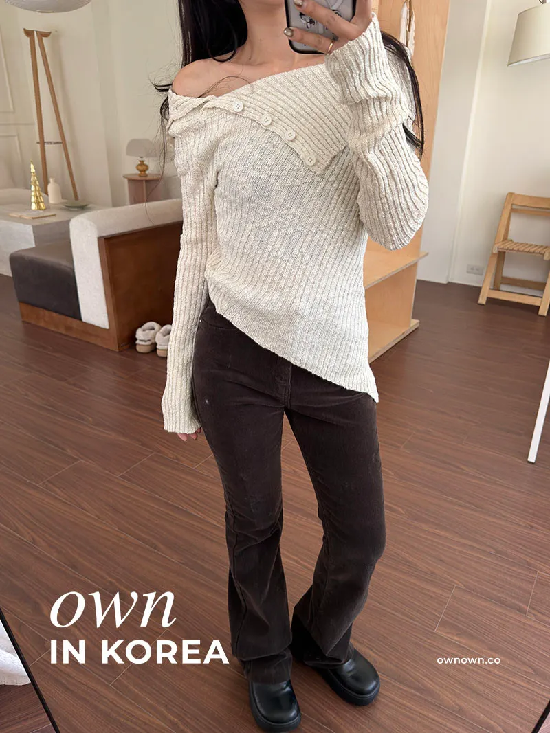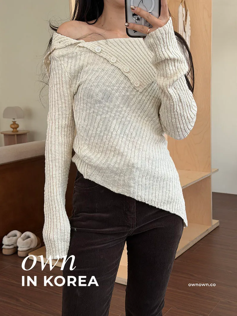 【正韓連線】溫柔小性感 不對稱翻領上衣 3colors