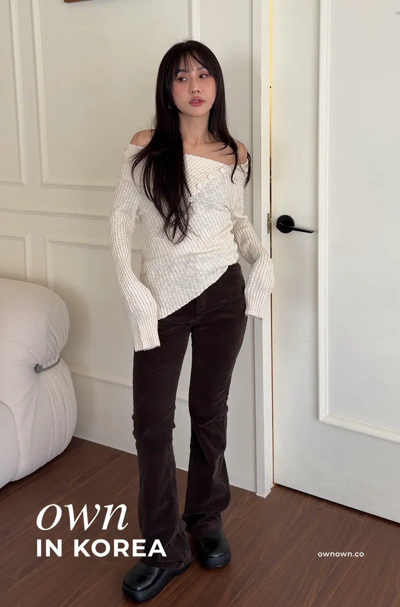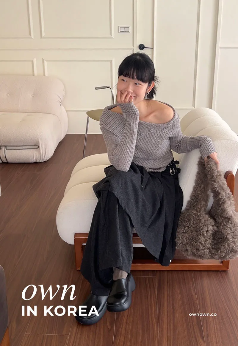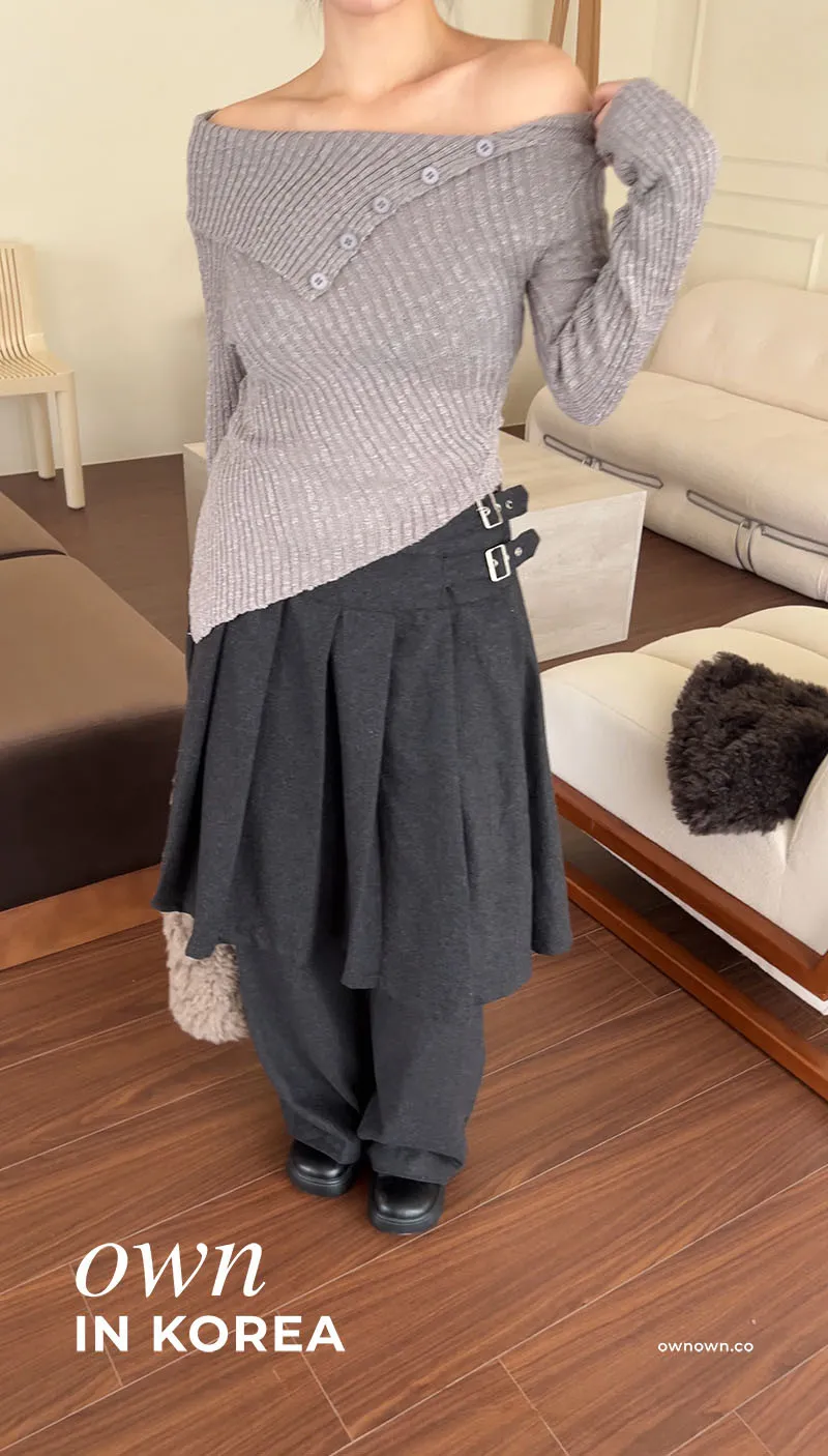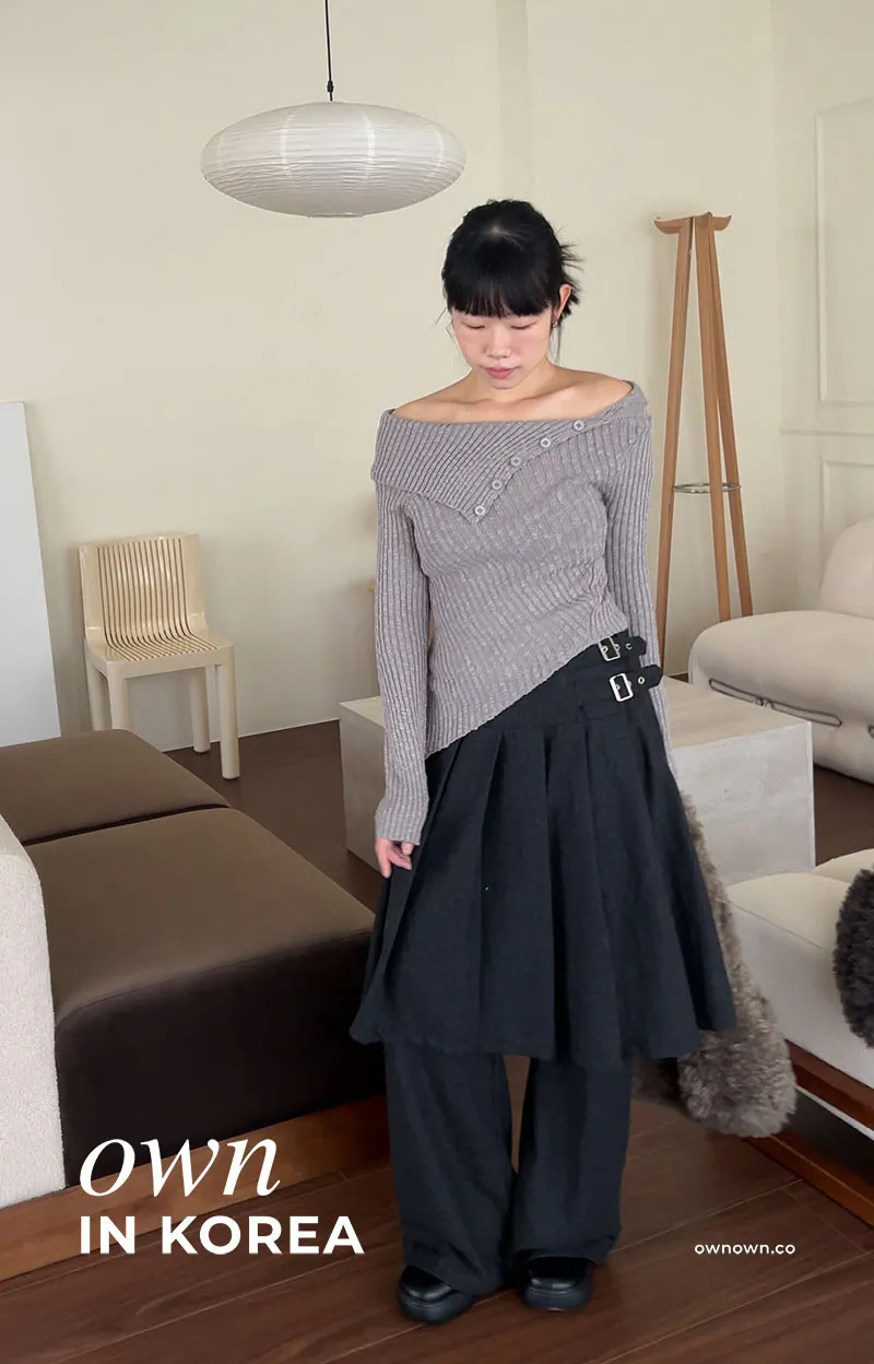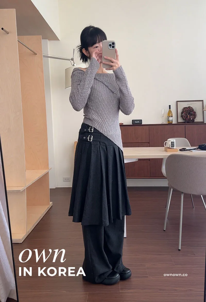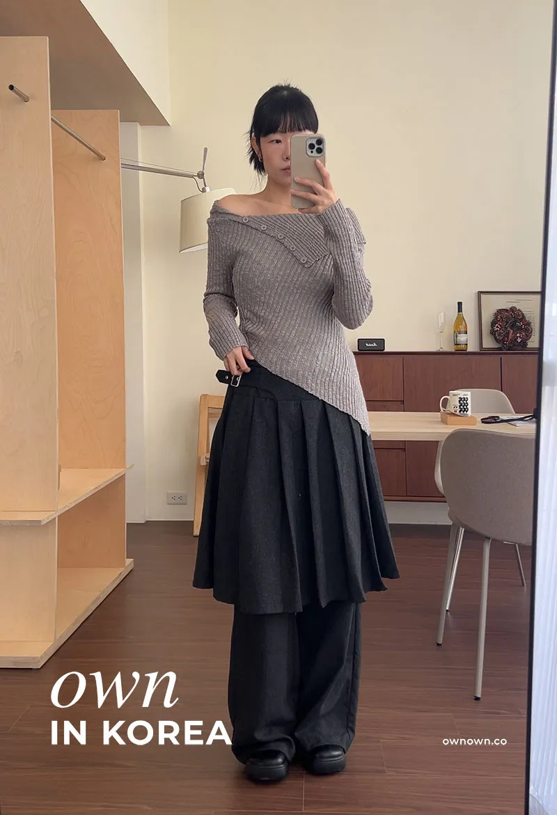 【正韓連線】溫柔小性感 不對稱翻領上衣 3colors