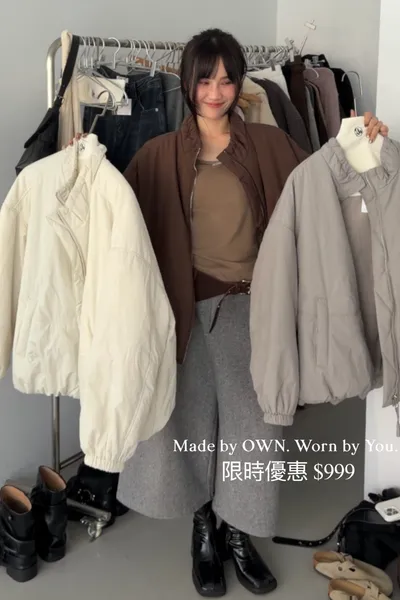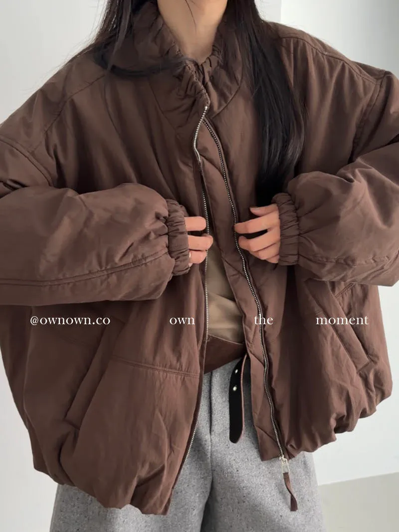 【OWN自訂款-限時優惠$999】簡約魅力 小立領縮口鋪棉外套 3colors