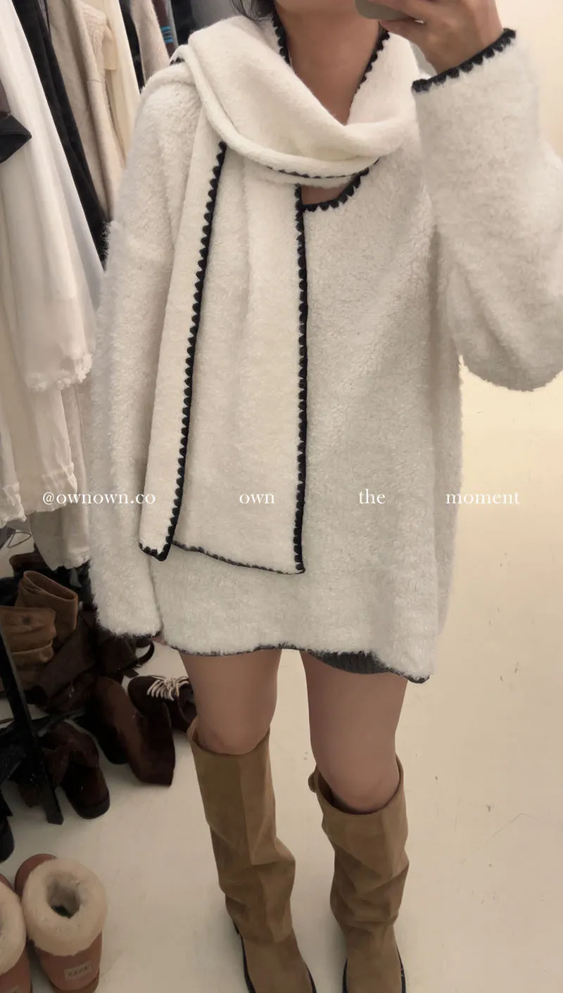 給你雲朵級的溫暖 混羊毛毛衣+羊絨圈圈圍巾
