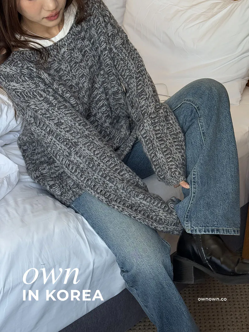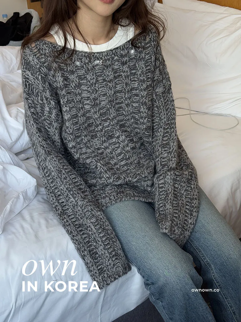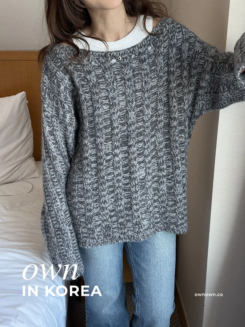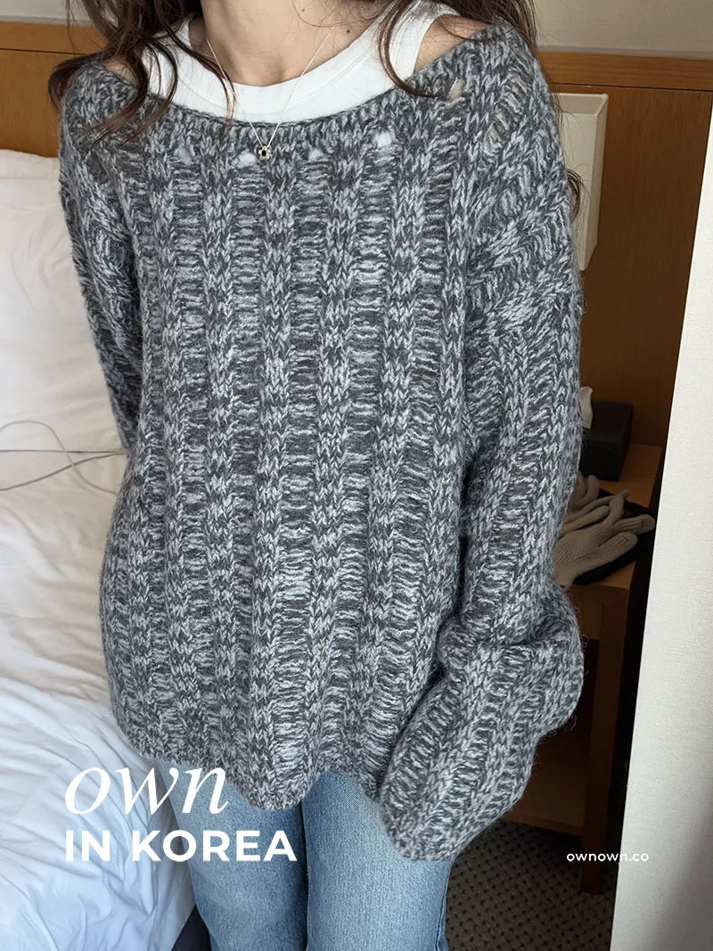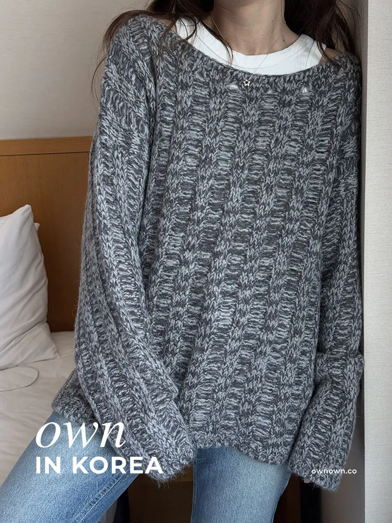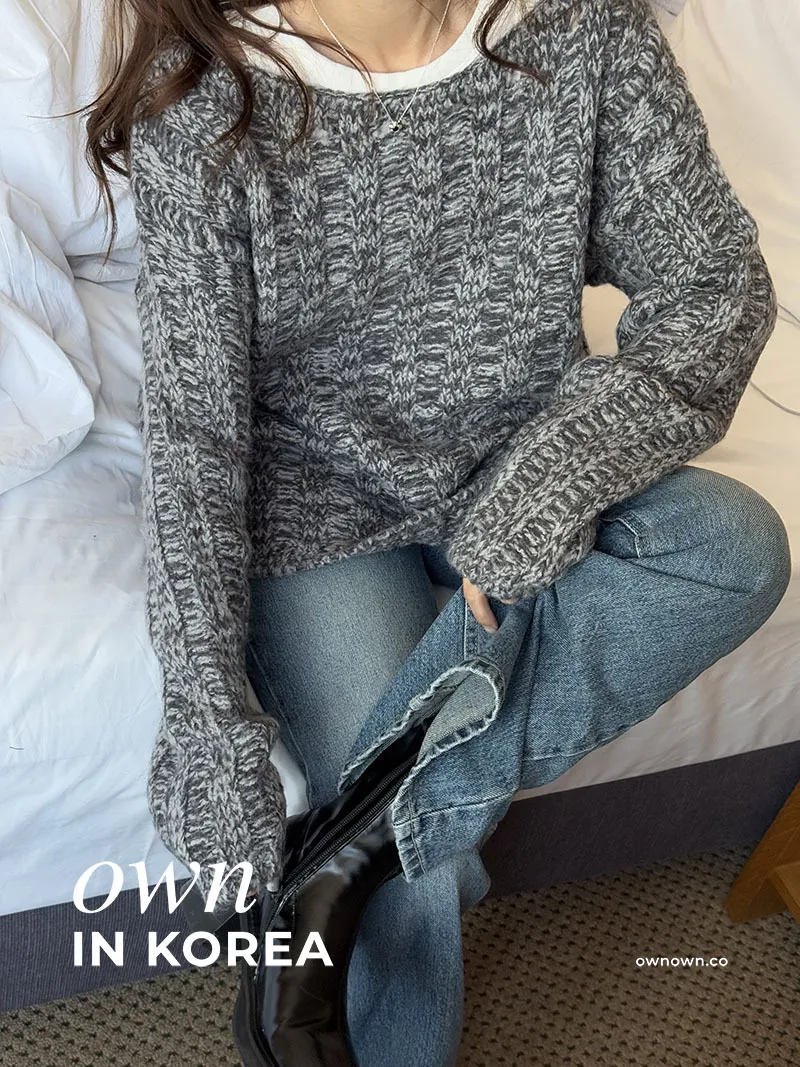 【正韓連線】KR17 慵懶冬日 混織U領針織上衣