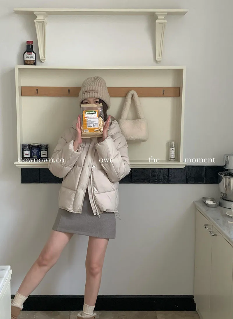 本款鴨絨外套因使用天然填充物,初期可能殘留原料氣味,屬正常現象,對氣味較敏感者請留意。