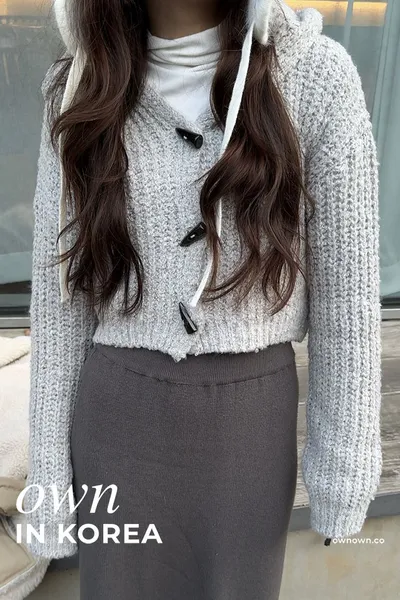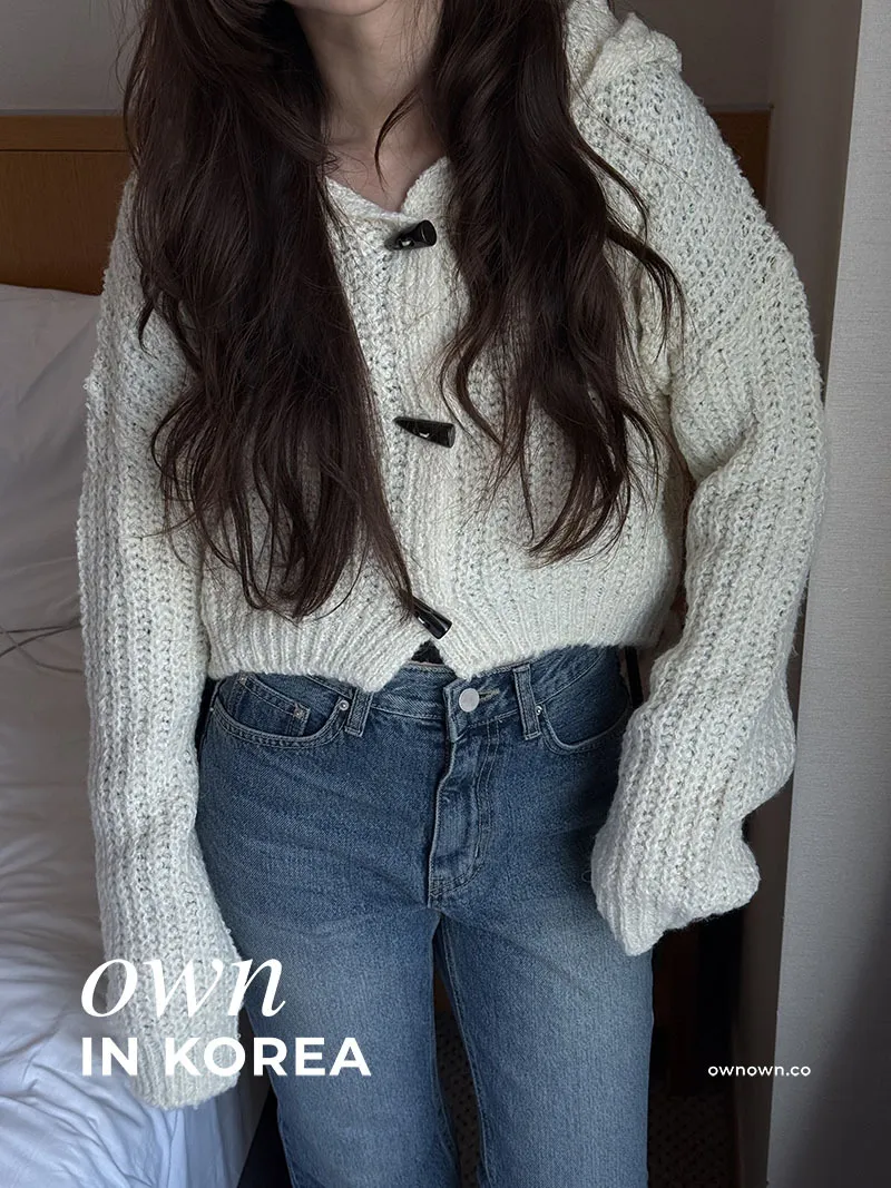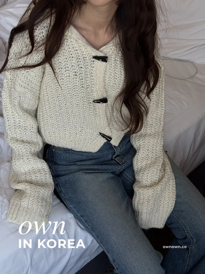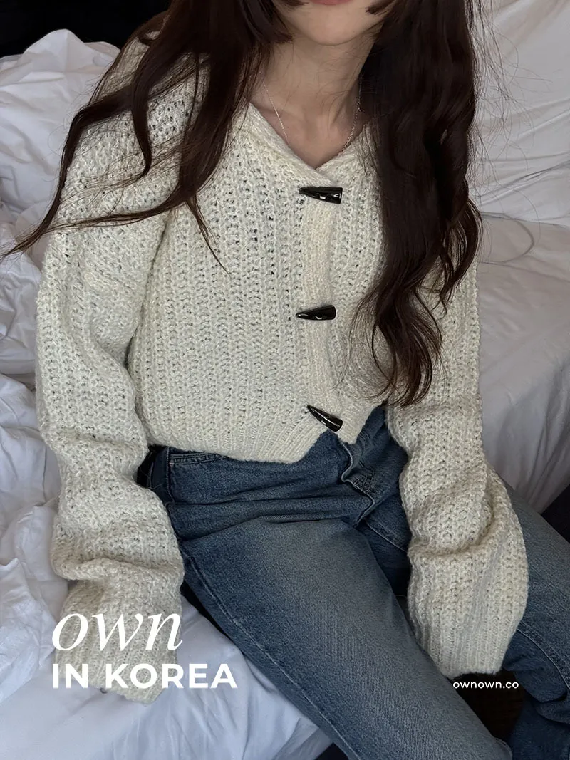 【正韓連線】KR27 動人心神的牛角釦連帽針織外套 2colors