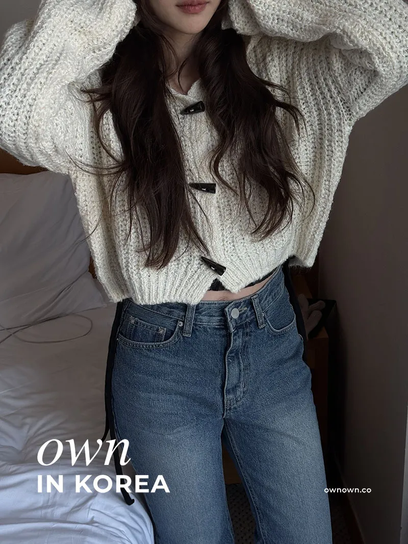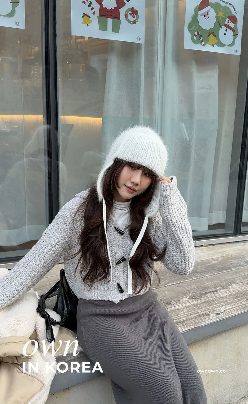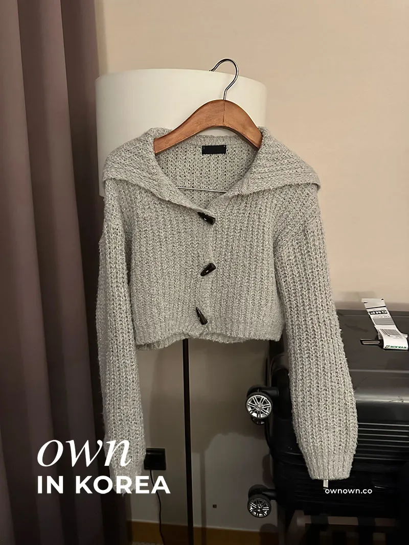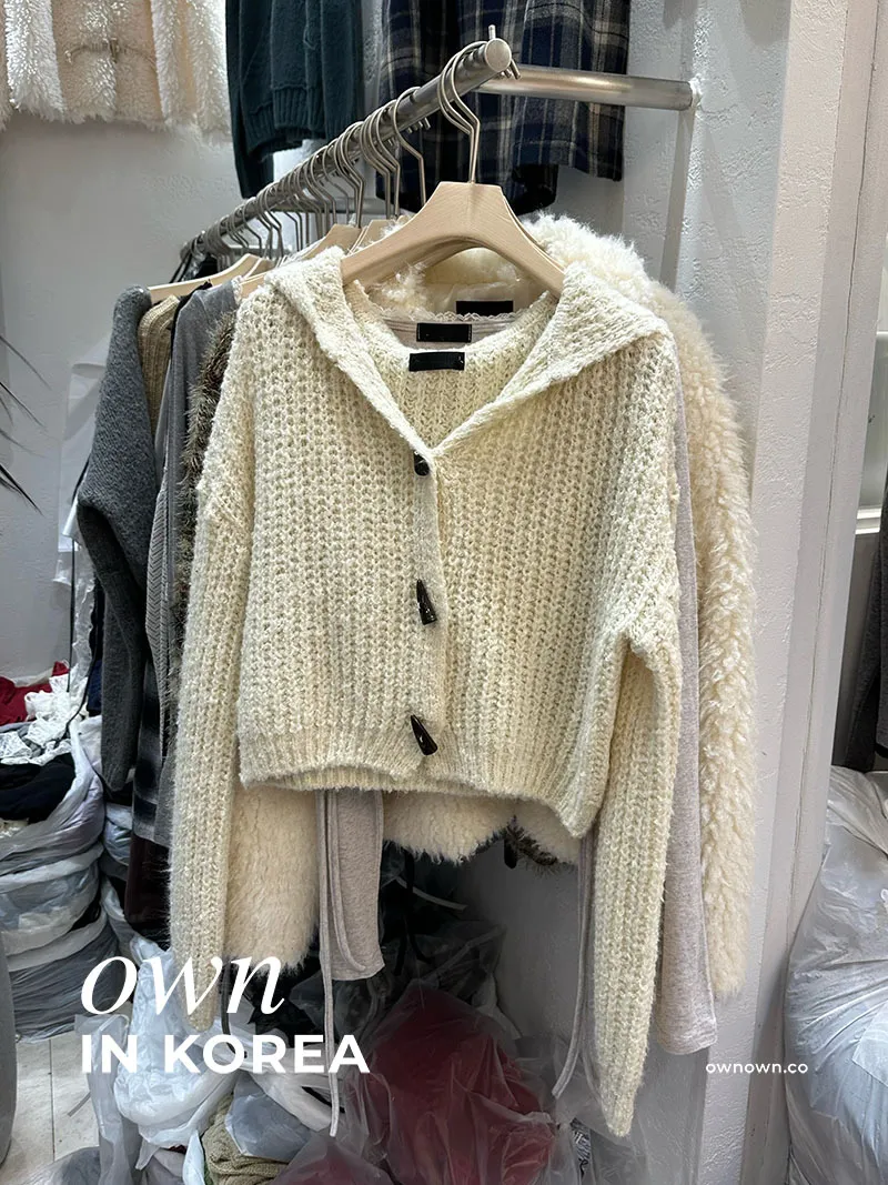 【正韓連線】KR27 動人心神的牛角釦連帽針織外套 2colors
